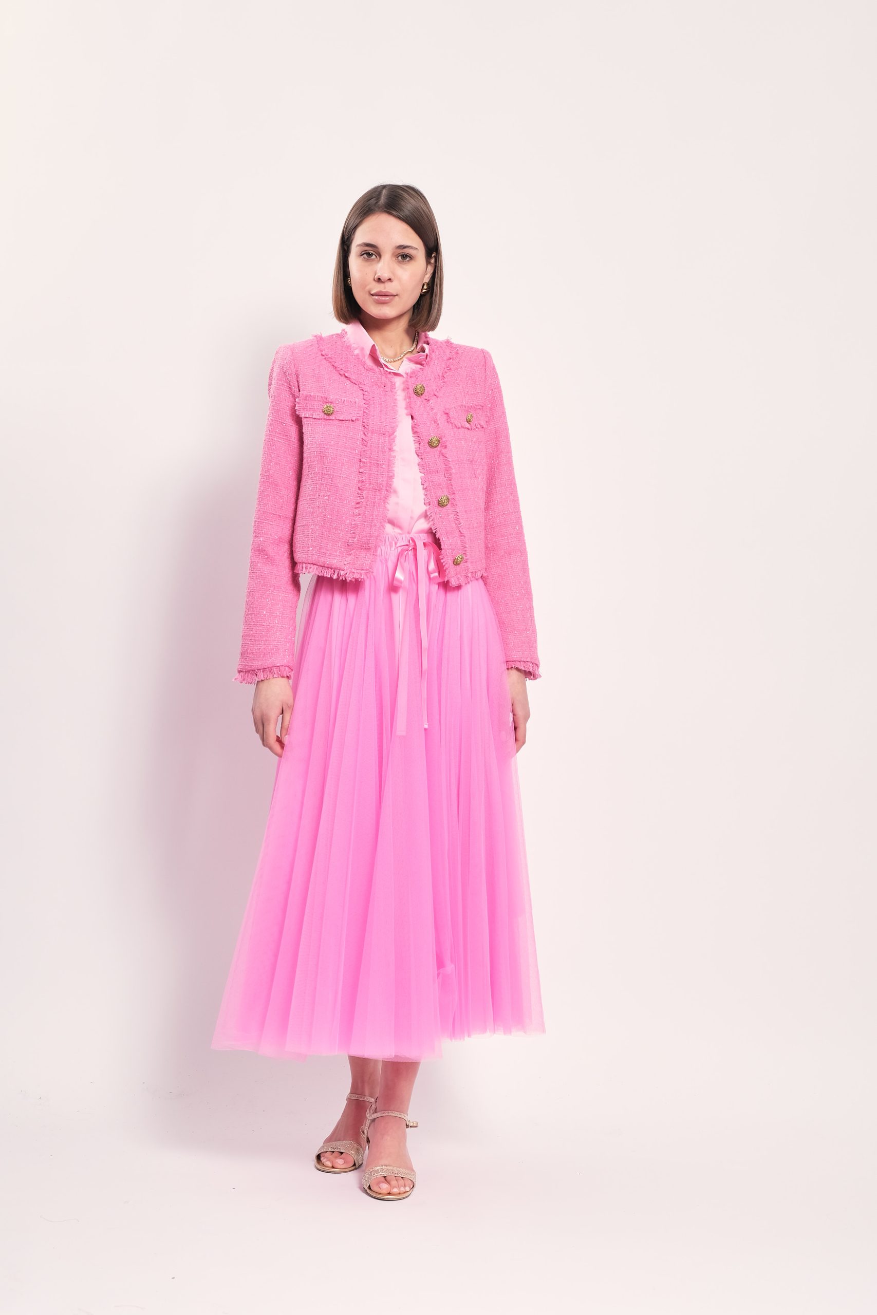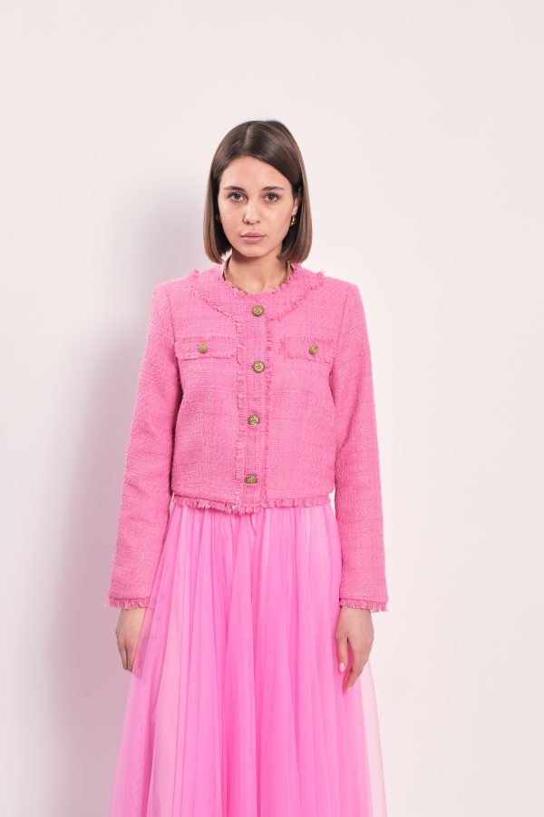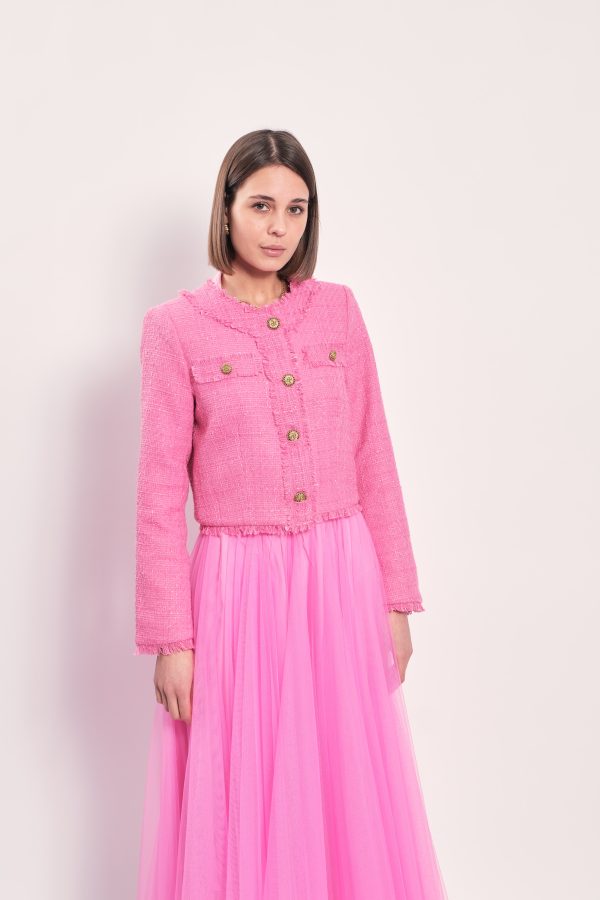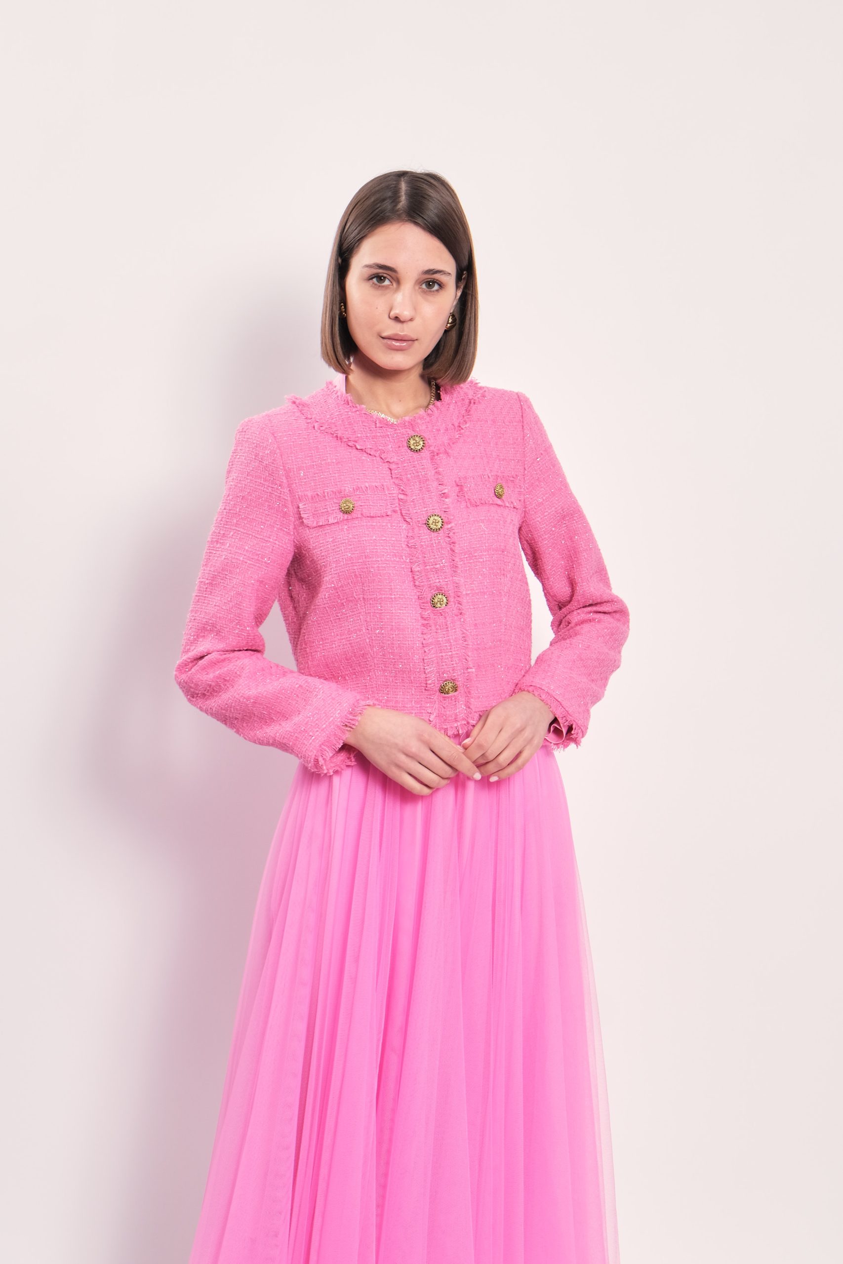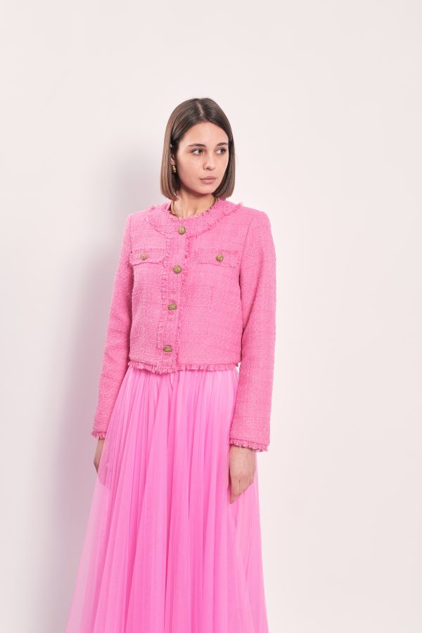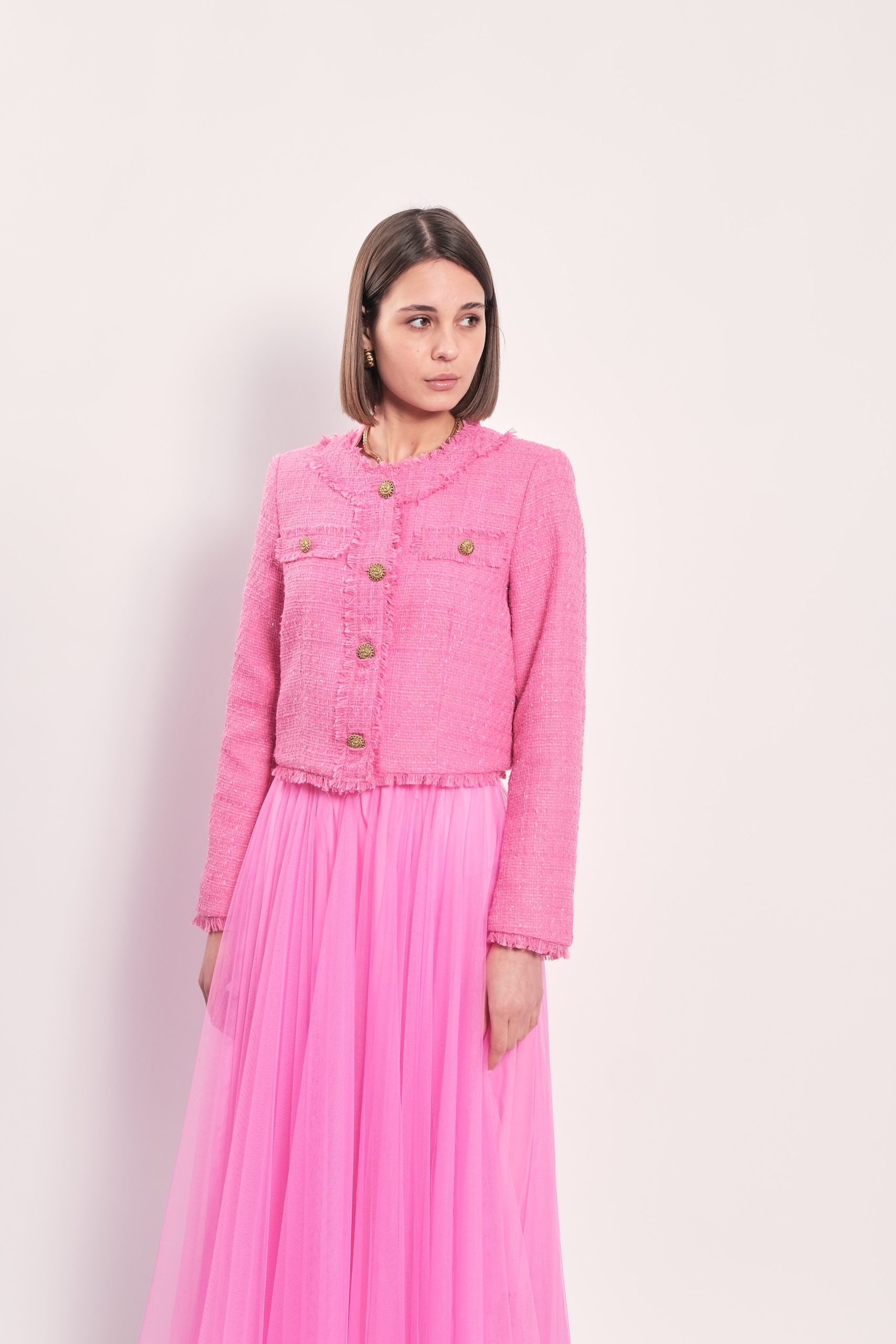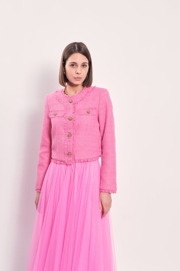 Alexandra blazer will serve as a timeless investment for your love-forever wardrobe. Cut from lush tweed , it has face-framing peak lapels and has a double-breasted front traced with glossy gold buttons. The padded shoulders add structure, while the satin-twill lining makes for easy layering. The neutral hue is so versatile, so style yours with jeans and smart pants like.