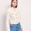 Alexandra blazer will serve as a timeless investment for your love-forever wardrobe. Cut from lush tweed , it has face-framing peak lapels and has a double-breasted front traced with glossy gold buttons. The padded shoulders add structure, while the satin-twill lining makes for easy layering. The neutral hue is so versatile, so style yours with jeans and smart pants like.