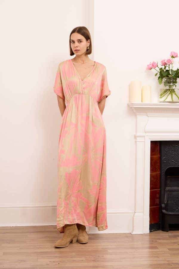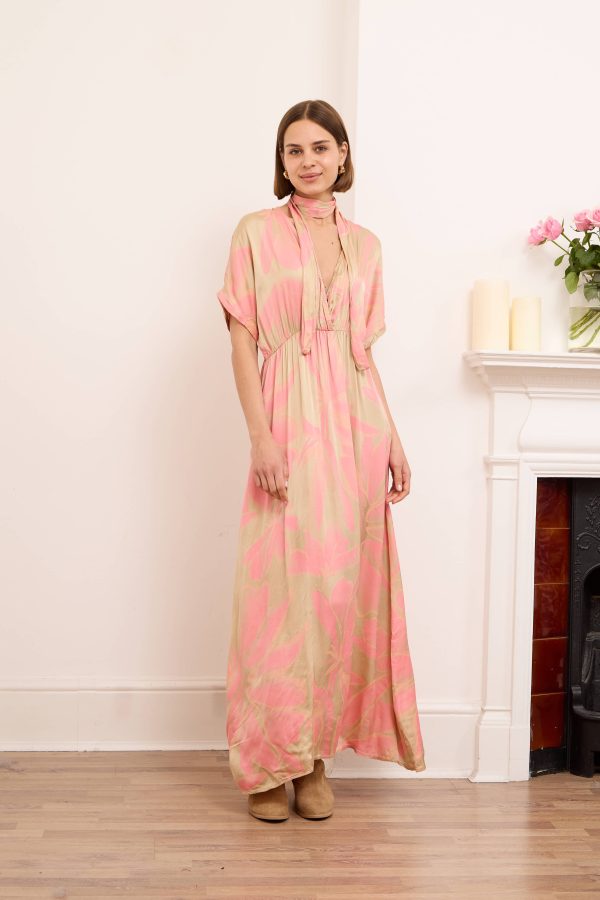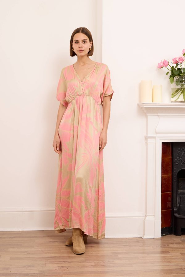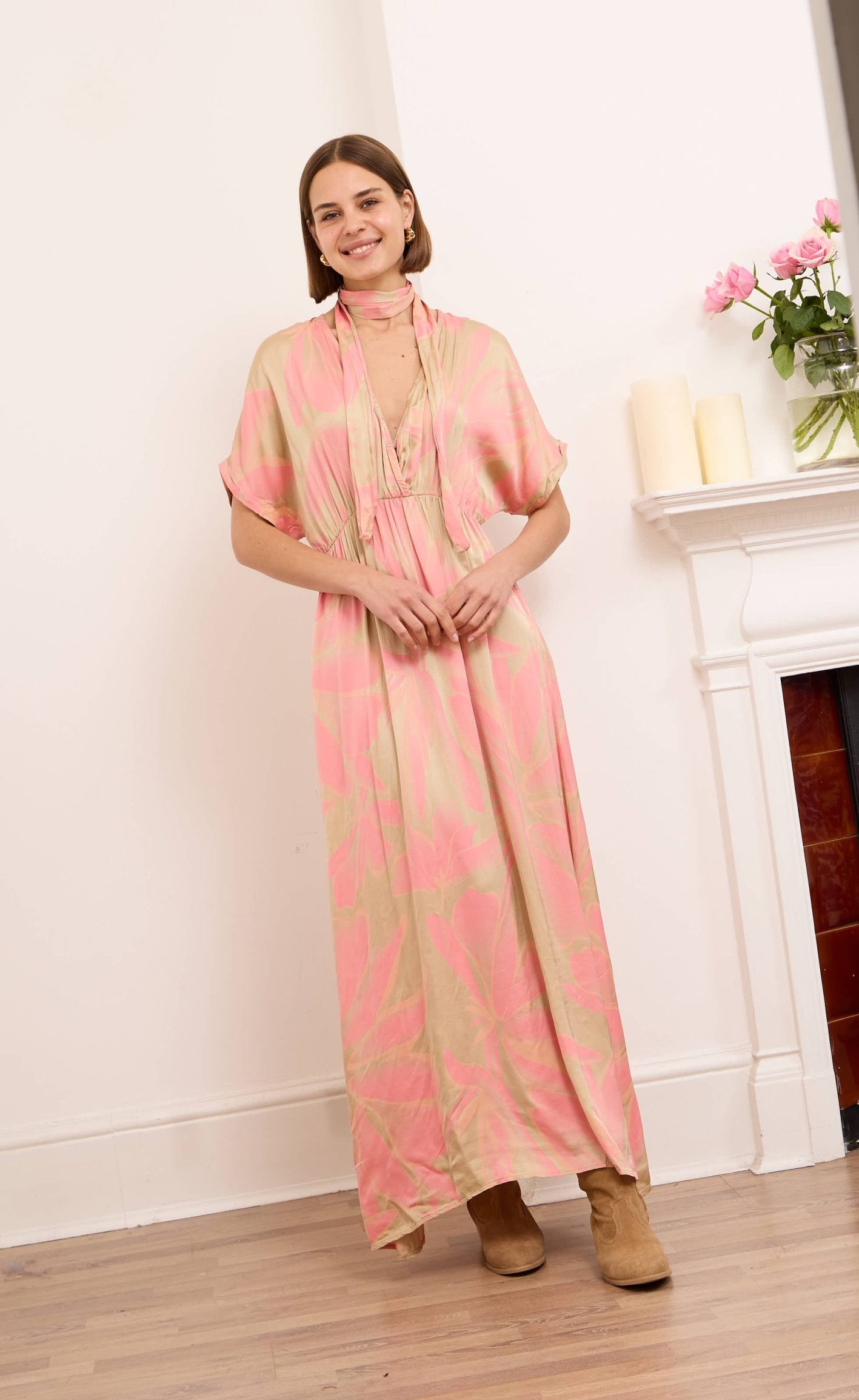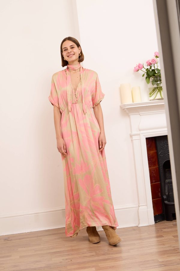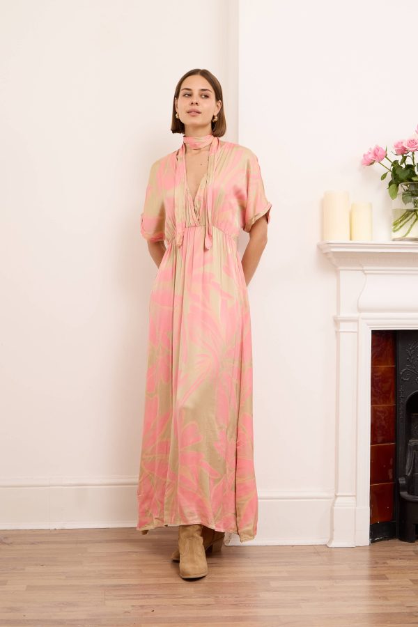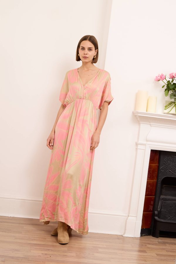 Alessia dress is both cool and elegant. It’s cut from fluid, lustrous silk satin that skims gently over your figure and it has a delicate V-neckline . It’s printed with abstract artwork, featuring swirls of rich pink shades. Frame a glittering necklace with the plunging neckline. Strappy sandals will sit nicely beneath the flouncy hem.