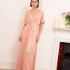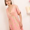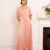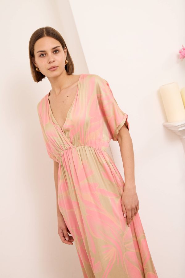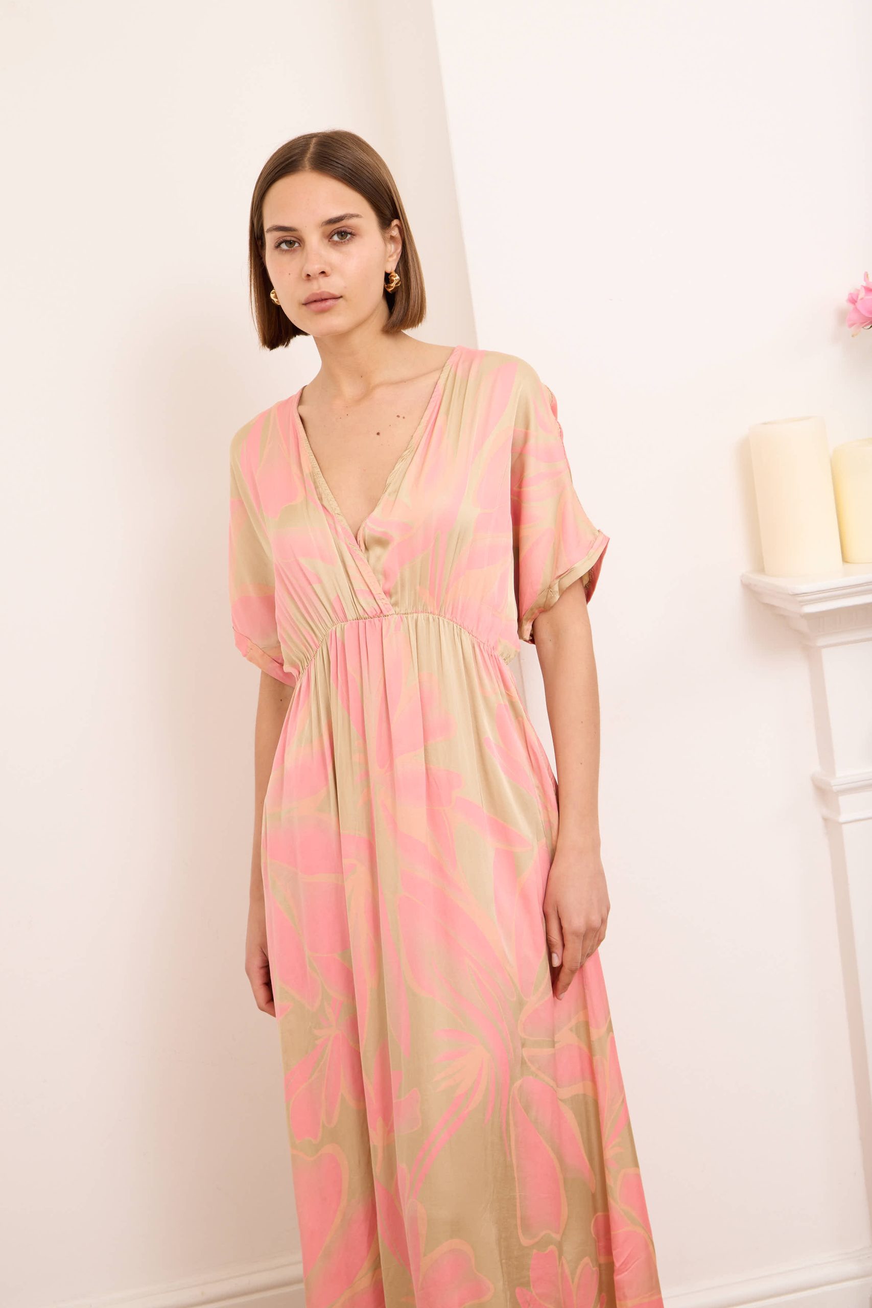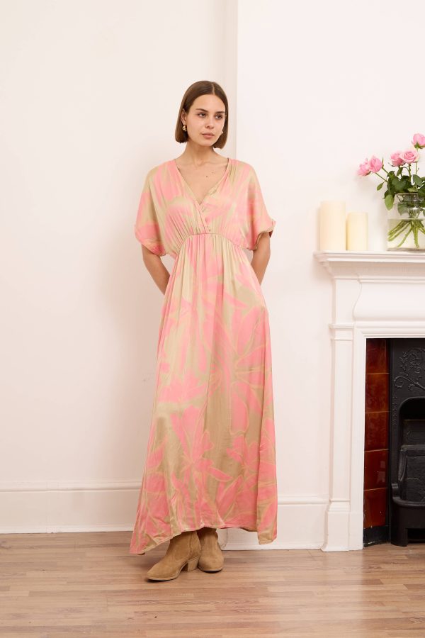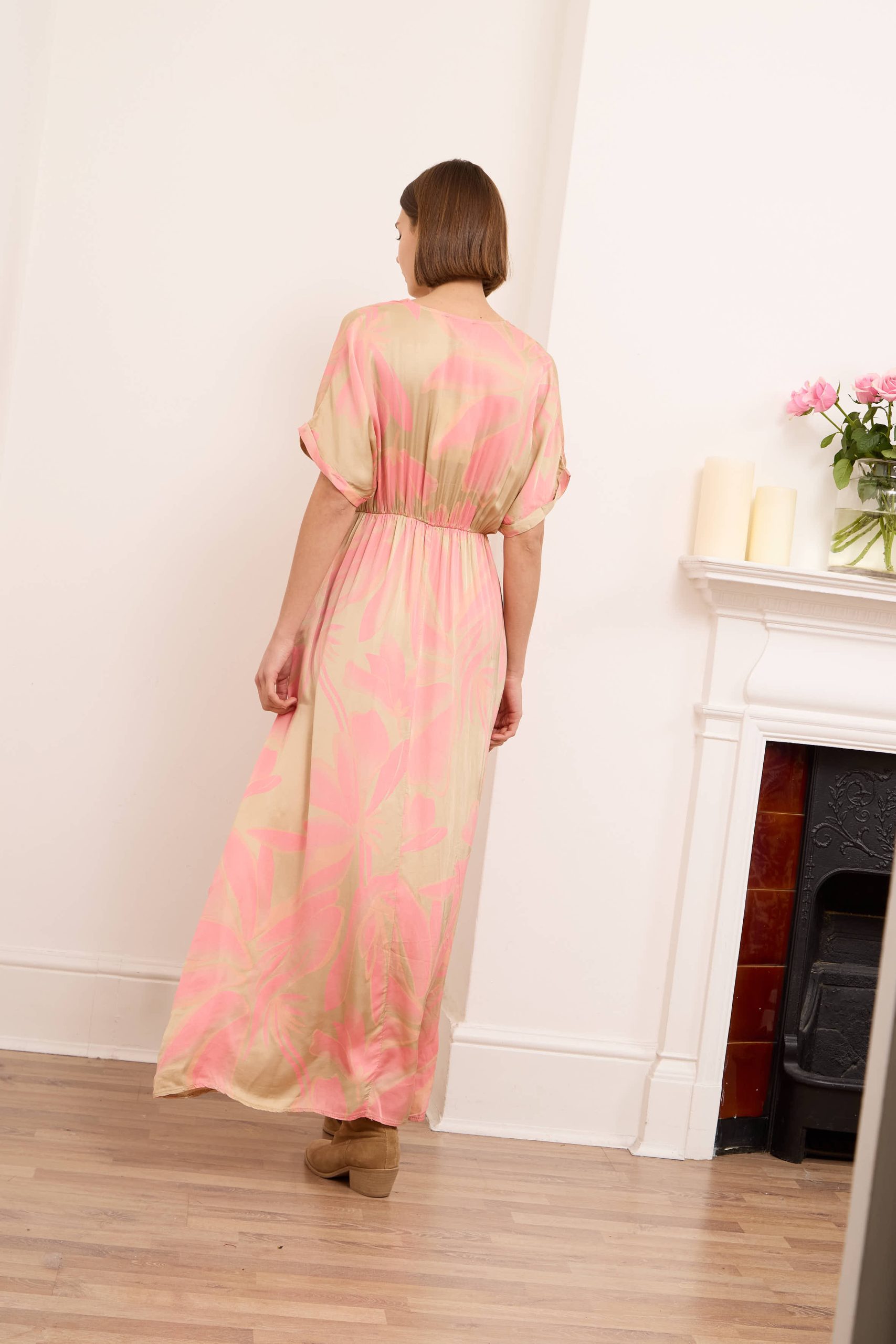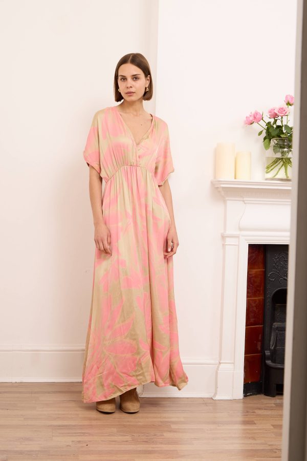 Alessia dress is both cool and elegant. It’s cut from fluid, lustrous silk satin that skims gently over your figure and it has a delicate V-neckline . It’s printed with abstract artwork, featuring swirls of rich pink shades. Frame a glittering necklace with the plunging neckline. Strappy sandals will sit nicely beneath the flouncy hem.