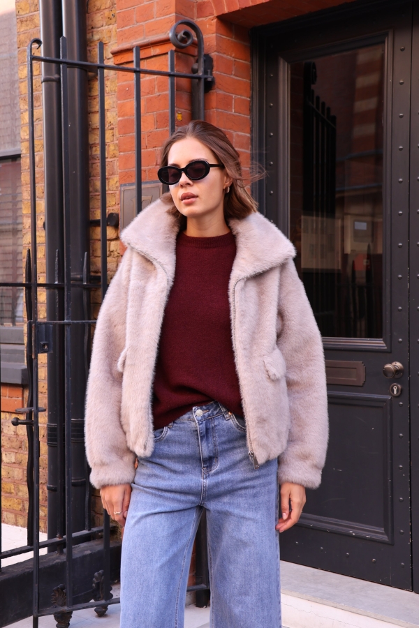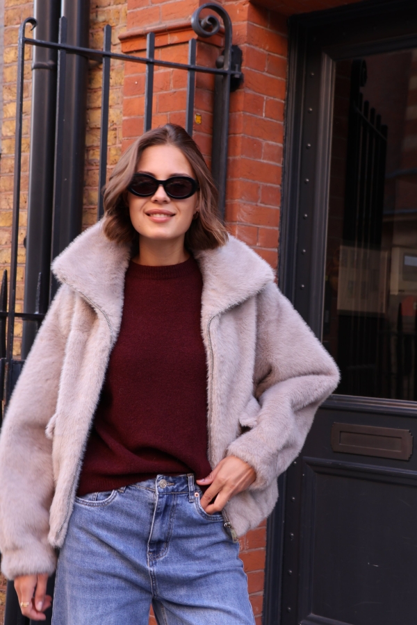 Alma -Faux Fur coat in grey