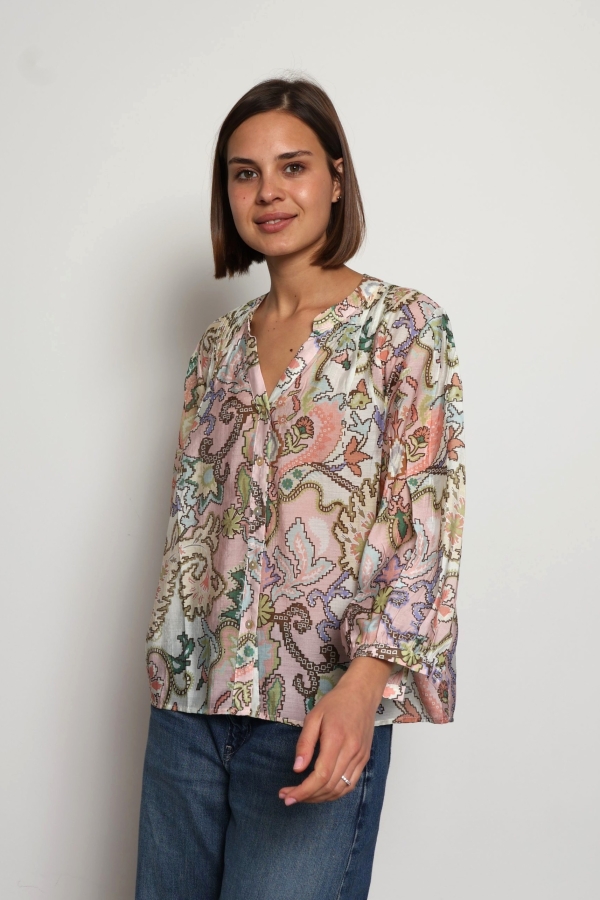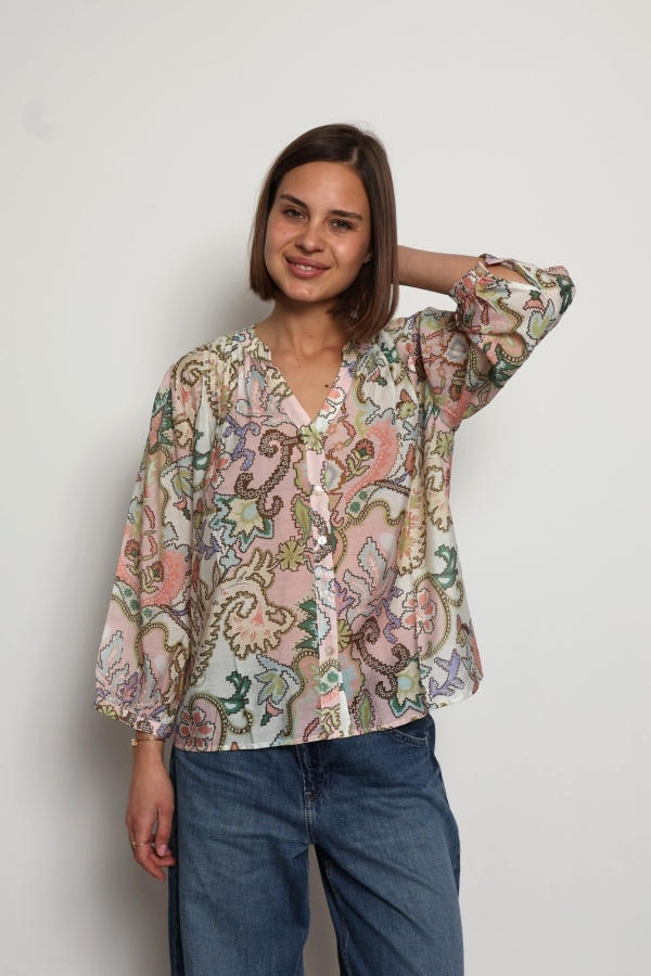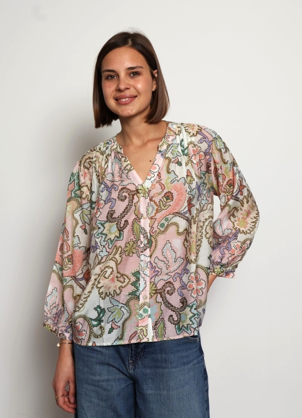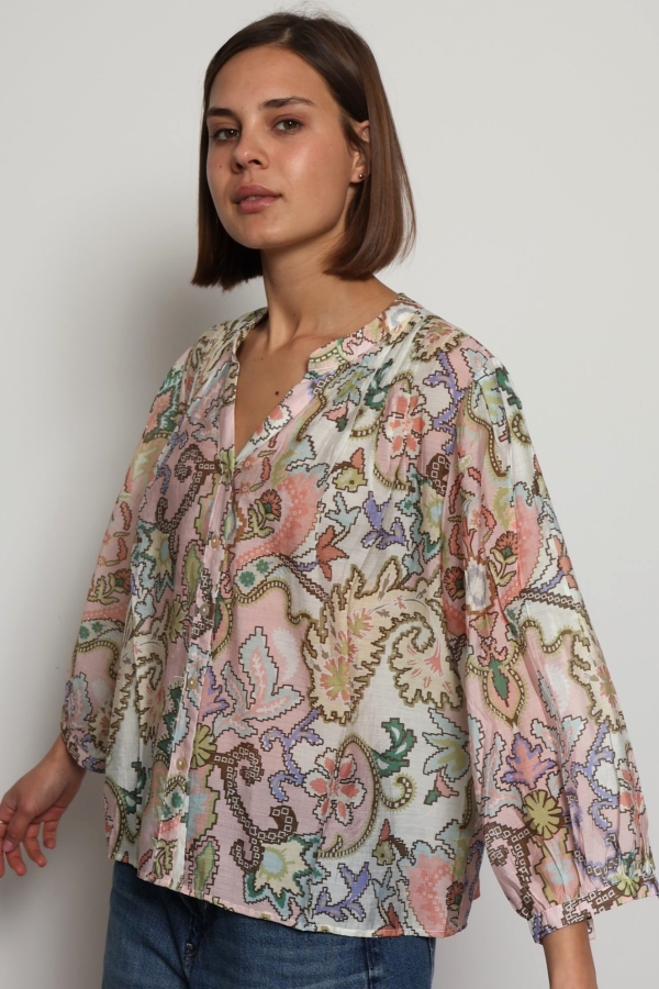 Alyna – Floral Print viscose silk-blend voile blouse in nude