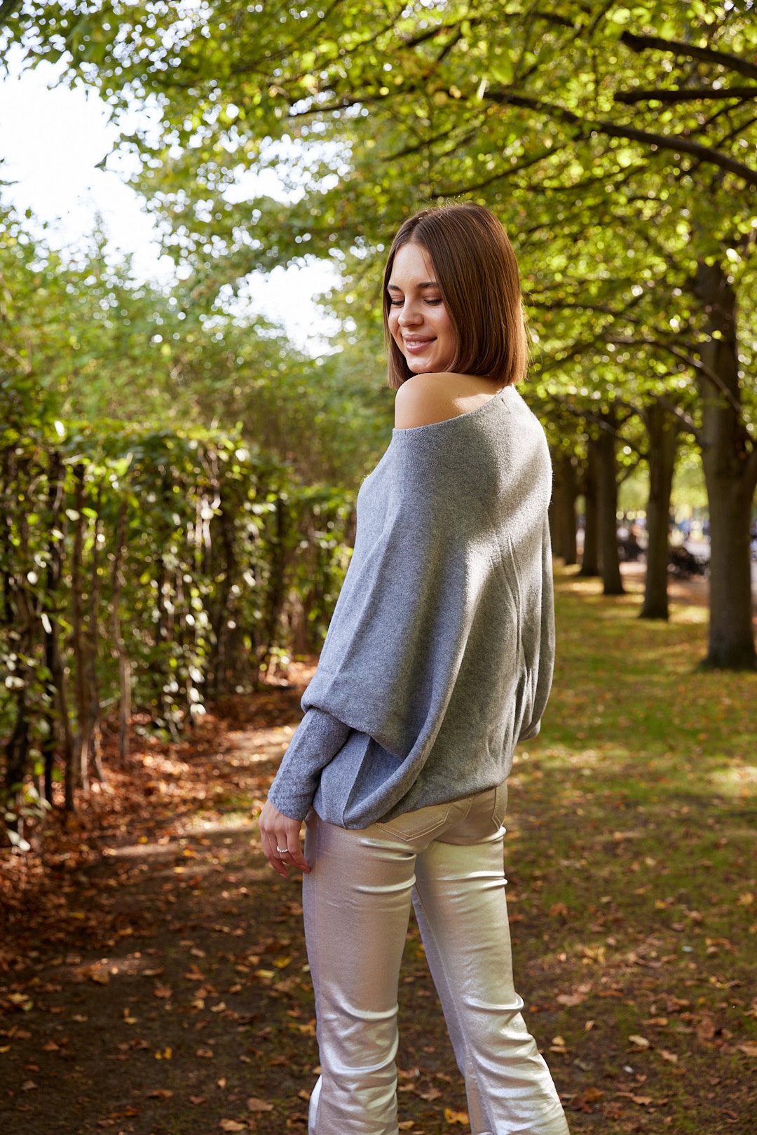 Alyssa -Off-the-shoulder Knit Sweater in Grey