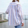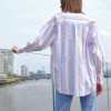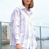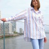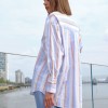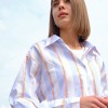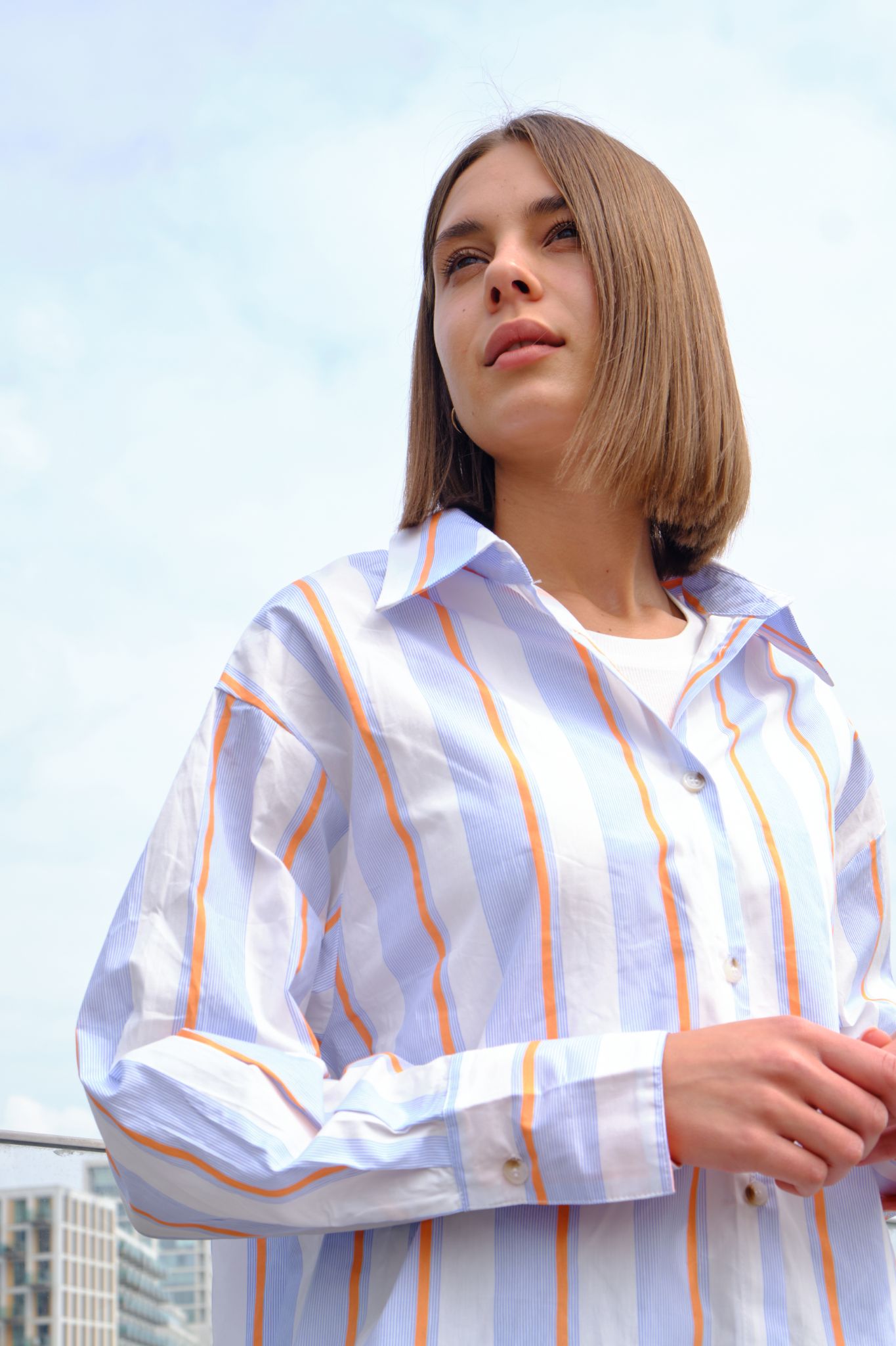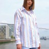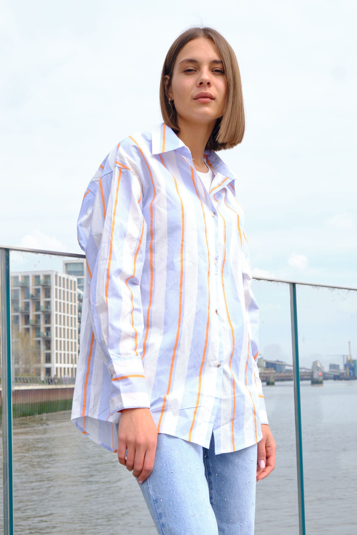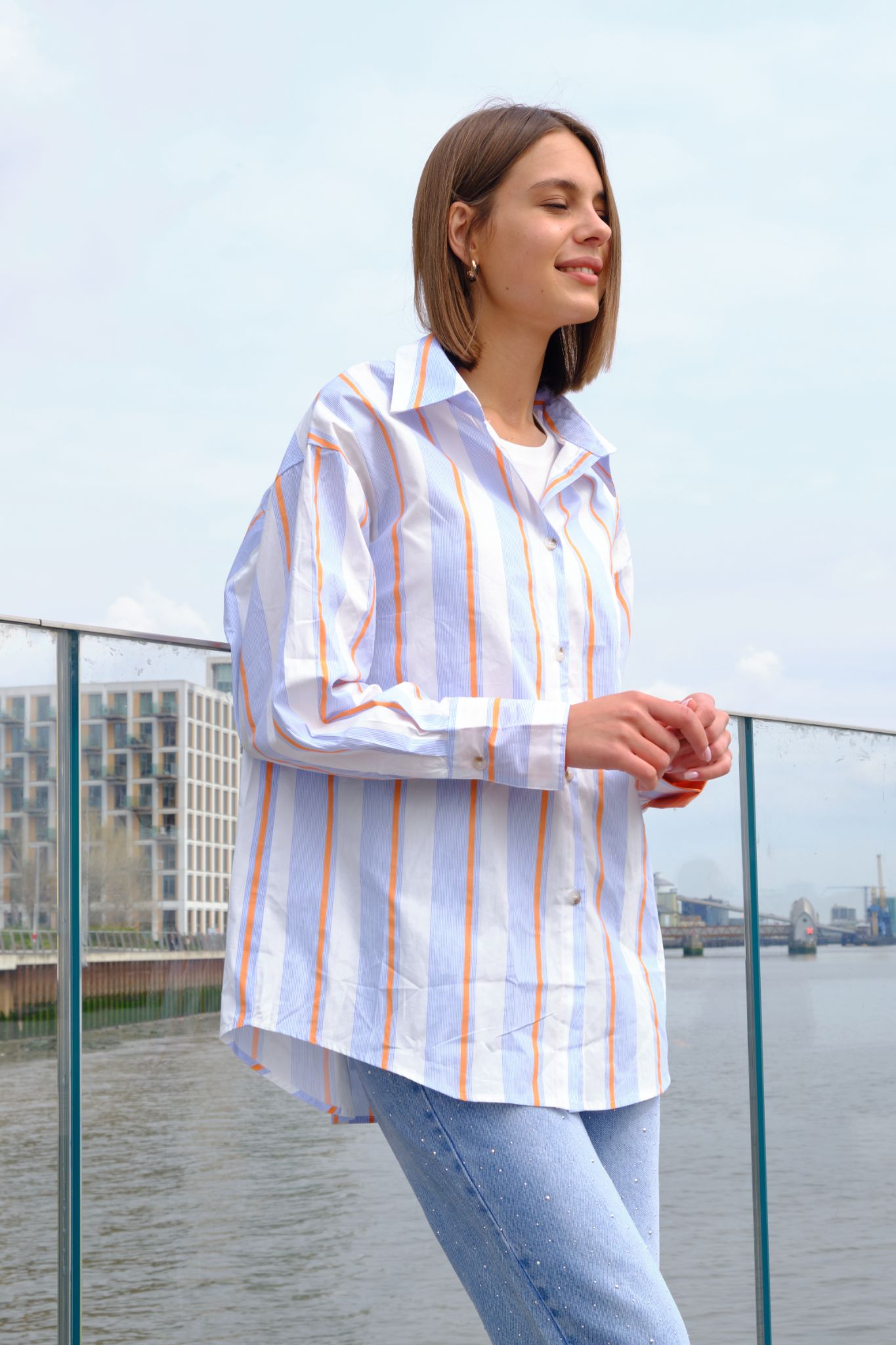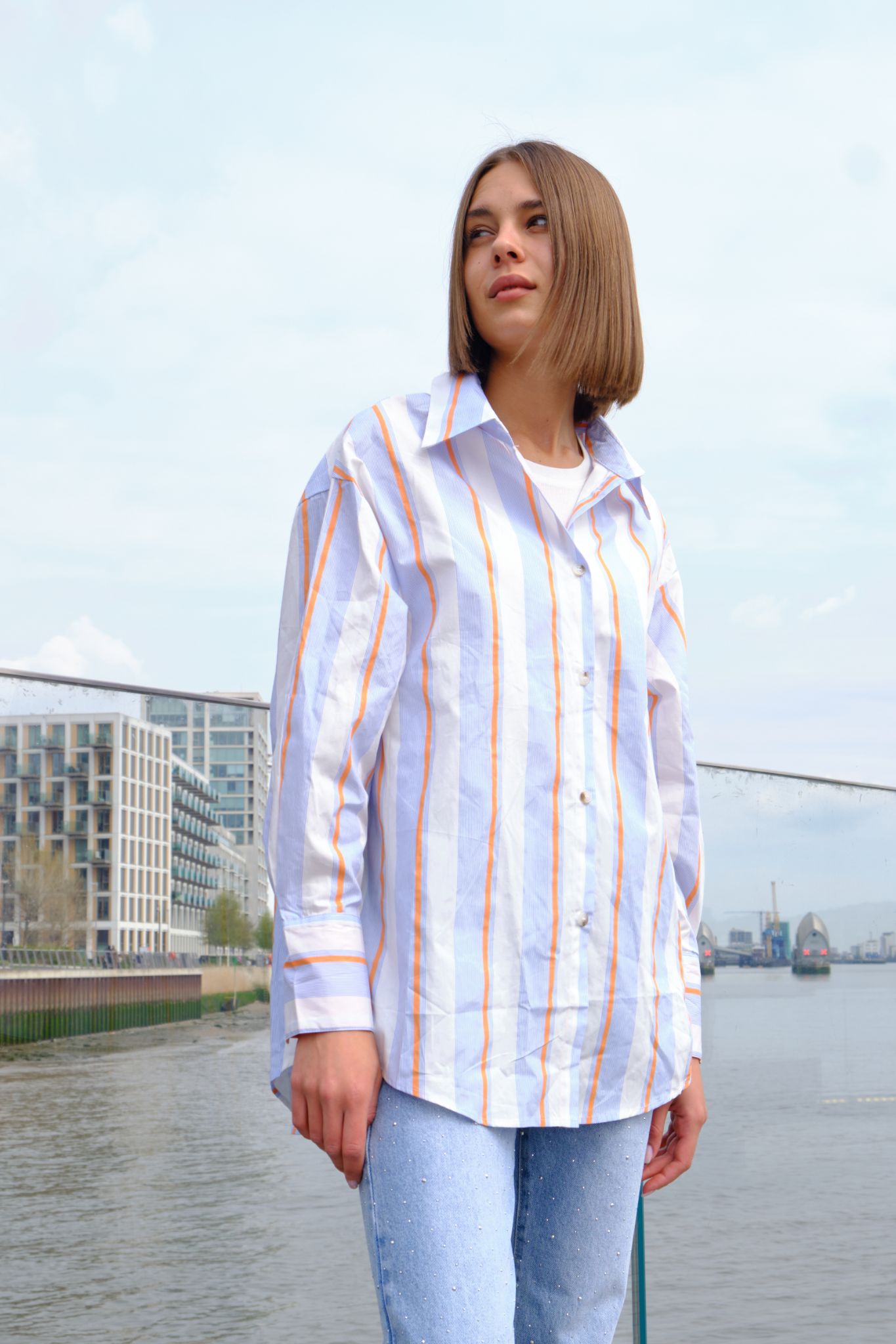 This shirt will go so far in your wardrobe – style yours half-tucked into jeans, silk pants cinched with a belt or layered under a knit vest. It has a relaxed shape with buttoned cuffs and a long, curved hem.  It’s cut from striped cotton-poplin and has a chest pocket. Wear it with a striped sweater wrapped around your shoulders. Leave a few buttons undone at the collared neckline and hem for a casual feel.