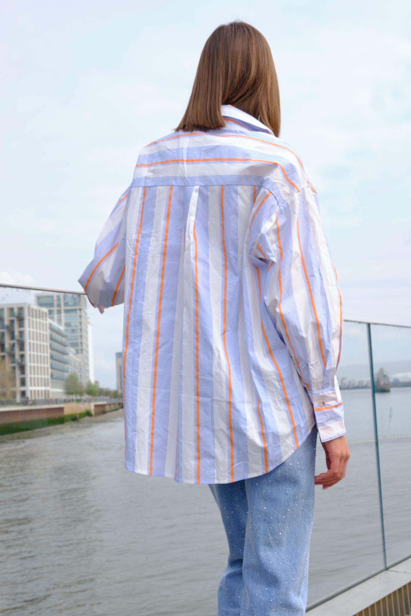 Amy -Cotton-blend Striped Poplin Shirt In Orange