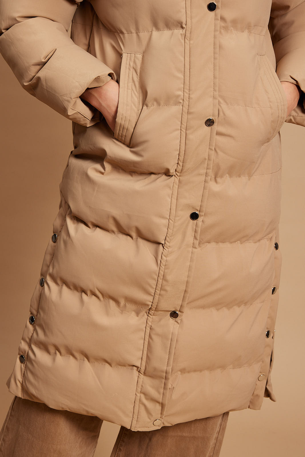 Amy coat will keep you warm and dry when heading to the gym or running errands on casual days. It’s cut from quilted shell made  and comes with a  hood for added protection from the weather. Zip it right to the top to create a funnel neck on especially cold days.
