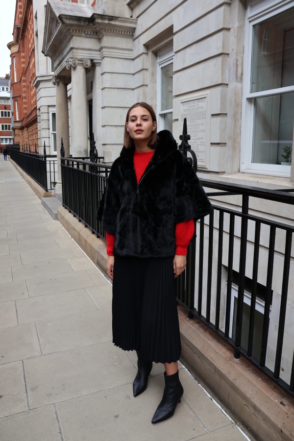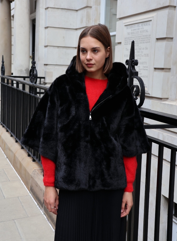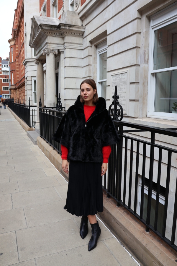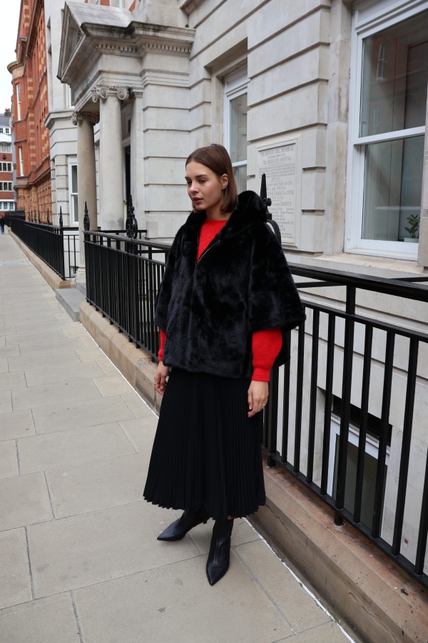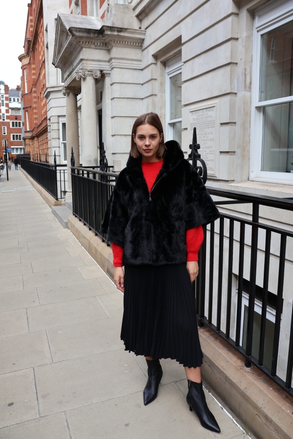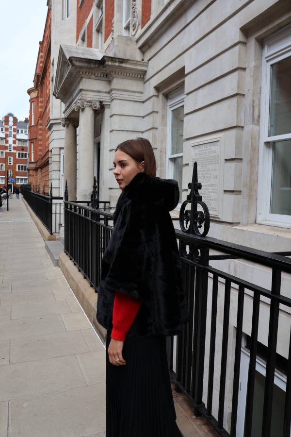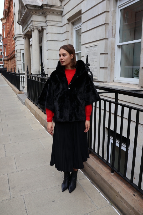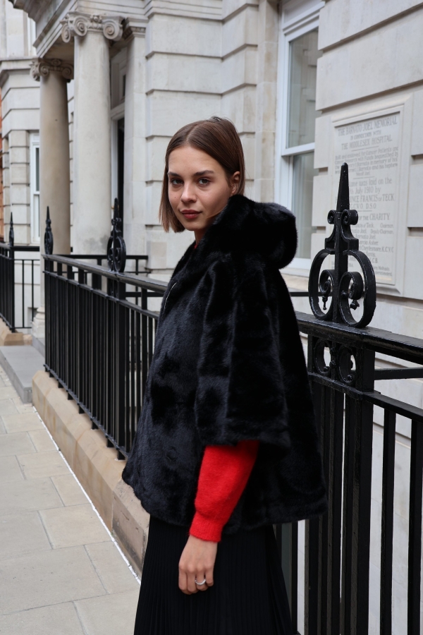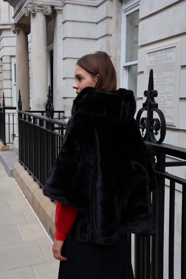 Andy outerwear feels so soft and luxurious, you’re guaranteed to be reaching for it on rotation all season long. This style has been made from plush faux fur . The minimal design is enhanced by a classic cape shape , while the smooth satin lining ensures easy layering. Andy coat offers the look of chic luxury while offering plenty of warmth. Discreet pockets come in handy for stowing essentials on the go. Lean into the relaxed mood by styling yours with just about anything. Slip it on over a turtleneck sweater or shirt dress.