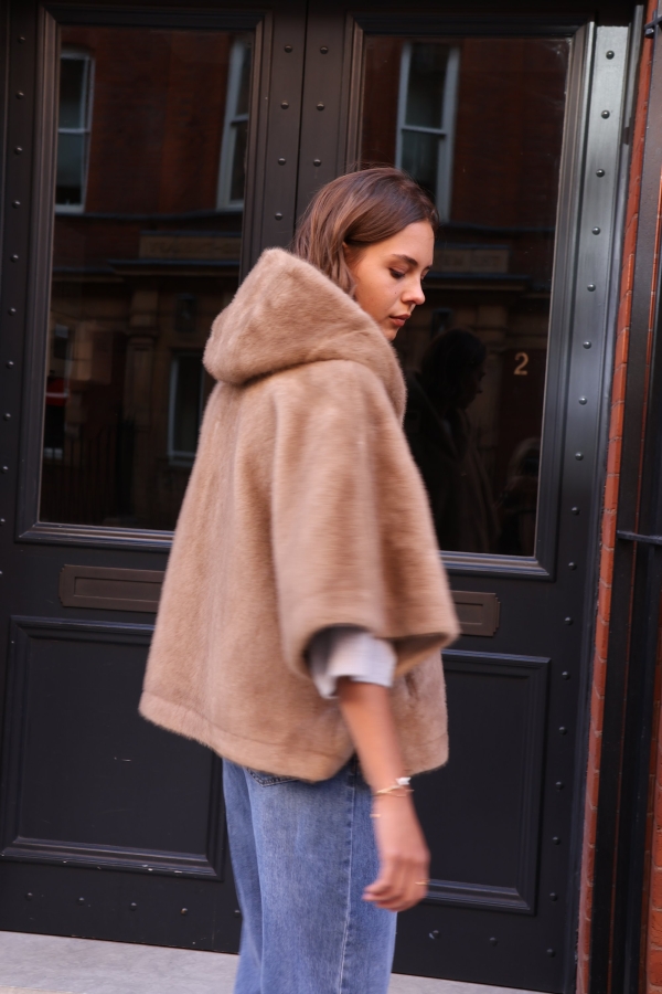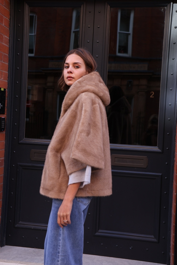 Andy outerwear feels so soft and luxurious, you’re guaranteed to be reaching for it on rotation all season long. This style has been made from plush faux fur . The minimal design is enhanced by  a classic cape shape , while the smooth satin lining ensures easy layering. Andy coat offers the look of chic luxury while offering plenty of warmth. Discreet pockets come in handy for stowing essentials on the go. Lean into the relaxed mood by styling yours with just about anything. Slip it on over a turtleneck sweater or shirt dress.