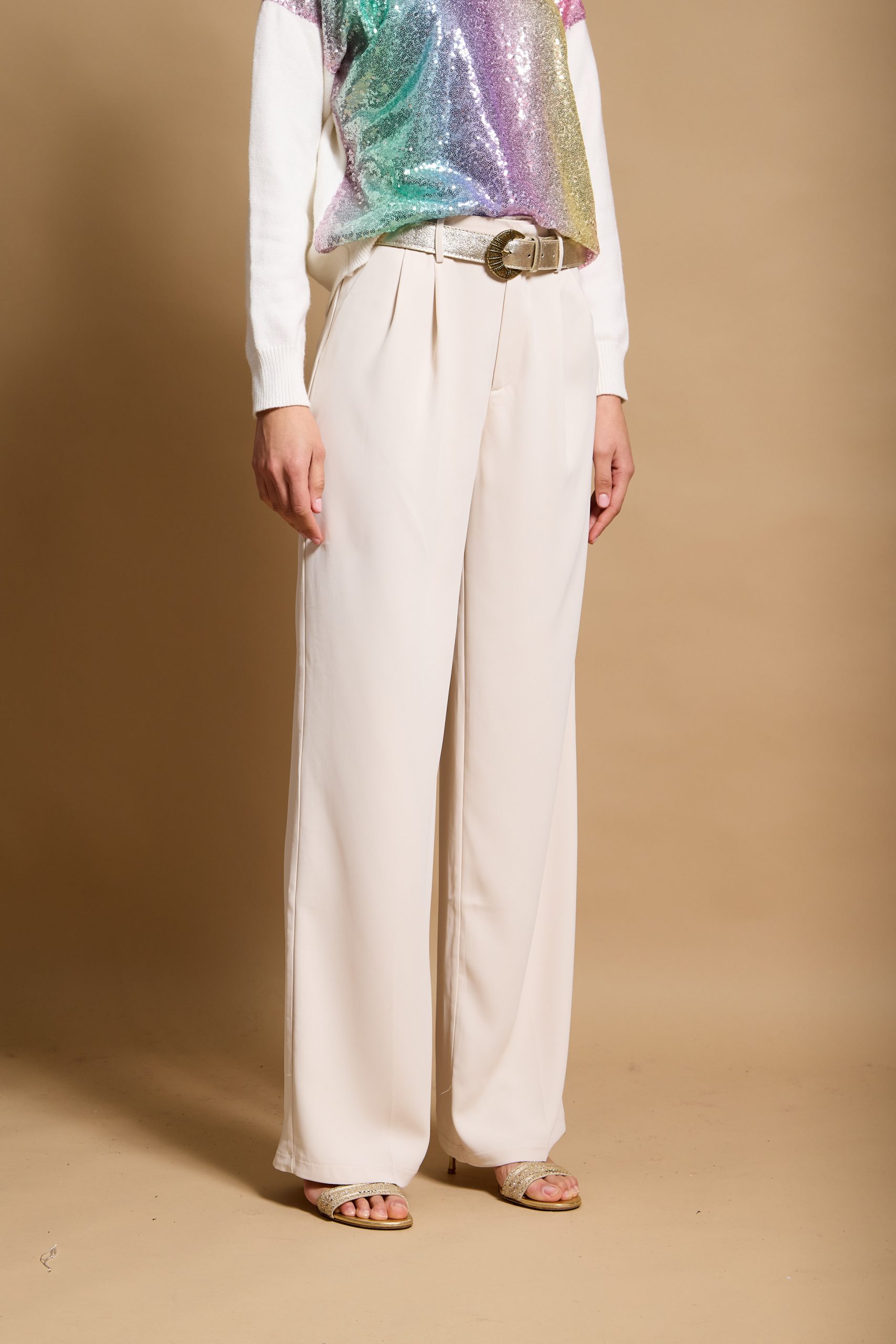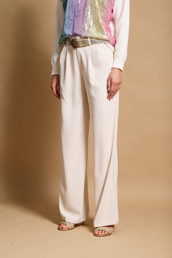 Expertly tailored  and wearability is clear with these beautifully tailored pants. They’re made from polyester spandex  blend and have a high-rise waist and sharp pleats through the legs. Slip your cardholder into the side welt pocket. Balance the relaxed legs with heeled sandals.