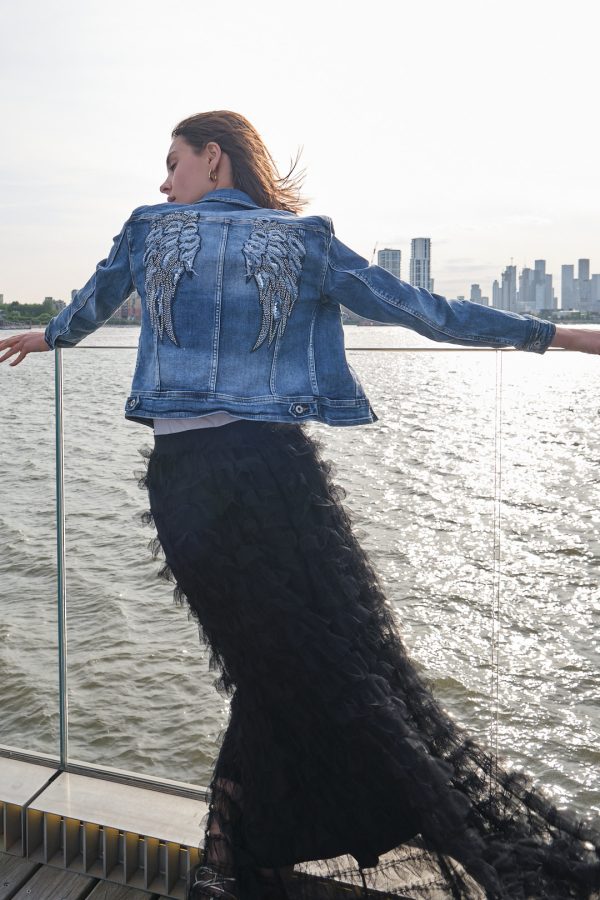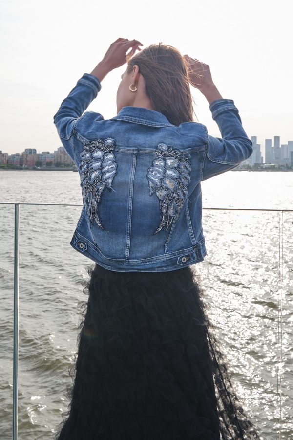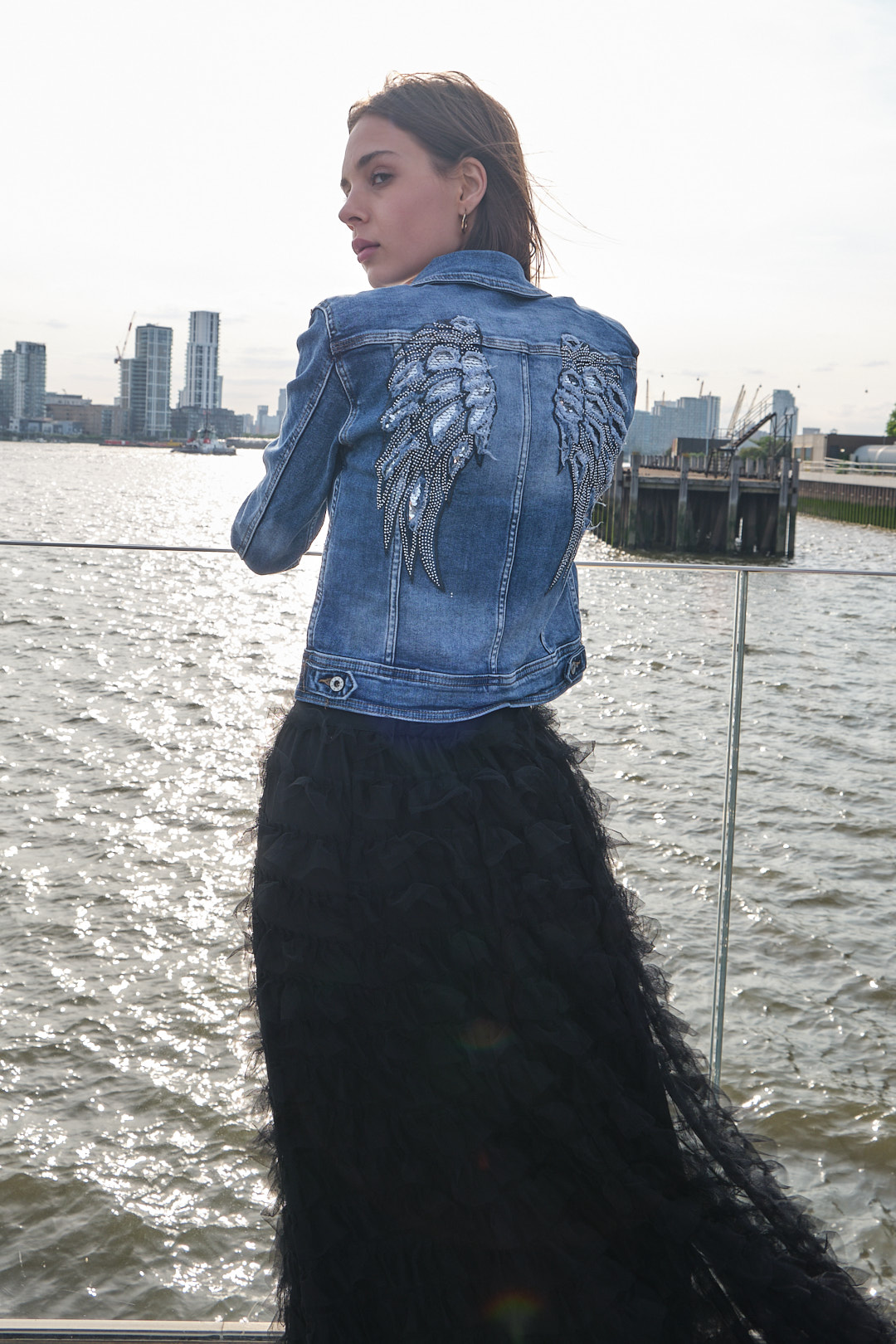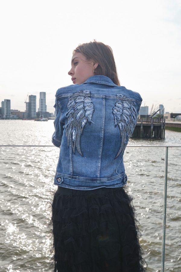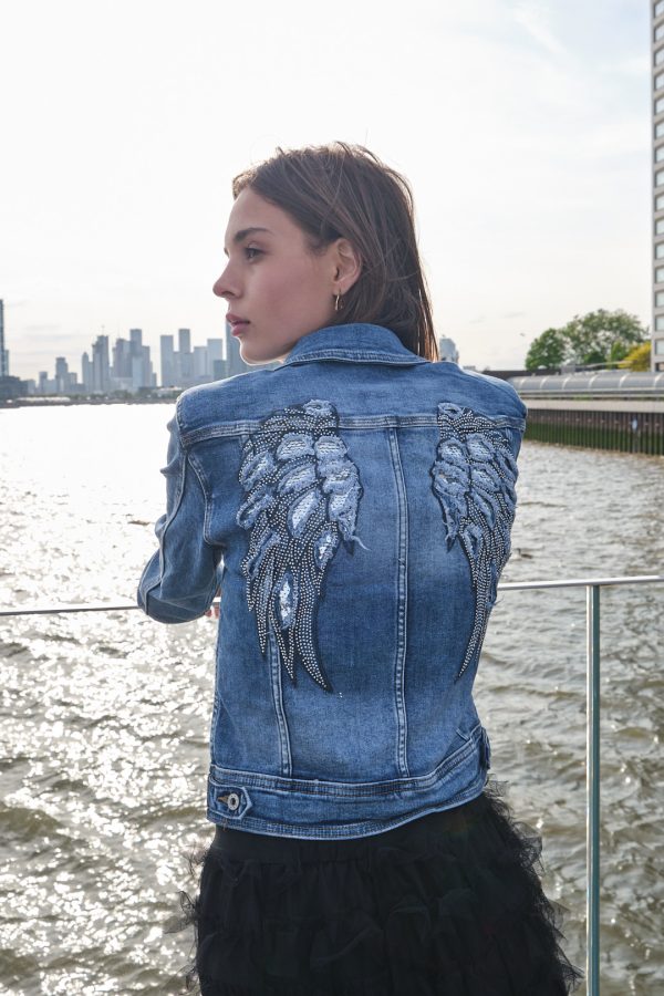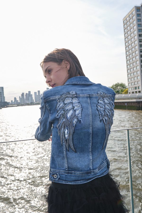 Our gorgeous @sonilododiuk showing us how to wear The Angel wings denim jacket in style. Embellished angel wings jacket Angelina is designed in a classic, relaxed silhouette with button-fastening flap pockets and a slightly cropped hem that hits the perfect point on your hips. Style it with tonal jeans or layered over a feminine dress.