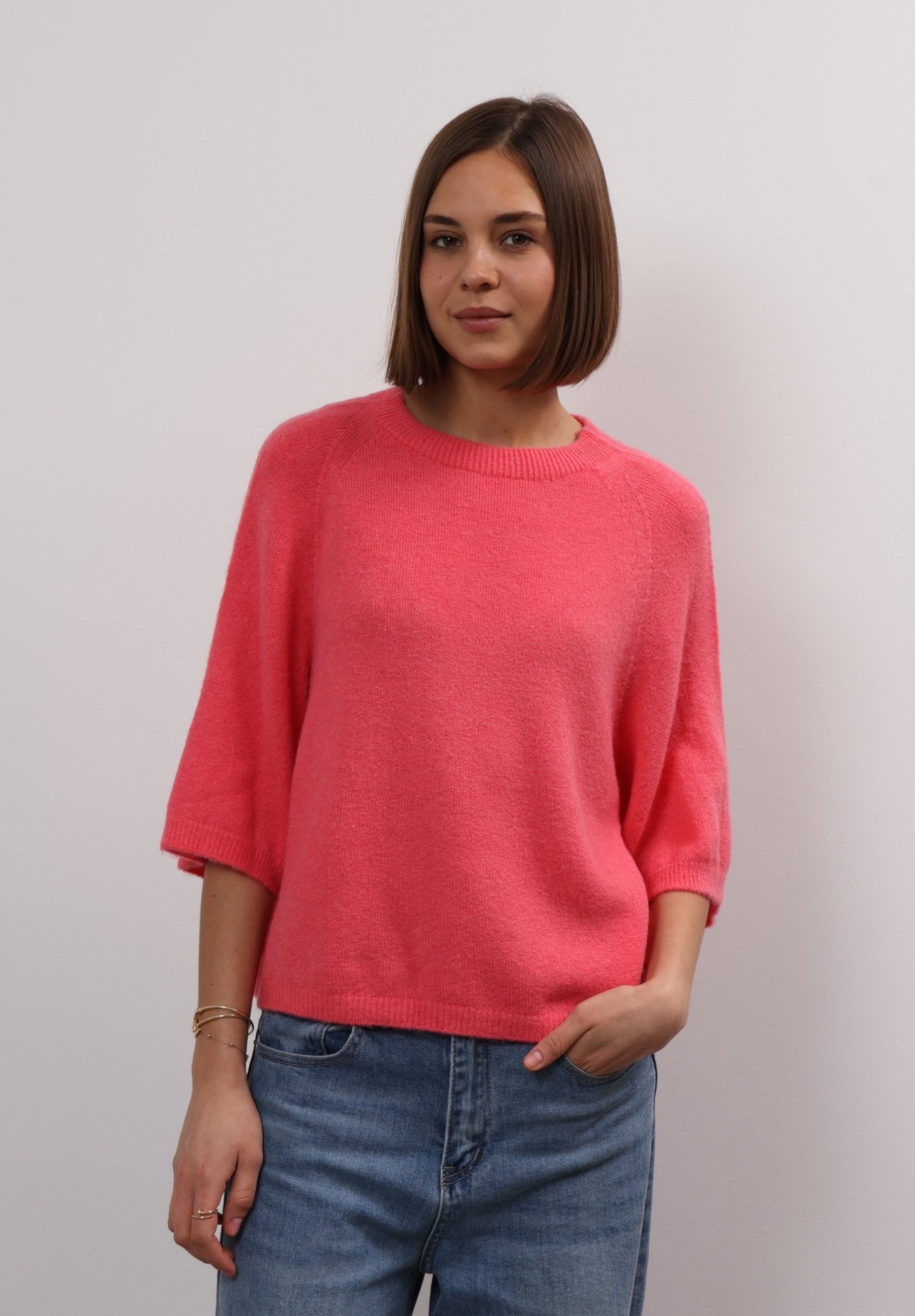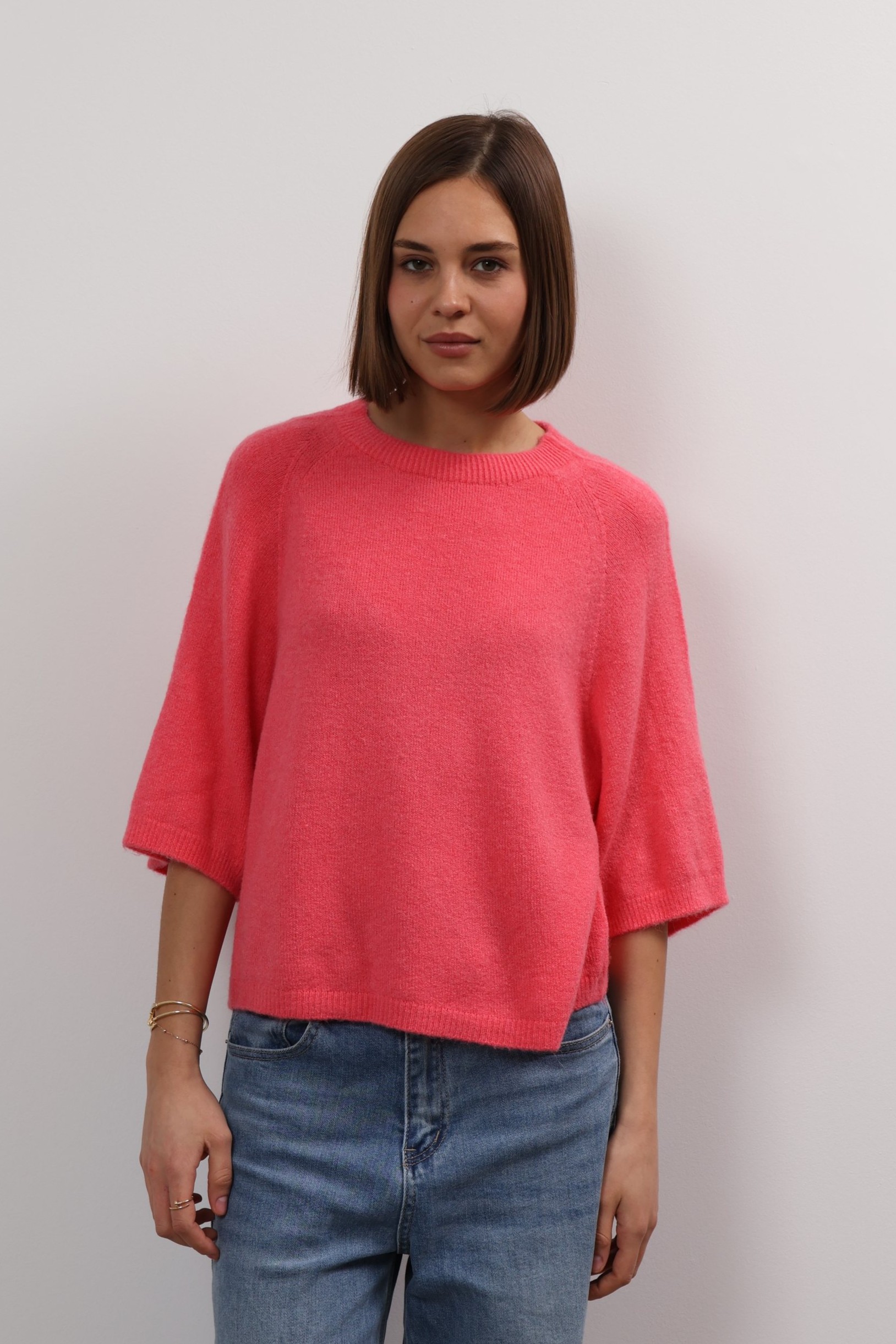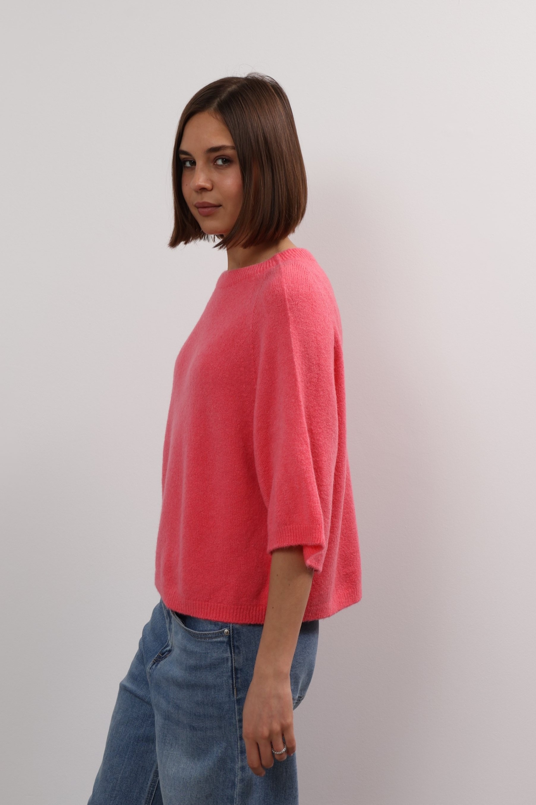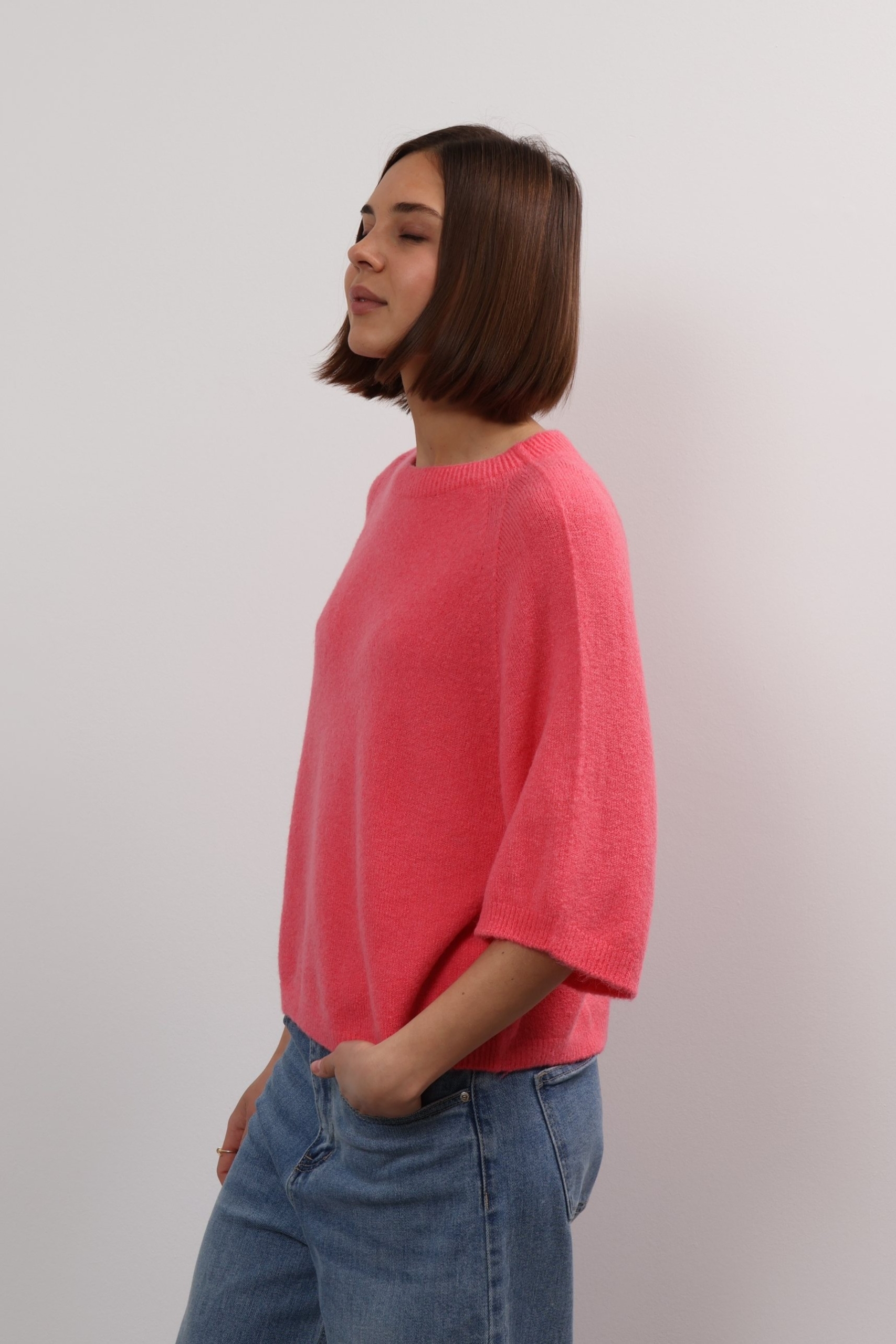 You can always depend on Ylondon for timeless, high-quality staples. Knitted from sumptuous alpaca, this sweater has a relaxed shape with ribbed trims and three-quarter length sleeves. The classic shade will complement everything from neutrals to bold pops of colour. The cropped hem and sleeves on Anita sweater offers up fresh ways to style it – wear it solo or layer it over a longer-sleeved shirt. It’s knitted from alpaca wool blend that feels beautifully soft thanks to its special quality. Wear it half-tucked into your favourite jeans.
