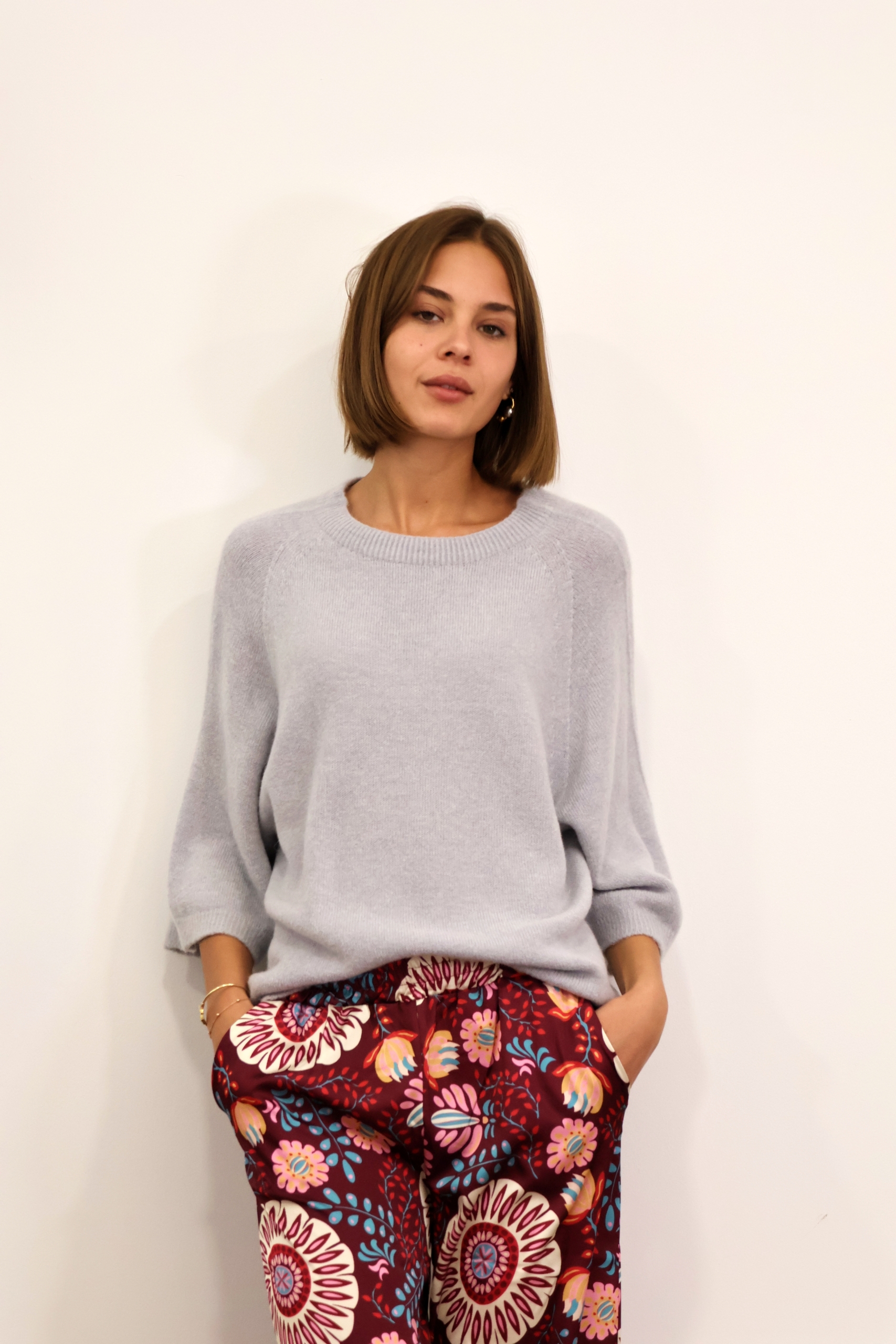 Anita – three-quarter length sleeves sweater in dove grey