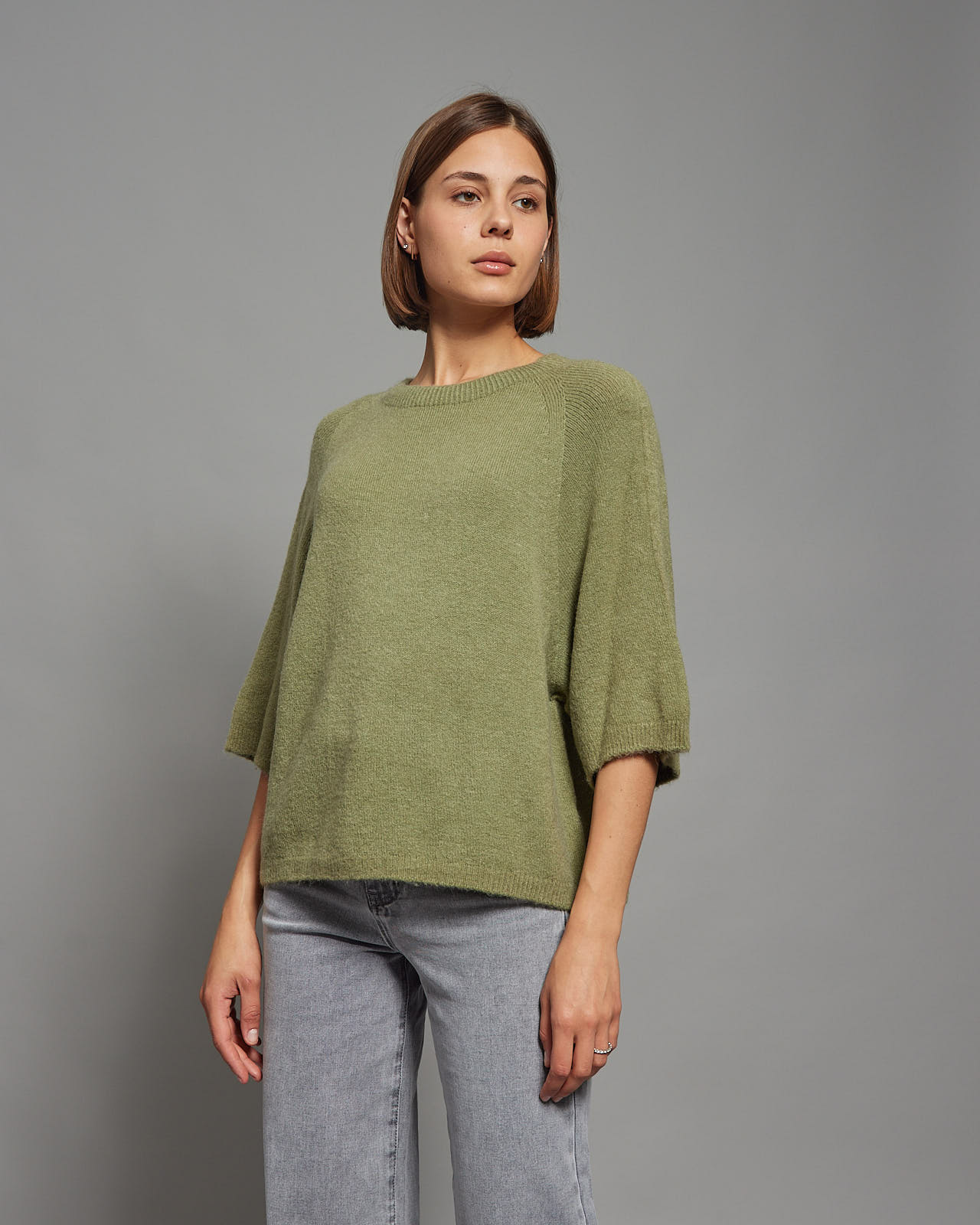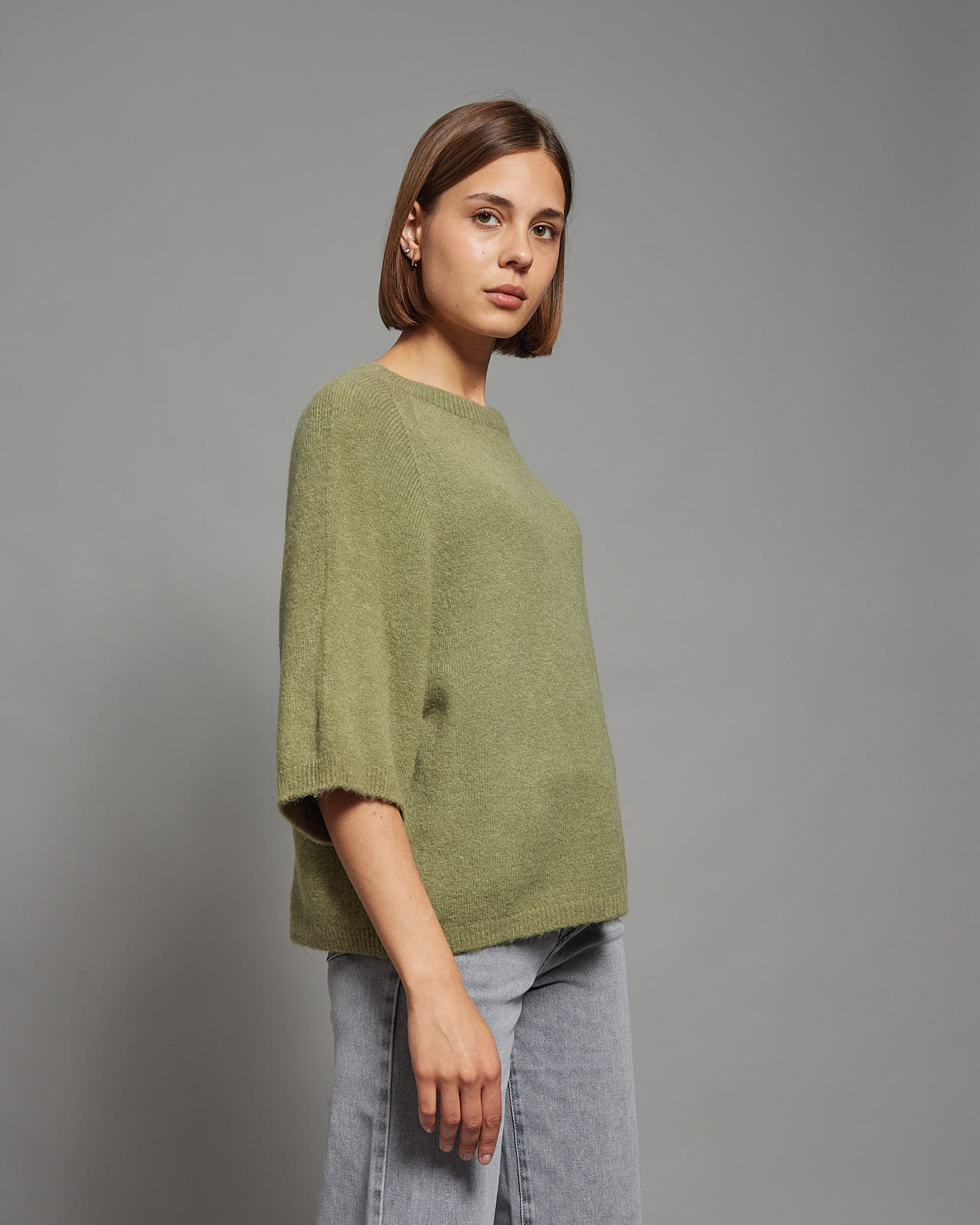 You can always depend on Ylondon for timeless, high-quality staples. Knitted from sumptuous alpaca, this sweater has a relaxed shape with ribbed trims and three-quarter length sleeves. The classic  shade will complement everything from neutrals to bold pops of colour. The cropped hem and sleeves on Anita sweater offers up fresh ways to style it – wear it solo or layer it over a longer-sleeved shirt. It’s knitted from alpaca wool blend that feels beautifully soft thanks to its special quality. Wear it half-tucked into your favourite jeans.