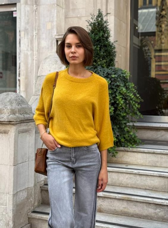 Anita – three-quarter length sleeves sweater in mustered
