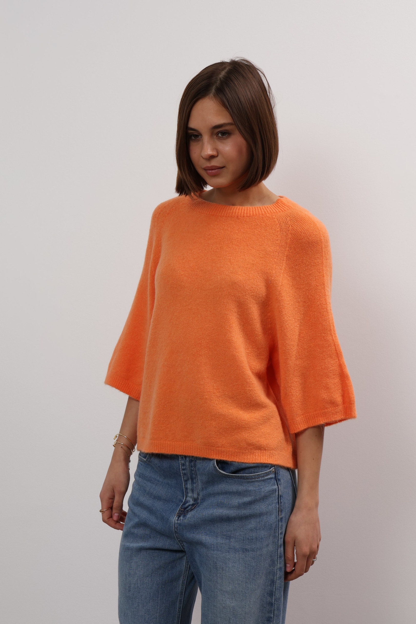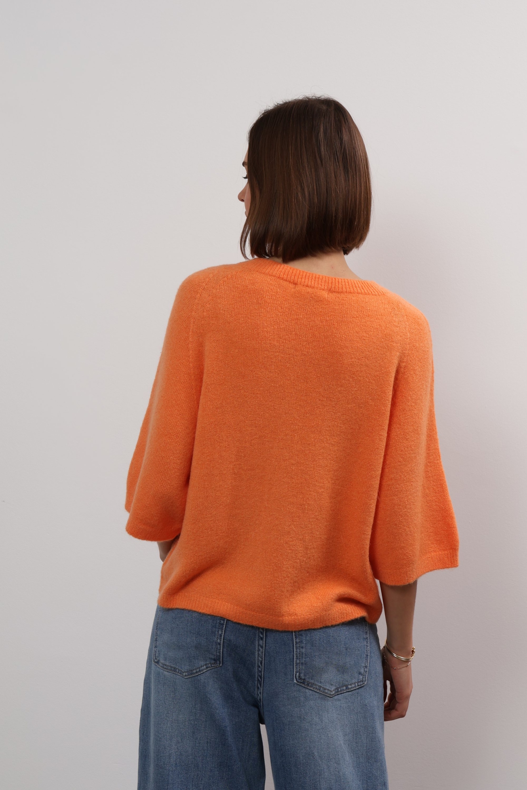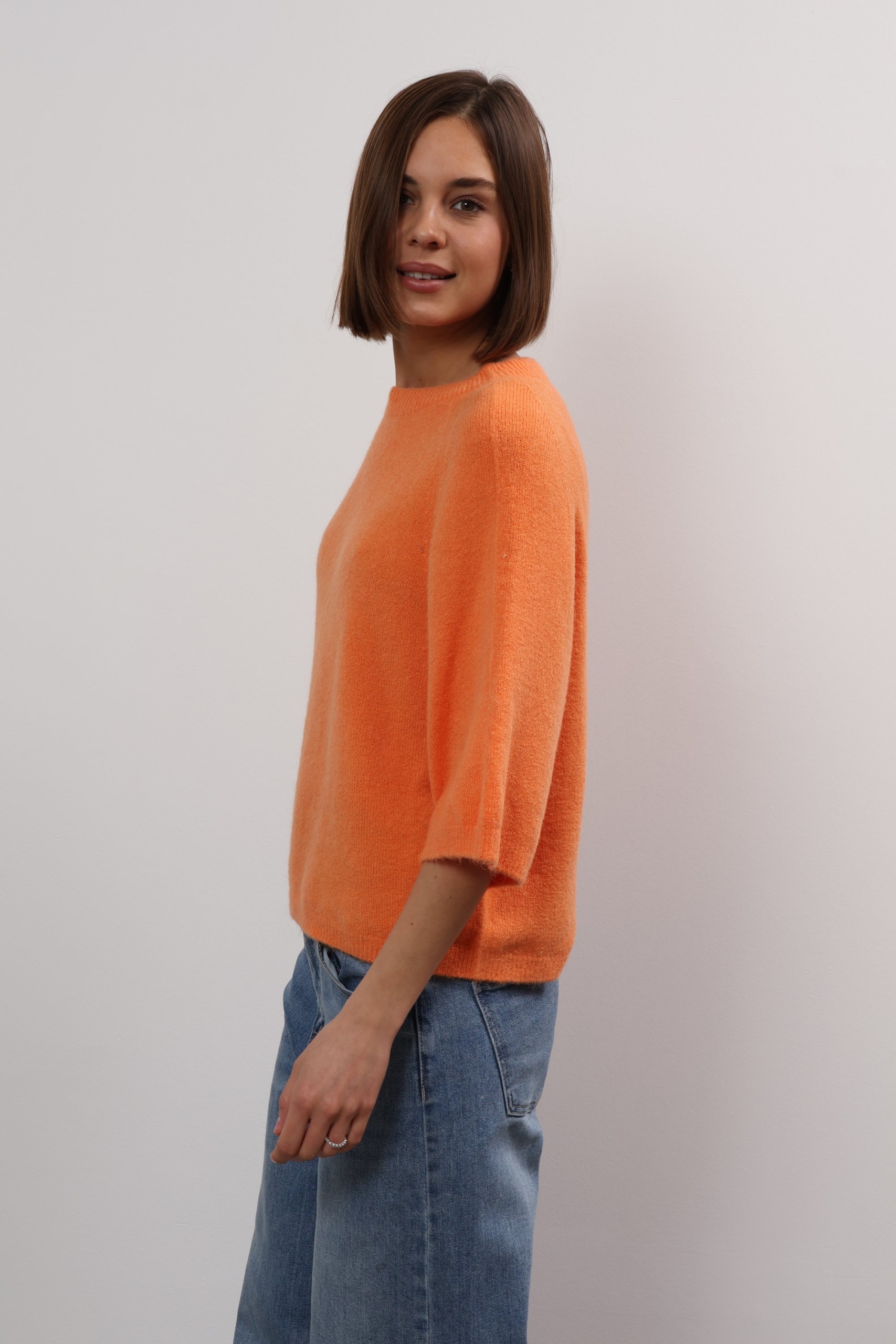 You can always depend on Ylondon for timeless, high-quality staples. Knitted from sumptuous alpaca, this sweater has a relaxed shape with ribbed trims and three-quarter length sleeves. The classic shade will complement everything from neutrals to bold pops of colour. The cropped hem and sleeves on Anita sweater offers up fresh ways to style it – wear it solo or layer it over a longer-sleeved shirt. It’s knitted from alpaca wool blend that feels beautifully soft thanks to its special quality. Wear it half-tucked into your favourite jeans.