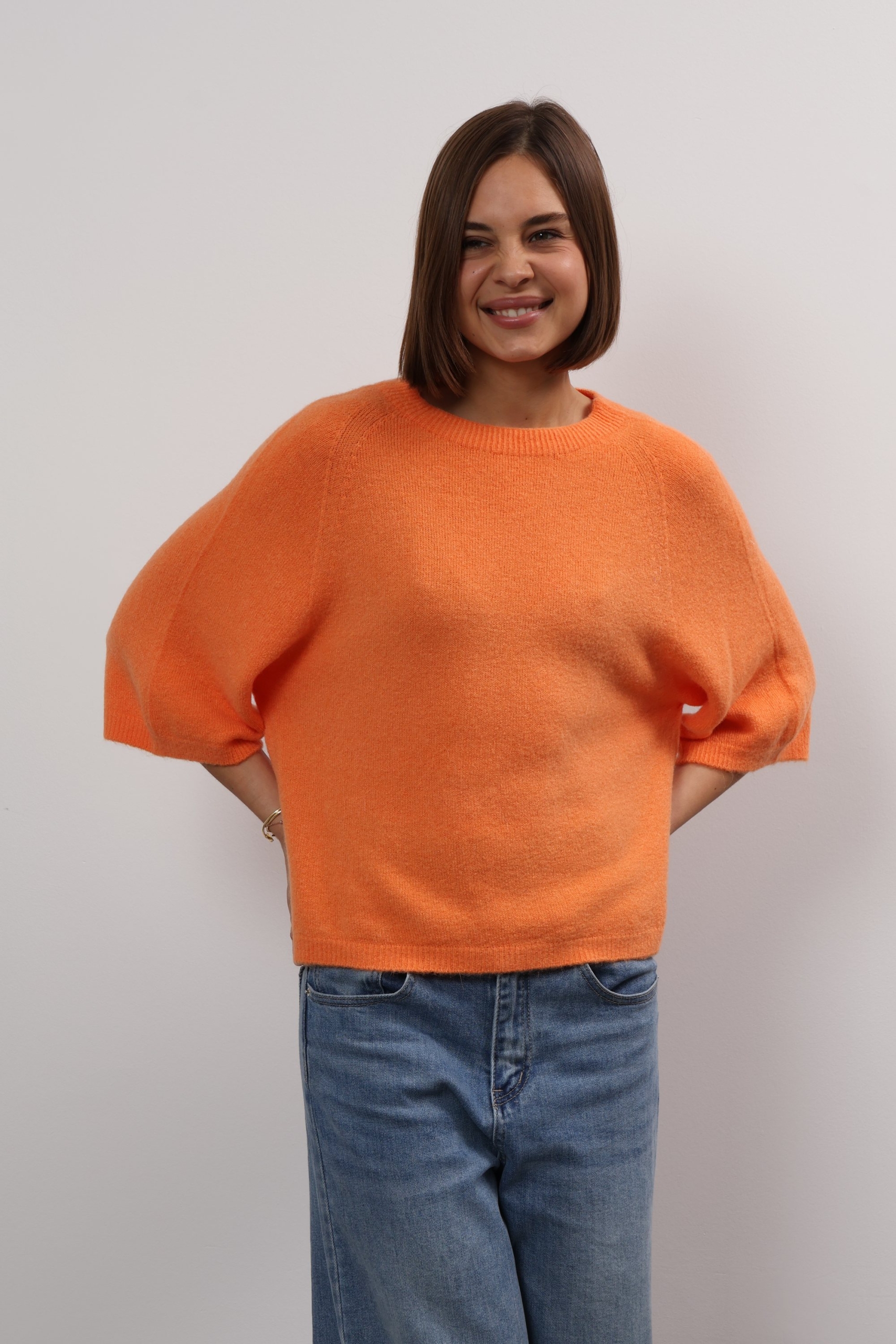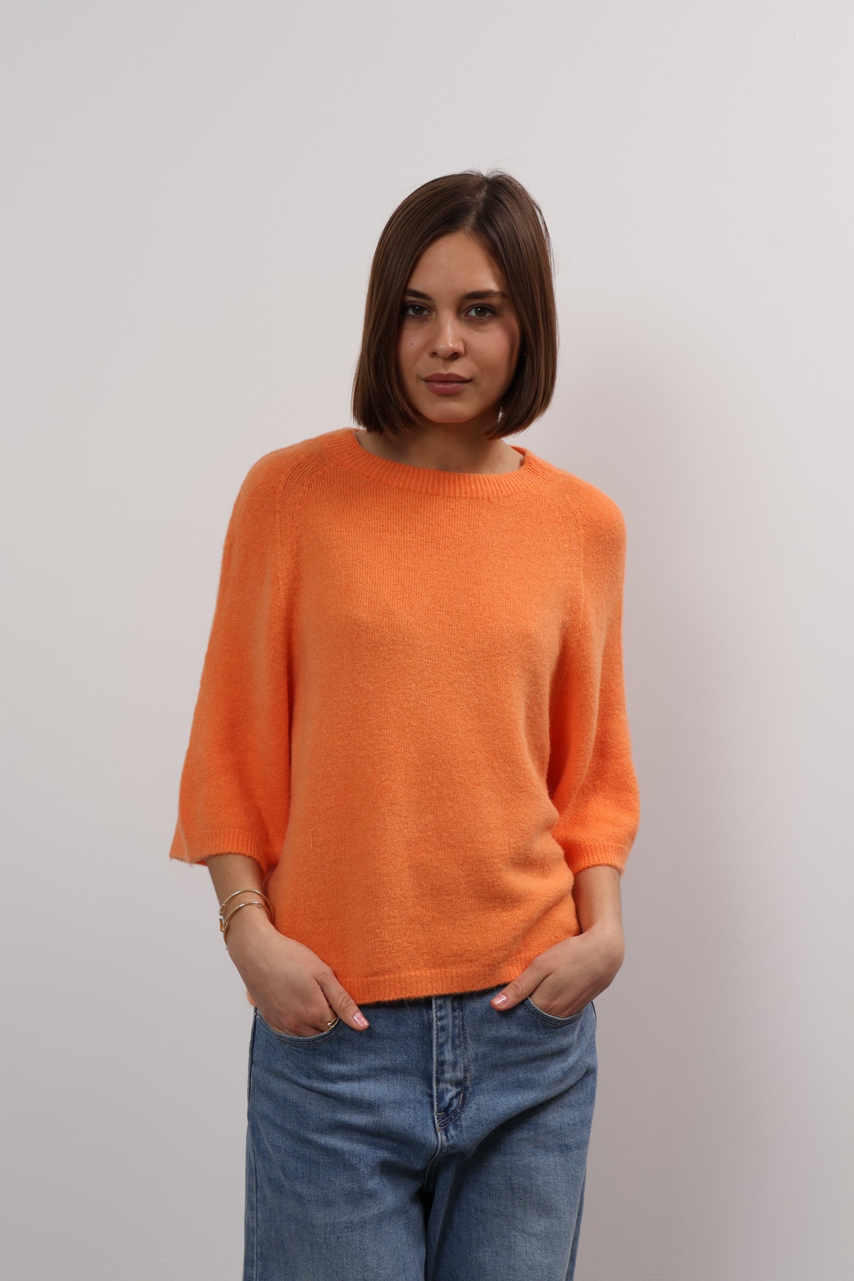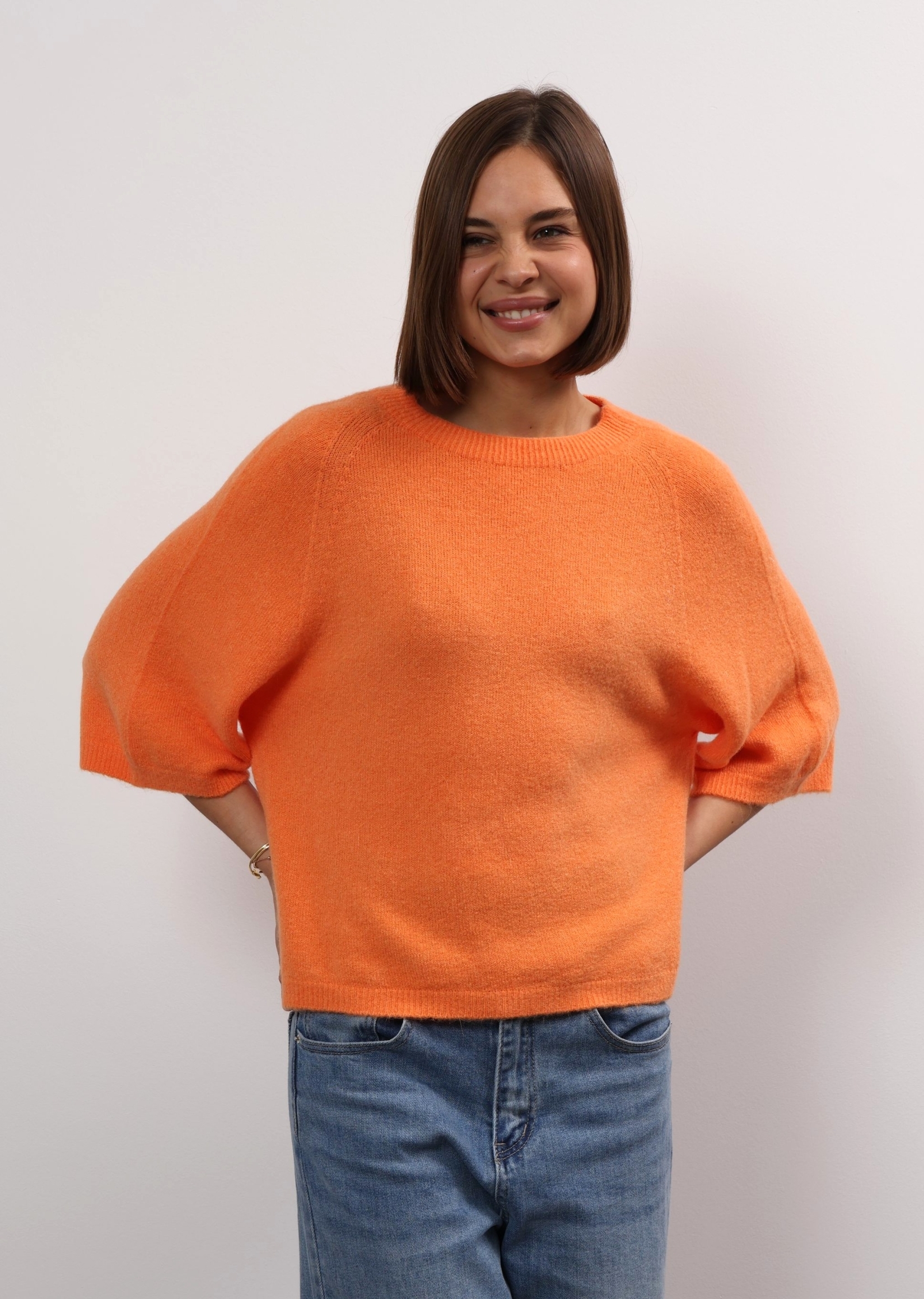 You can always depend on Ylondon for timeless, high-quality staples. Knitted from sumptuous alpaca, this sweater has a relaxed shape with ribbed trims and three-quarter length sleeves. The classic shade will complement everything from neutrals to bold pops of colour. The cropped hem and sleeves on Anita sweater offers up fresh ways to style it – wear it solo or layer it over a longer-sleeved shirt. It’s knitted from alpaca wool blend that feels beautifully soft thanks to its special quality. Wear it half-tucked into your favourite jeans.