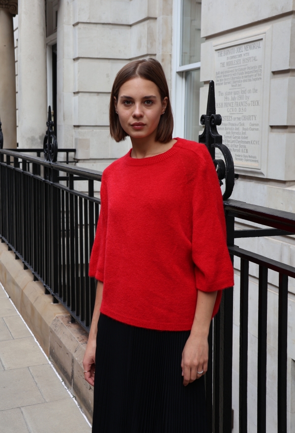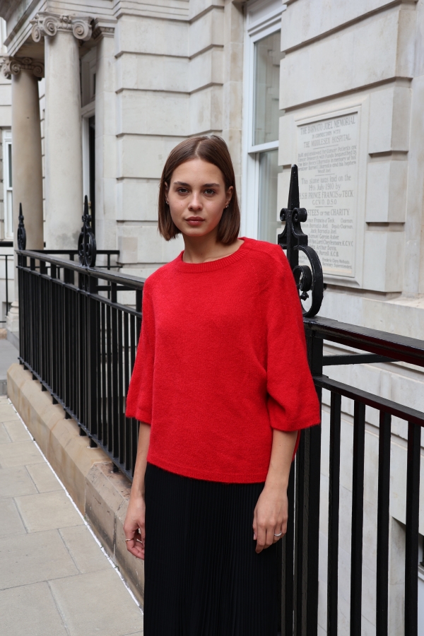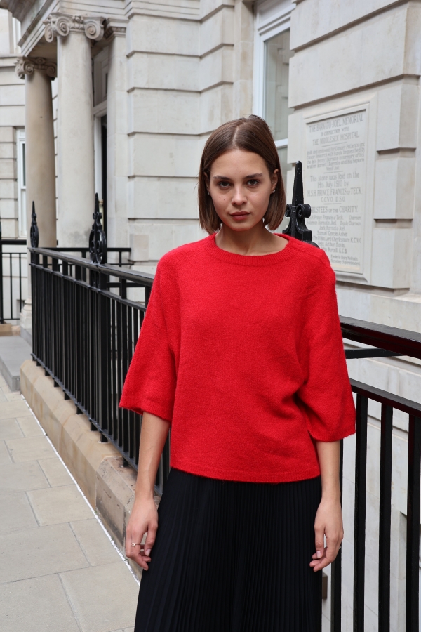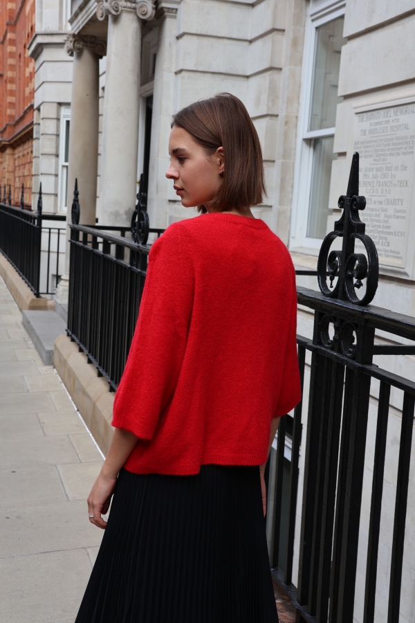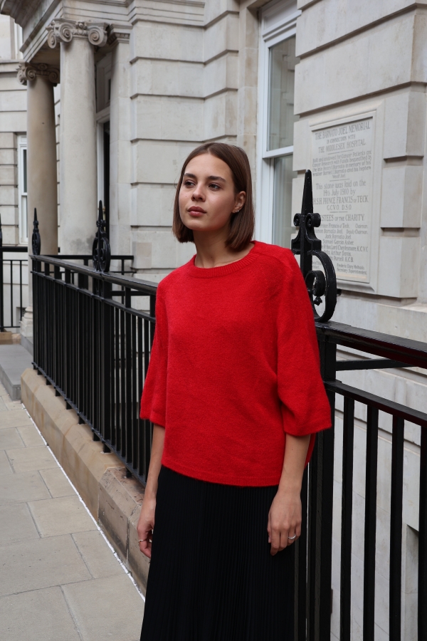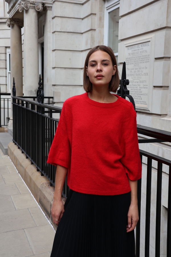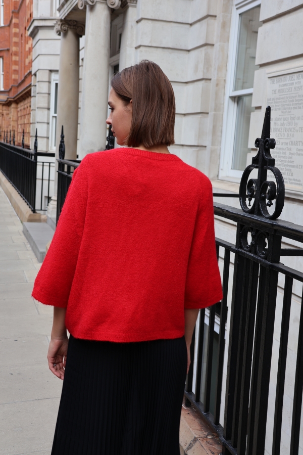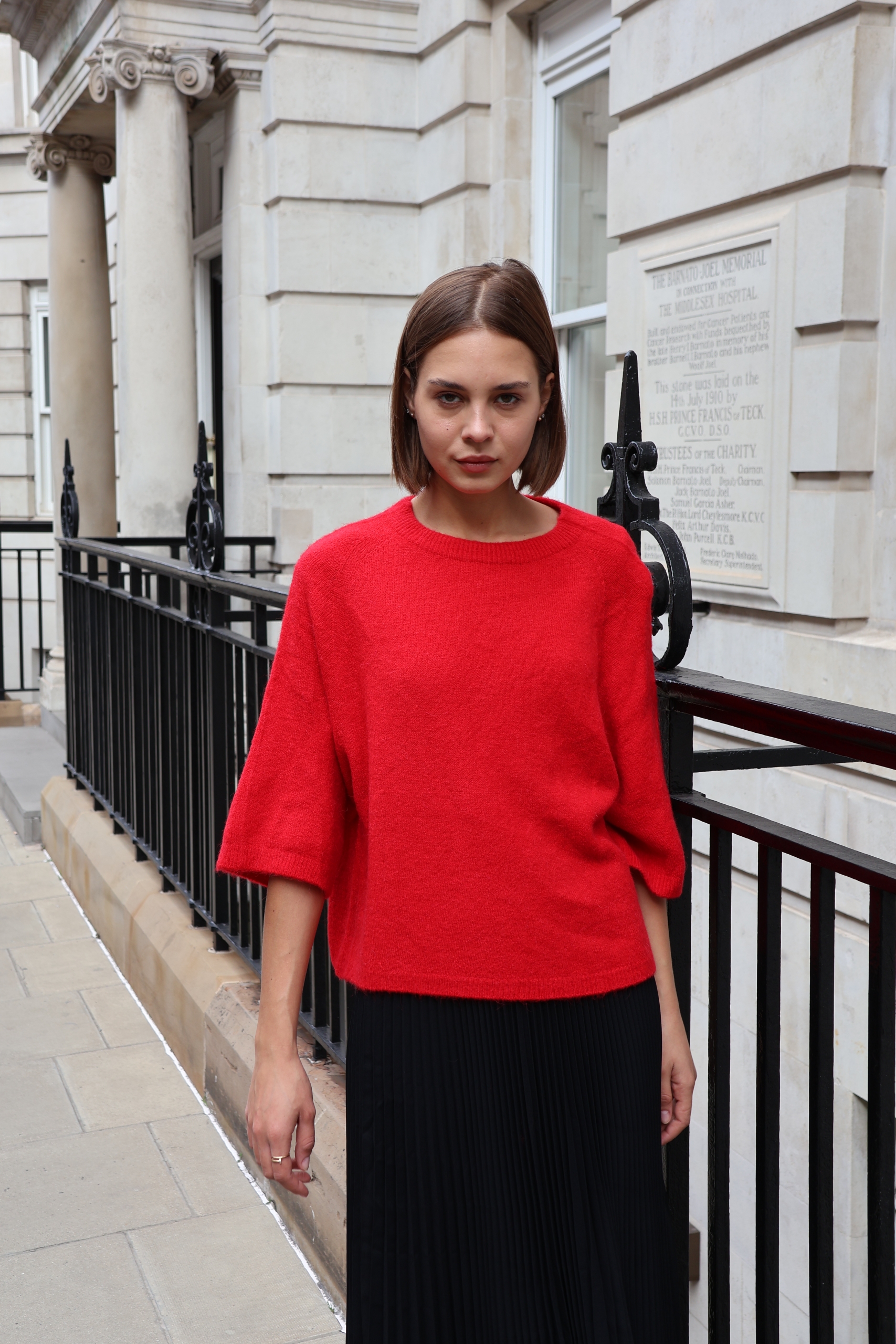 You can always depend on Ylondon for timeless, high-quality staples. Knitted from sumptuous alpaca, this sweater has a relaxed shape with ribbed trims and three-quarter length sleeves. The classic  shade will complement everything from neutrals to bold pops of colour. The cropped hem and sleeves on Anita sweater offers up fresh ways to style it – wear it solo or layer it over a longer-sleeved shirt. It’s knitted from alpaca wool blend that feels beautifully soft thanks to its special quality. Wear it half-tucked into your favourite jeans.