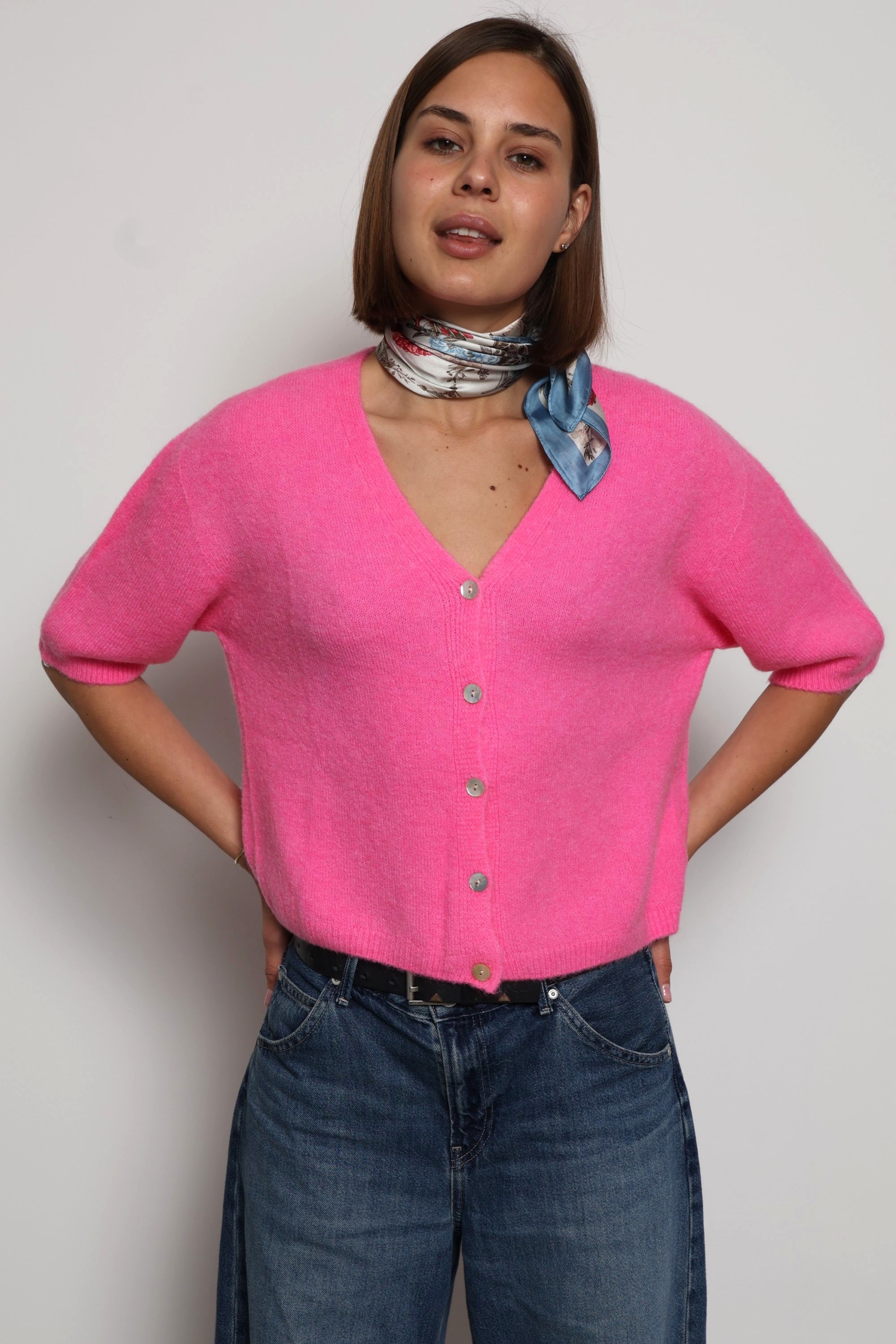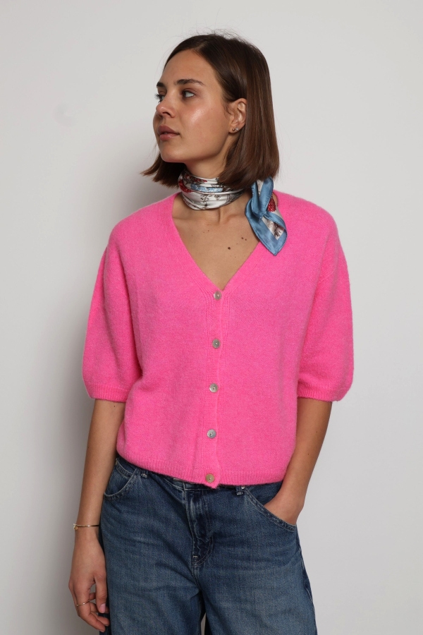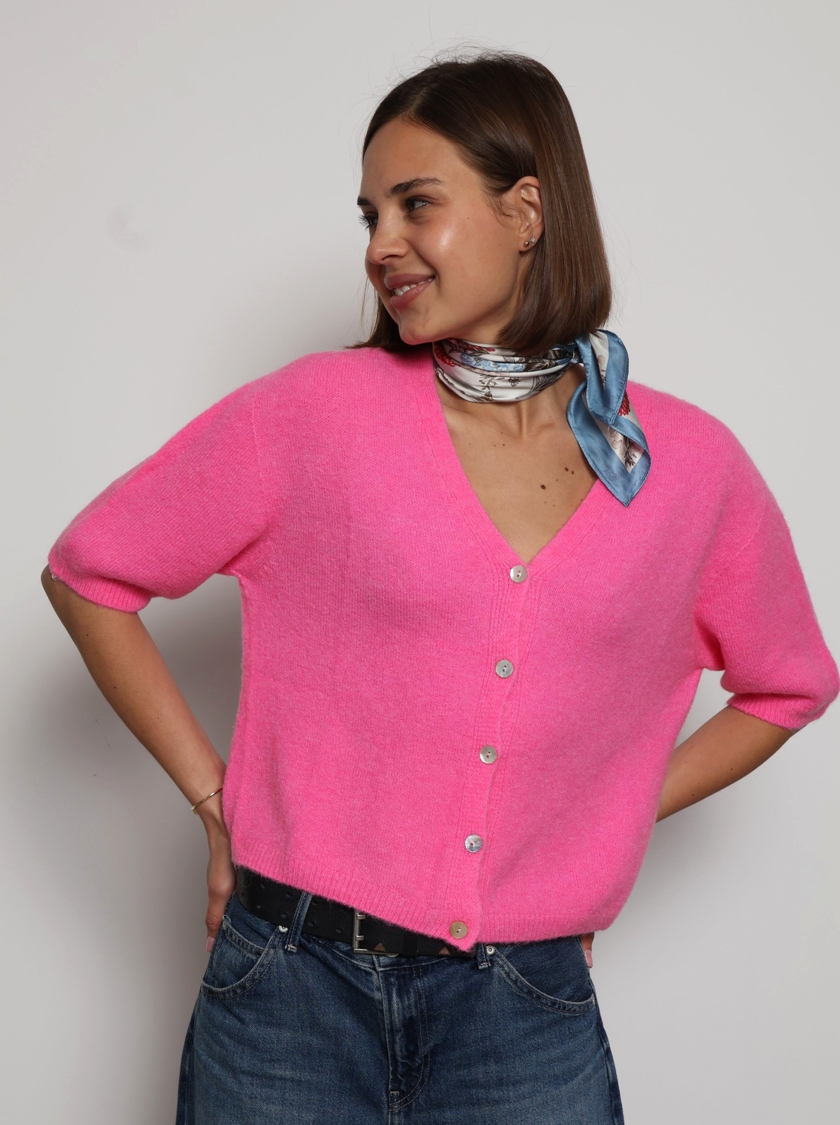 Anna cardigan is finely knitted from a pretty shade of a lightweight wool and alpaca for a soft, fuzzy handle. It’s designed for a slim fit with ribbed trims. Slip it on over a tank  and leave it undone at the hem for a laid-back take. It has a slim silhouette that’s perfect for layering. The spring hue will coordinate well with denim and floral-print dresses alike.