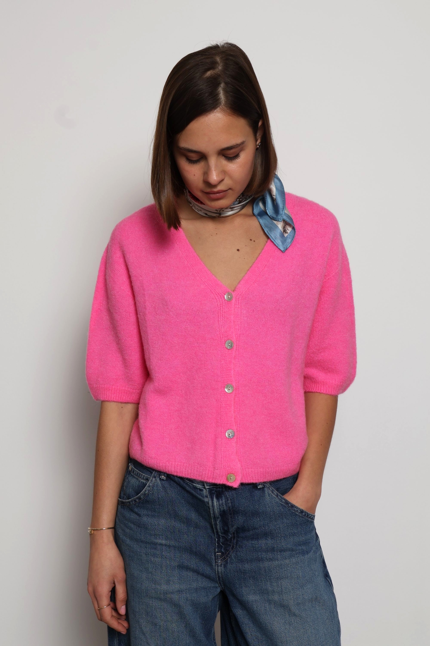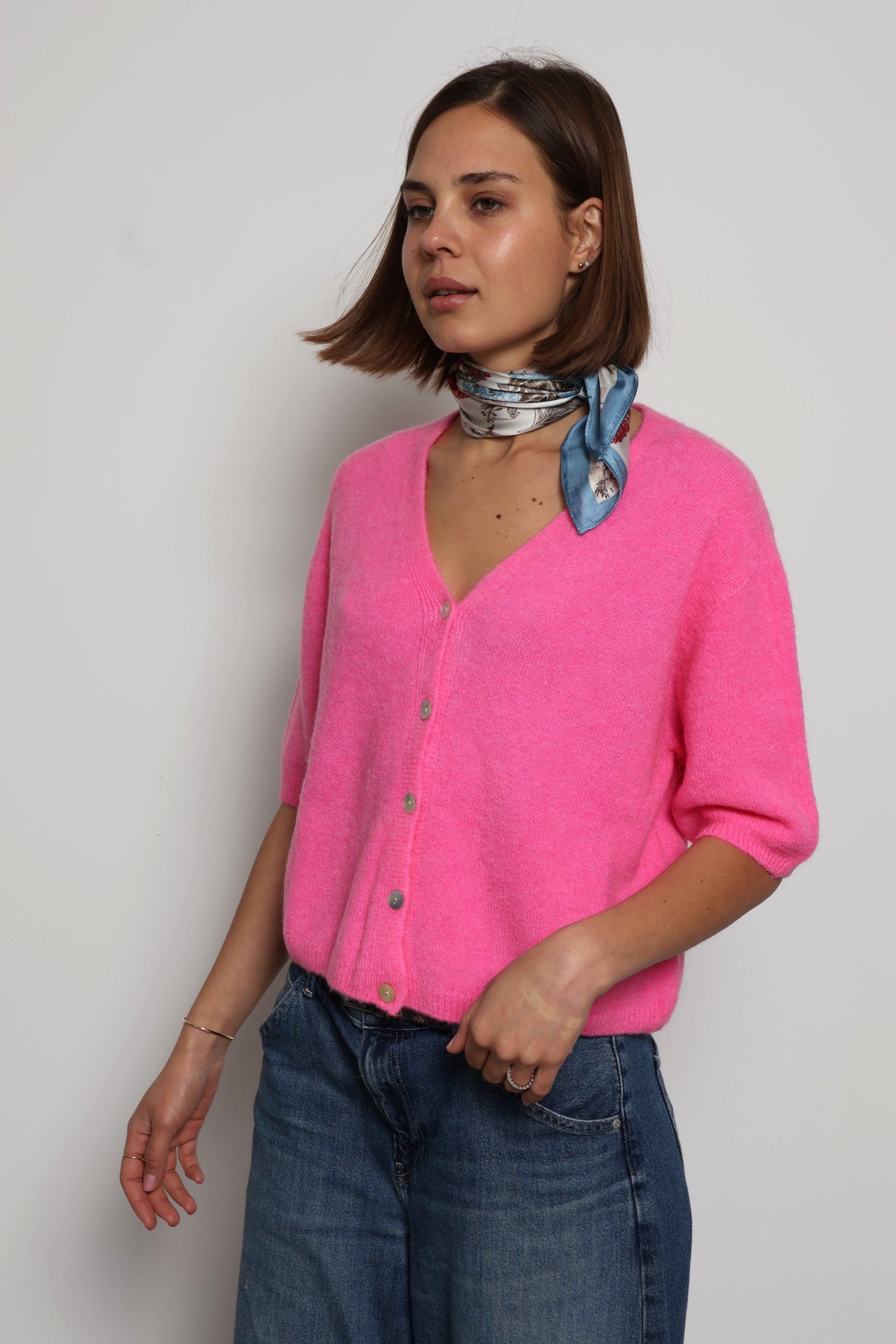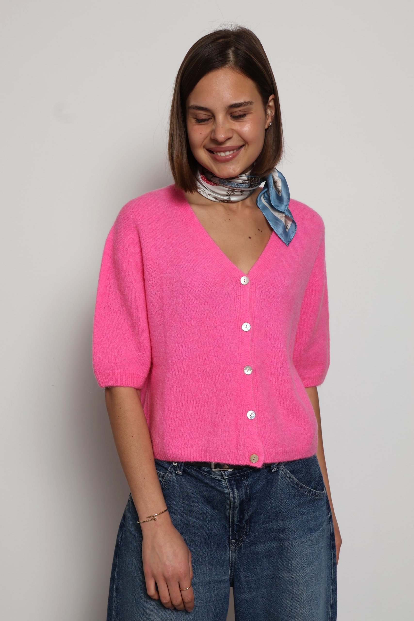 Anna cardigan is finely knitted from a pretty shade of a lightweight wool and alpaca for a soft, fuzzy handle. It’s designed for a slim fit with ribbed trims. Slip it on over a tank  and leave it undone at the hem for a laid-back take. It has a slim silhouette that’s perfect for layering. The spring hue will coordinate well with denim and floral-print dresses alike.