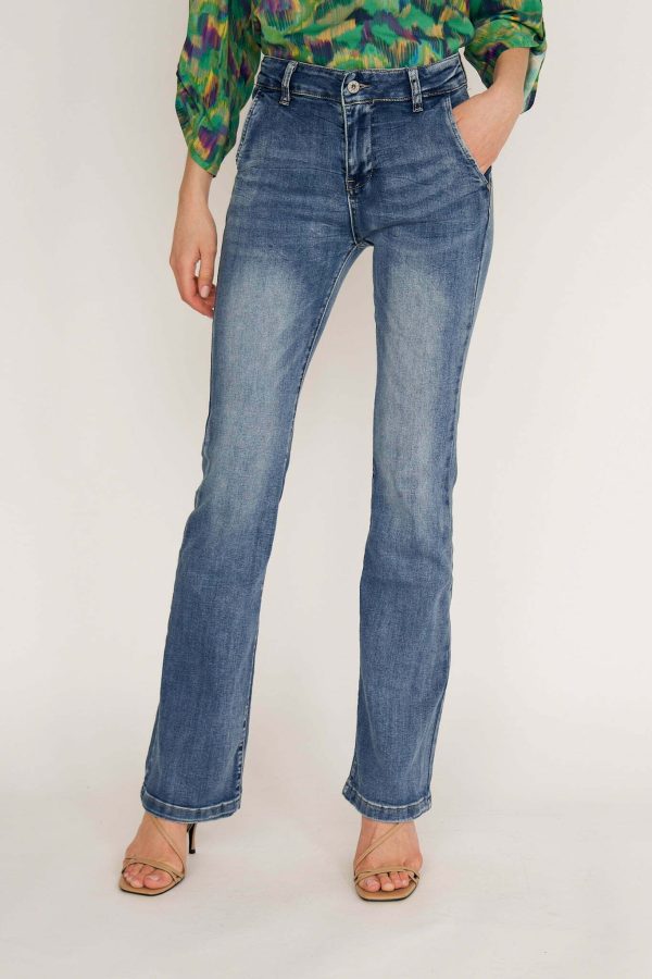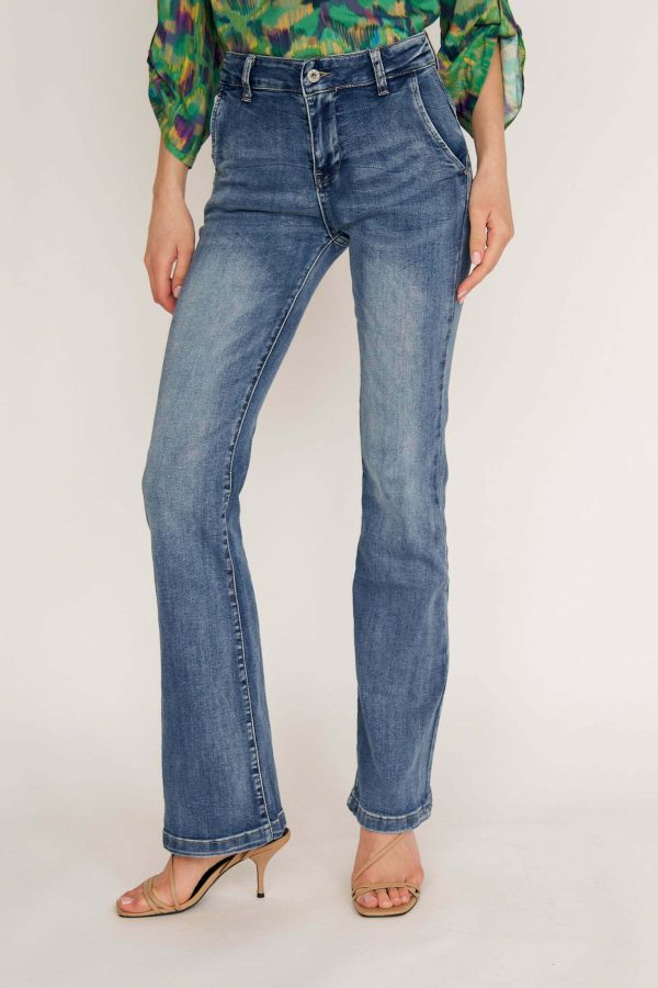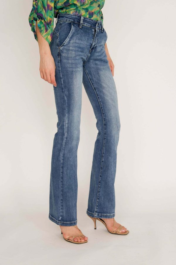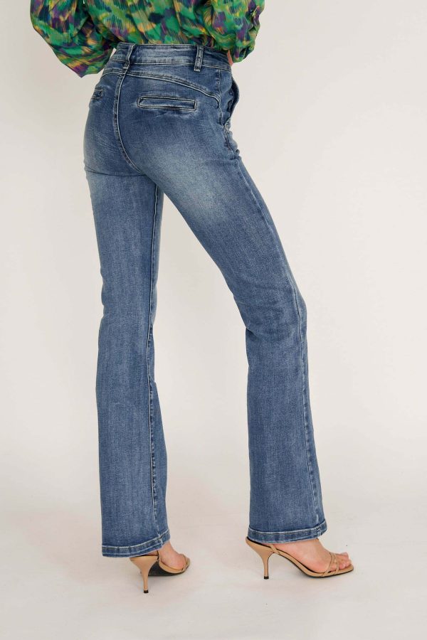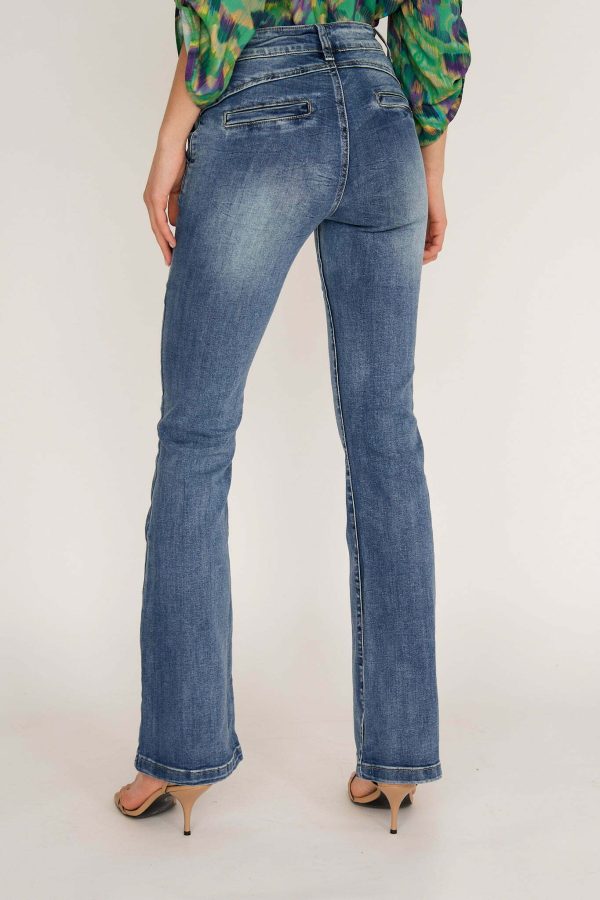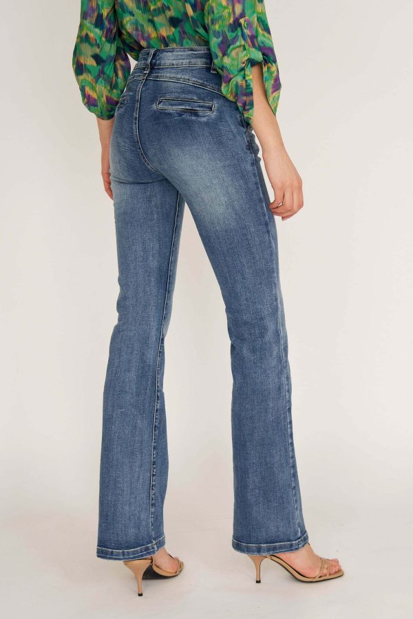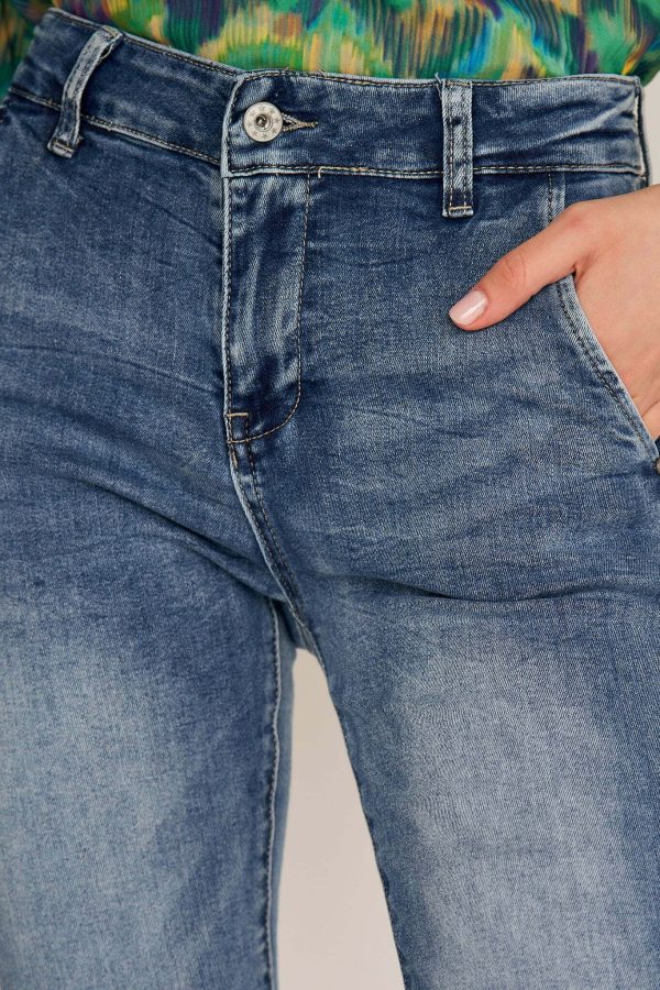 Ana jeans are modeled on the pants that were so famous in ’70s. Cut from premium denim, they have a high-rise waist and dramatic wide legs. Wear them with heels or heeled boots to balance the length.Wear yours with and oversized shirt or chunky knit.