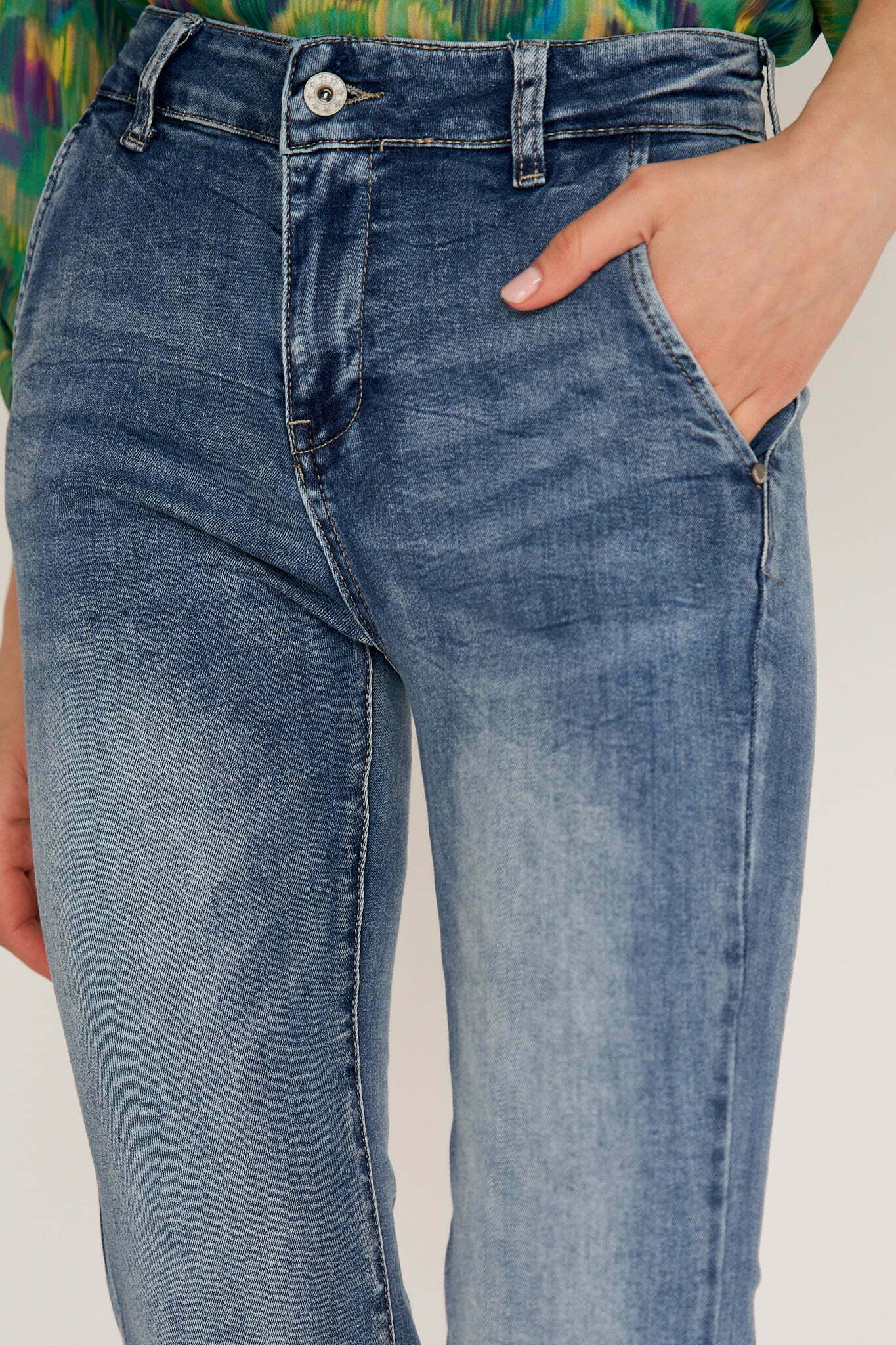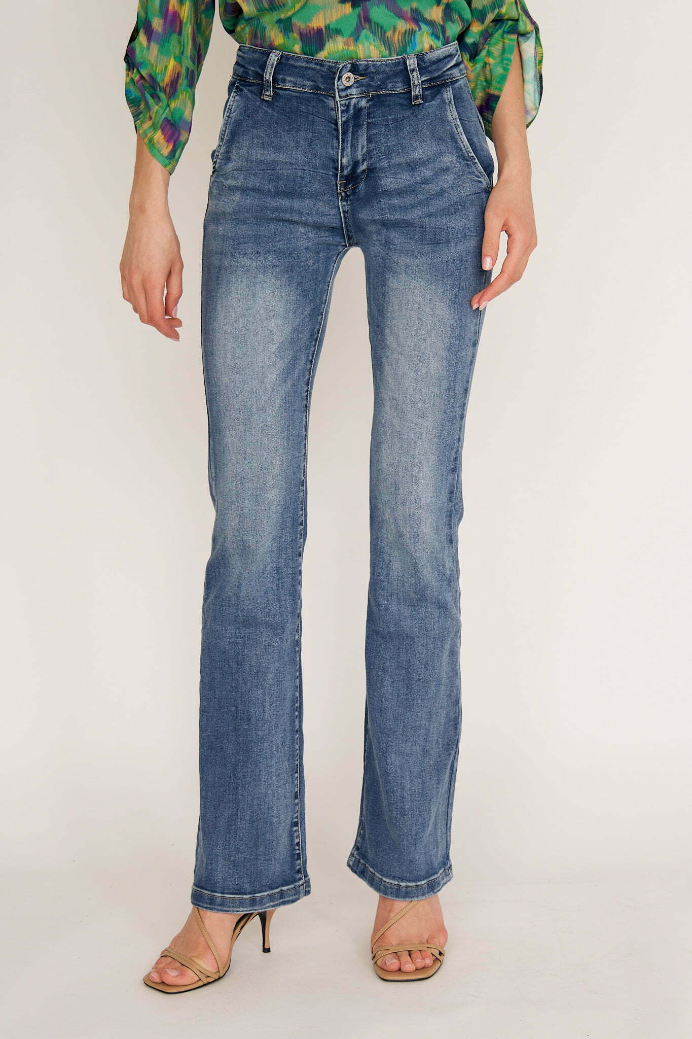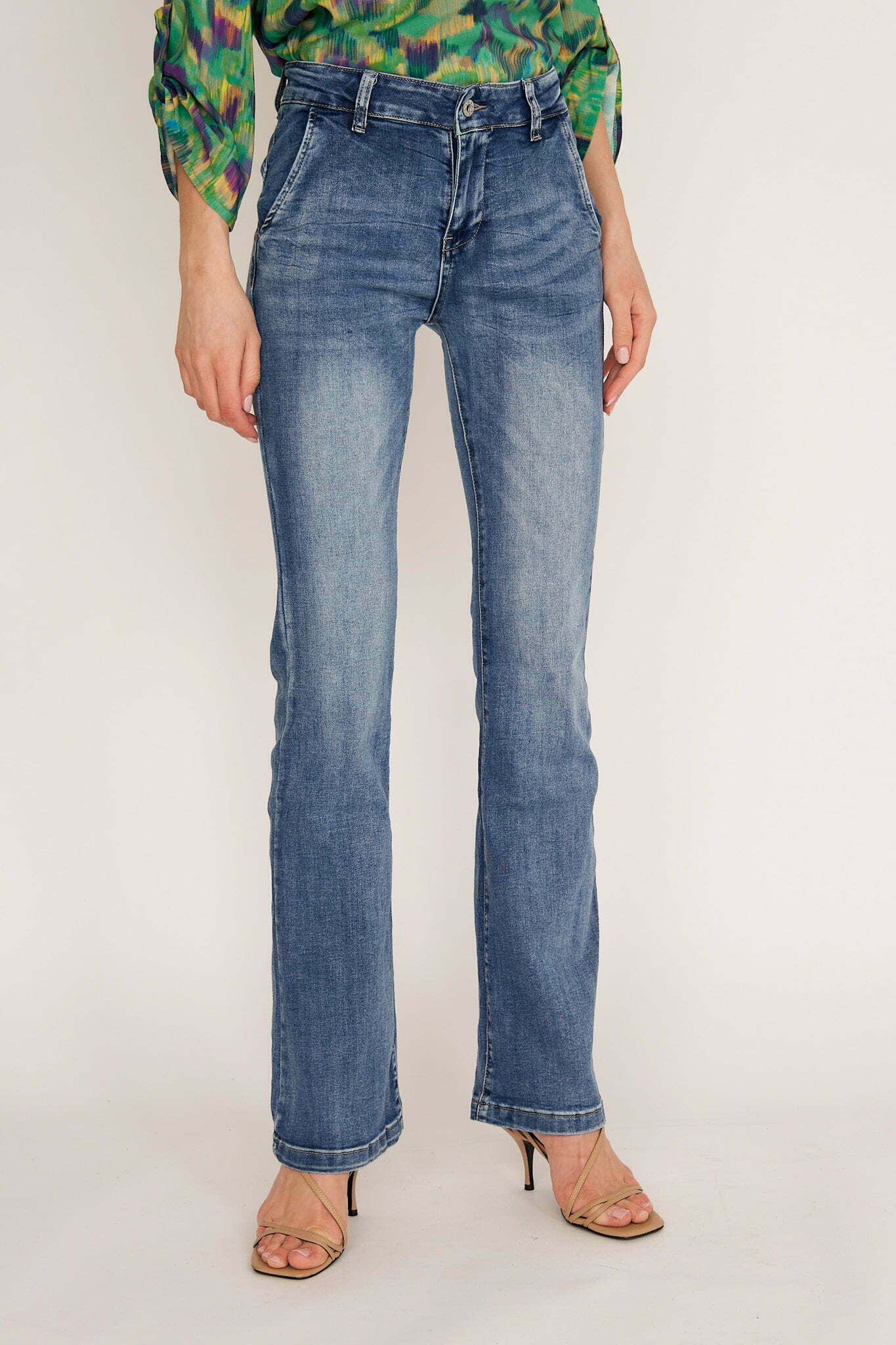 Ana jeans are modeled on the pants that were so famous in ’70s. Cut from premium denim, they have a high-rise waist and dramatic wide legs. Wear them with heels or heeled boots to balance the length.Wear yours with and oversized shirt or chunky knit.