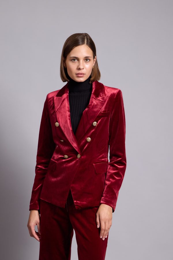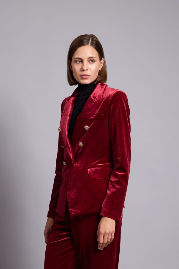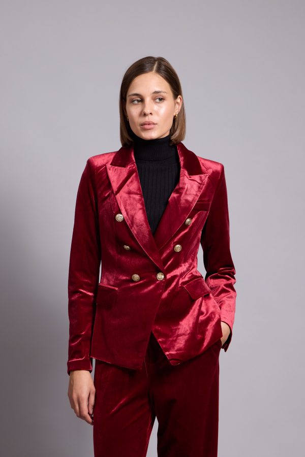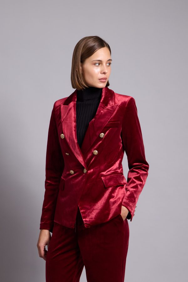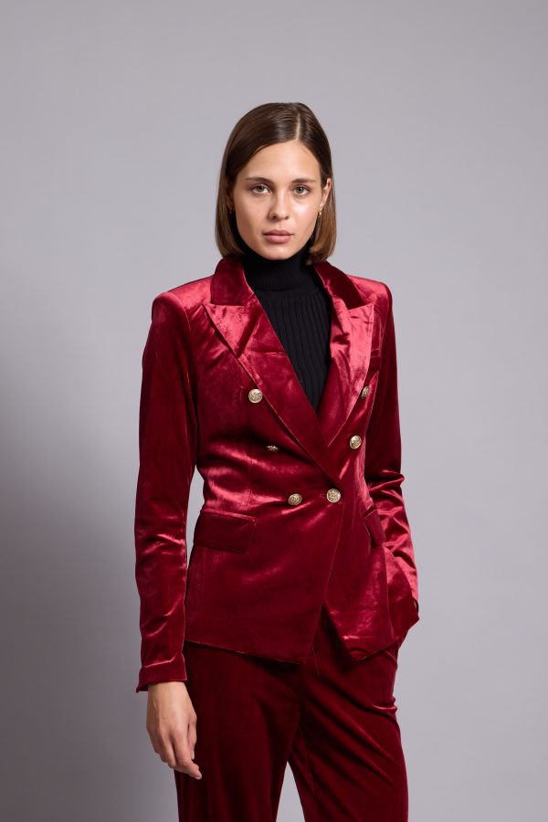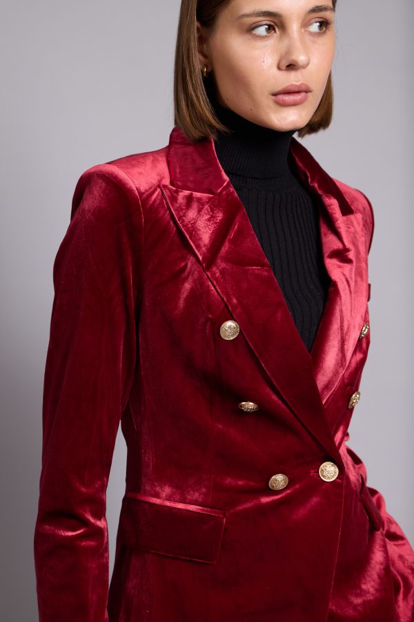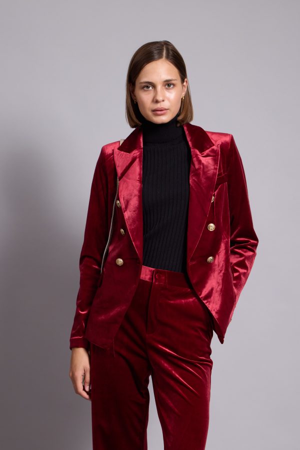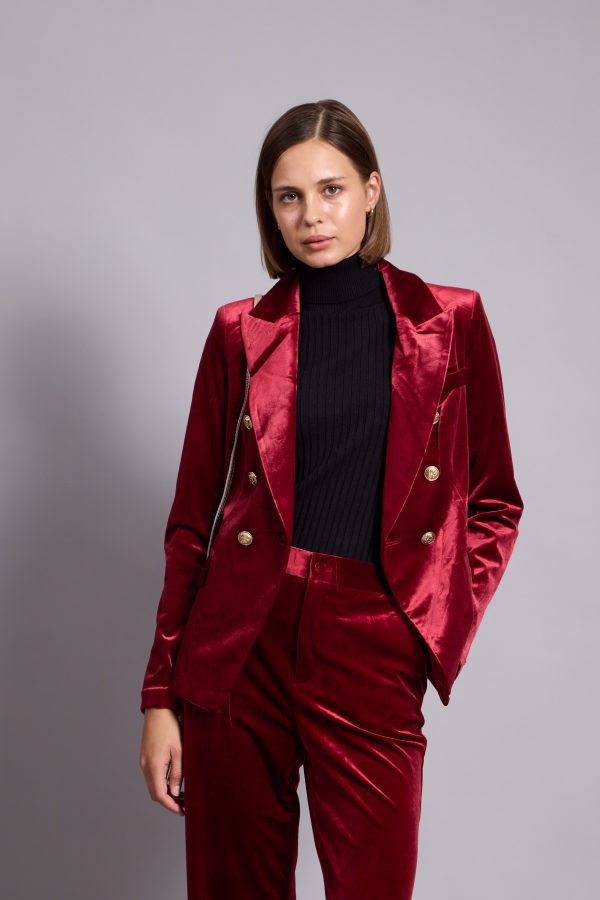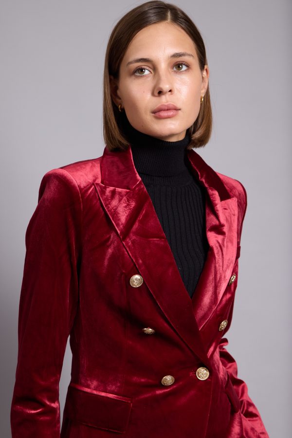 Anna-Velvet Blazer In Red