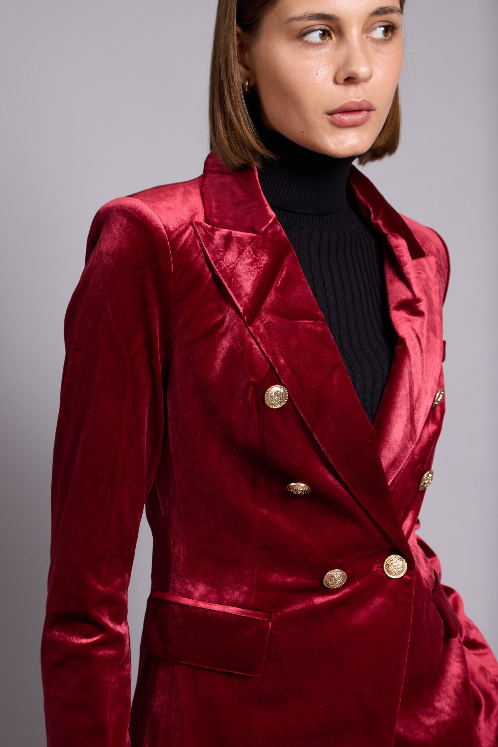 When it comes to elegant, refined tailoring with a distinct ’70s feel this ‘Anna’ blazer is the perfect example. There’s something about velvet that feels so elegant .Cut from lush velvet, it has face-framing peak lapels , gold crested buttons through the double-breasted front and a smooth satin lining. Wear yours with the coordinating  pants.
