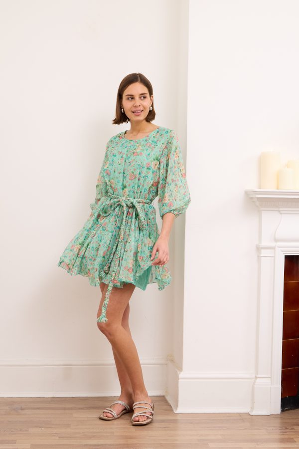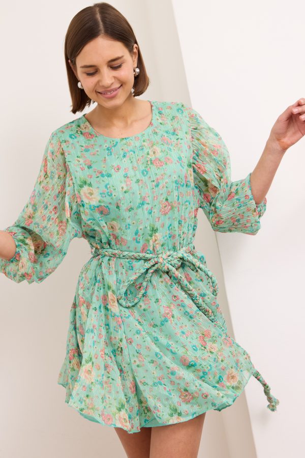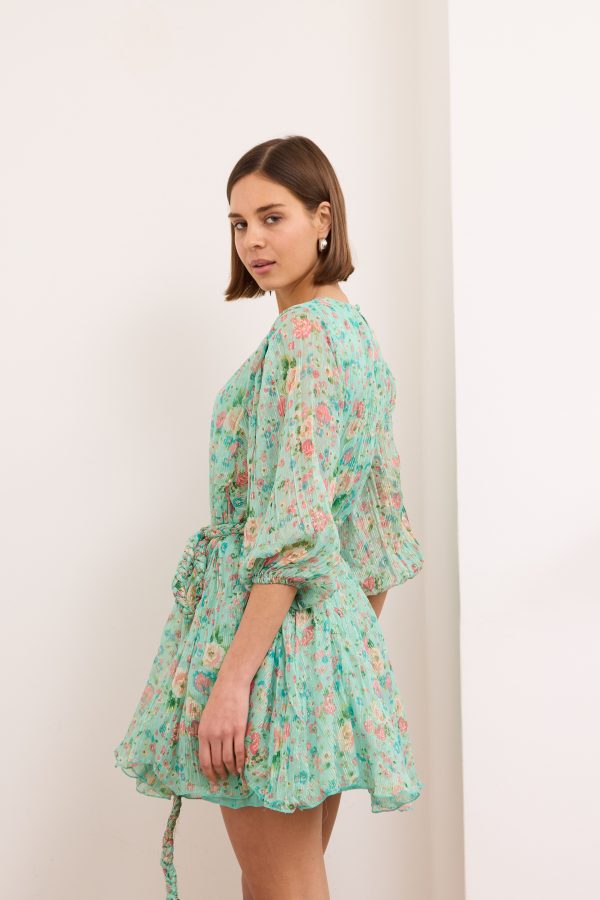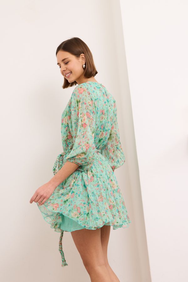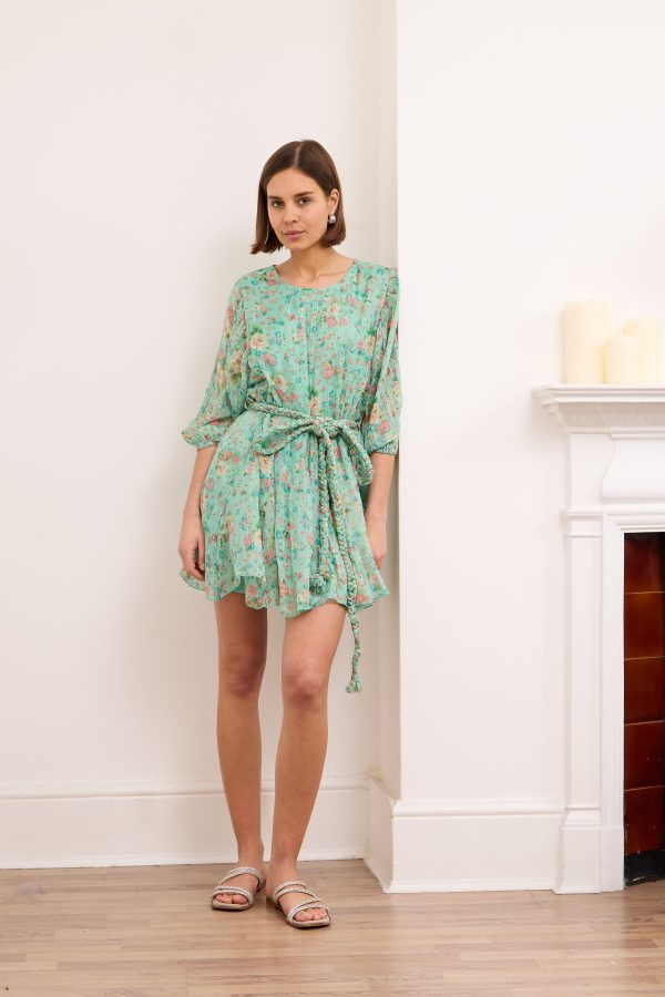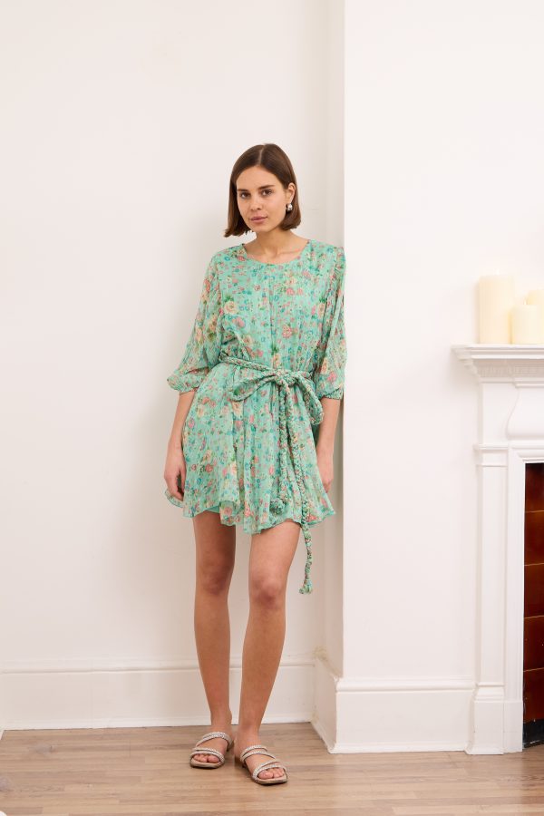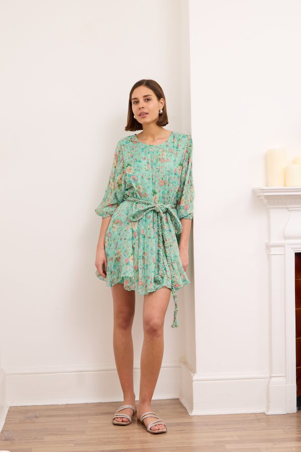 Britney- Tiered Floral Mini Dress in Turquoise