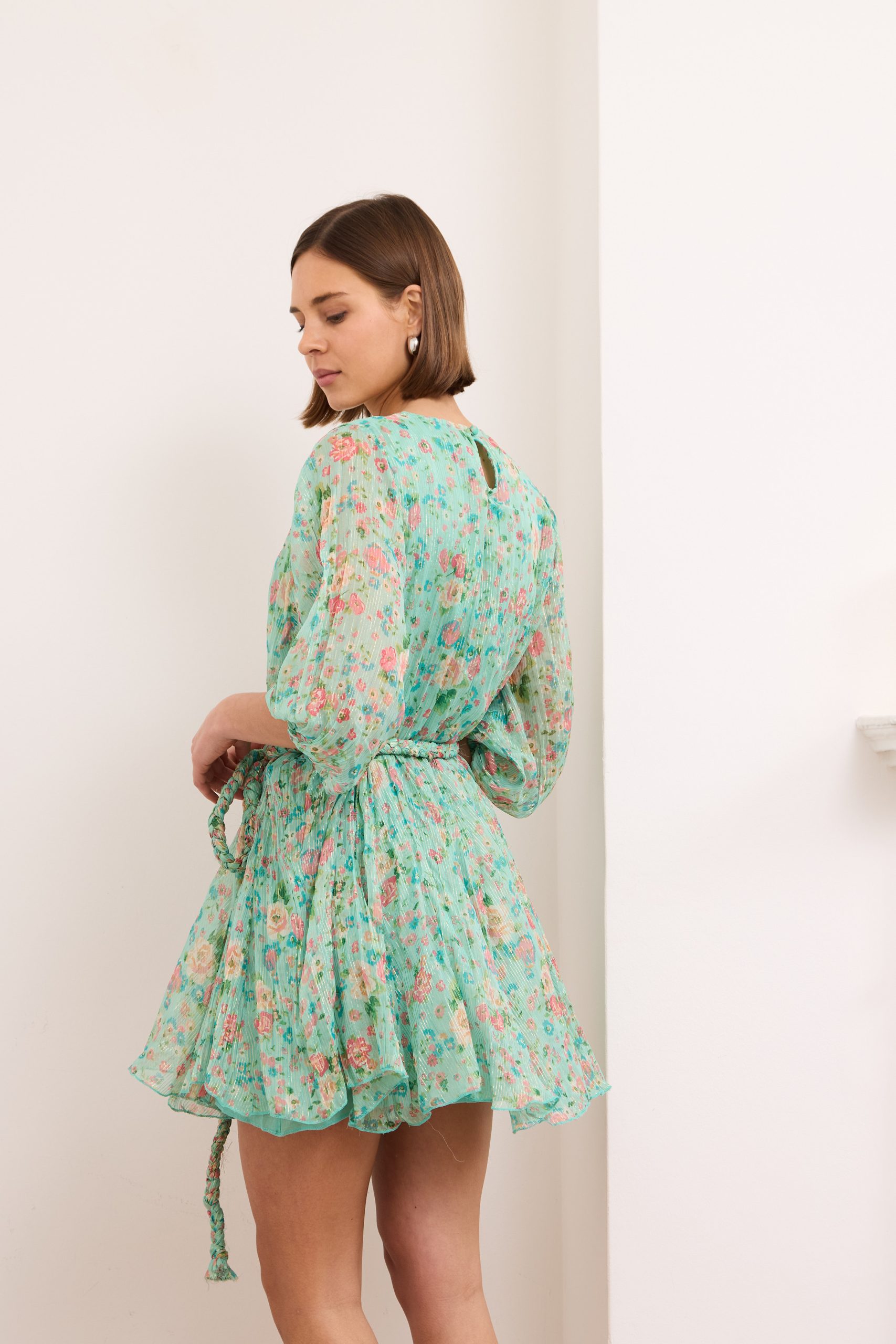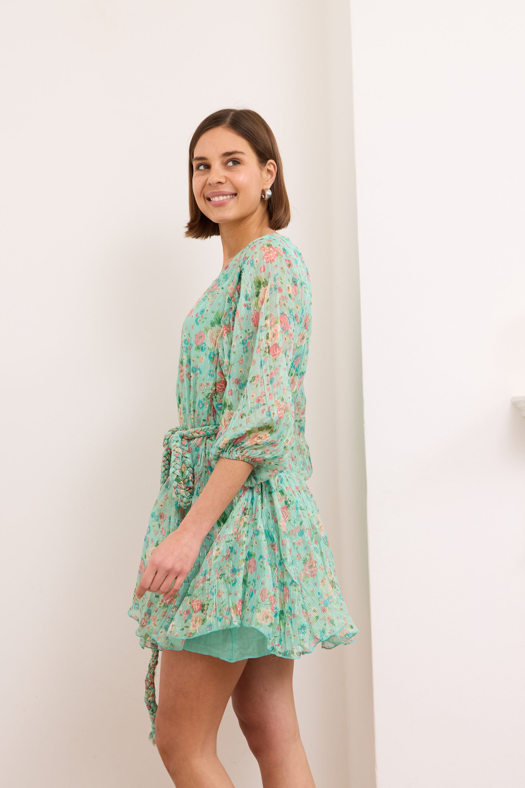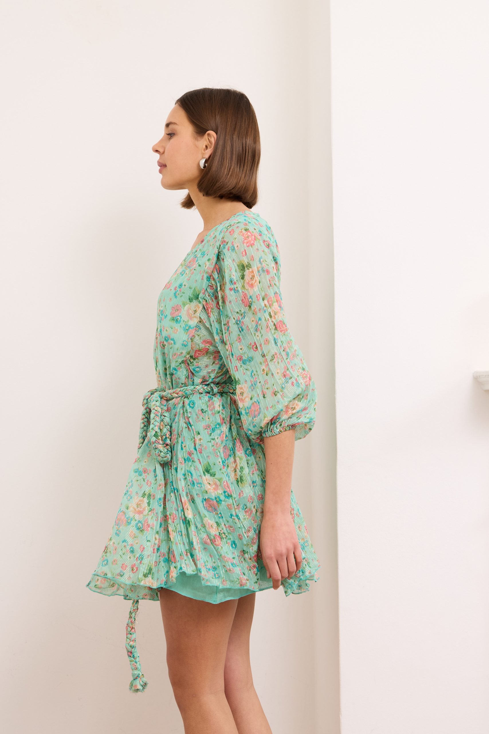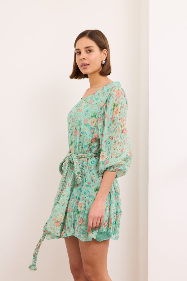 Britney- Tiered Floral Mini Dress in Turquoise