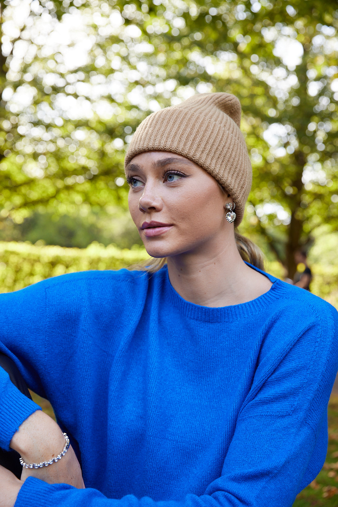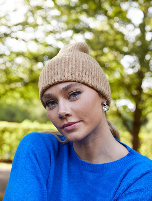Brooke beanie is made from viscose that’s ribbed for a snug yet flexible fit and has  the rolled cuff.  It’s ribbed for a comfortably snug fit and has a wide fold-over brim. This shade ensures it’ll work with nearly any outerwear.