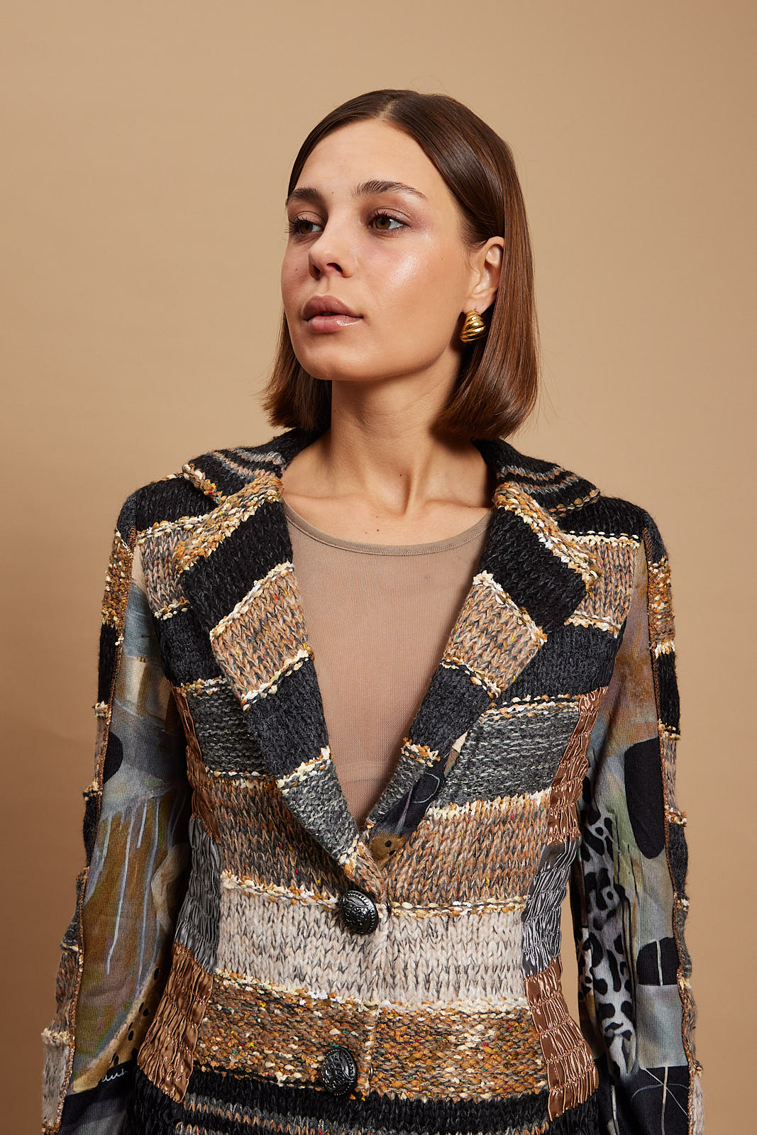 There’s something about jacquard-knit blazer that feels so elegant . It has face-framing peak lapels and a smooth satin lining. Wear yours with the coordinating pants. Wear it with an all-black outfit or denim pants.