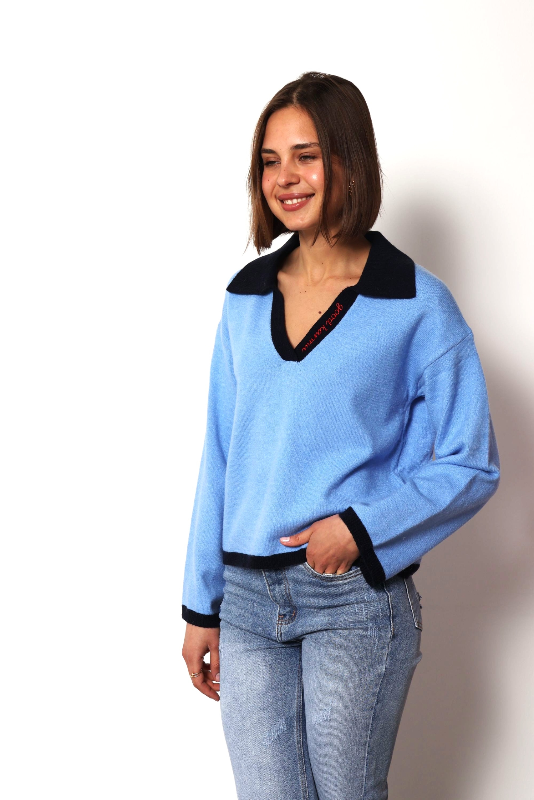 Playful yet polished, the Candy Jumper refreshes a relaxed silhouette with bold contrast trim and a structured collar. The premium blend of viscose, polyamide, wool, and cashmere creates a soft hand feel with lightweight warmth and lasting comfort. Designed to stand out while remaining easy to style, it’s the perfect statement knit for elevated casual dressing.