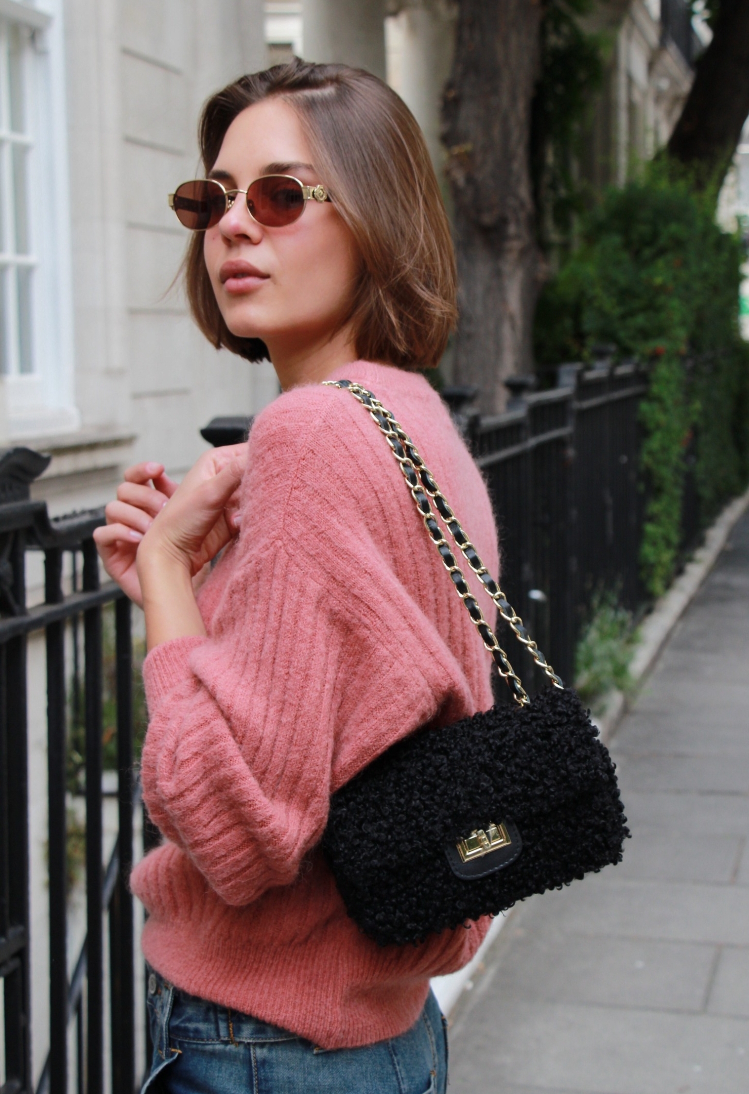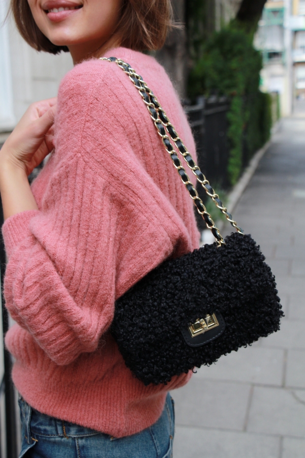Candy – crossbody boucle chain bag in black