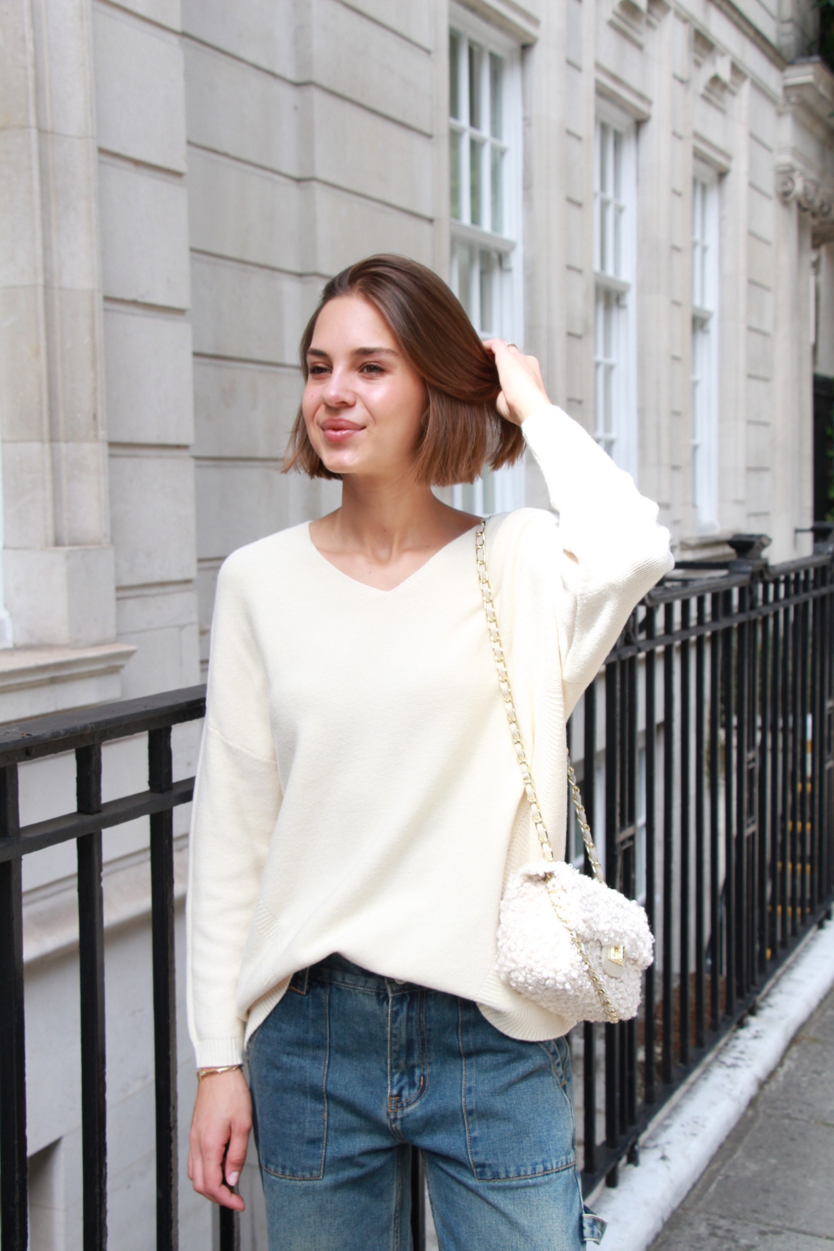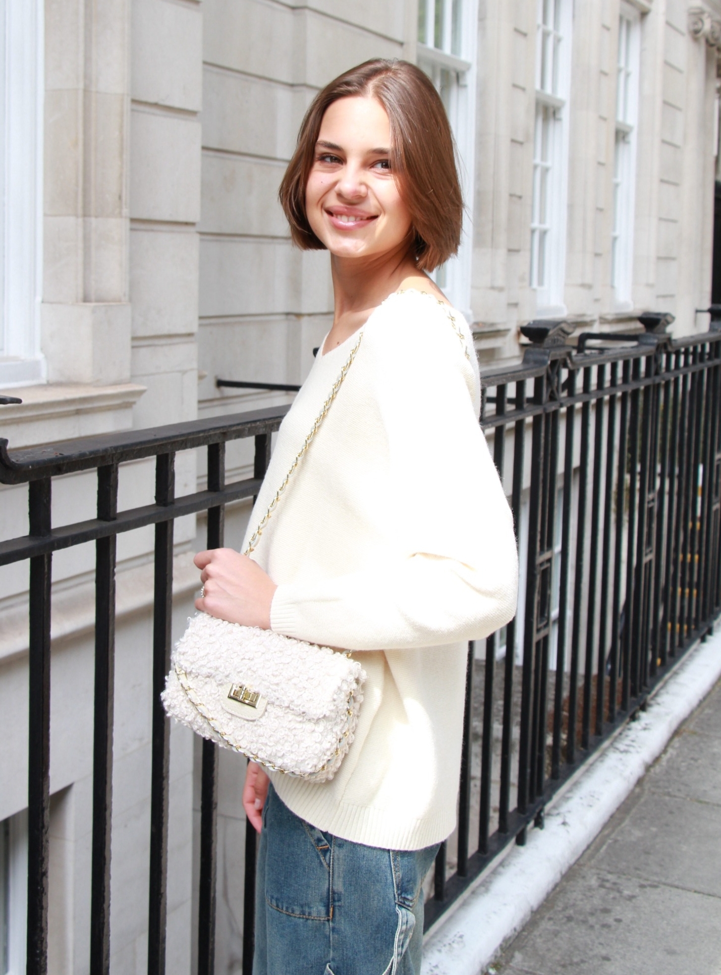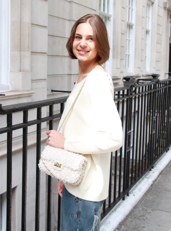Candy – crossbody boucle chain bag in cream