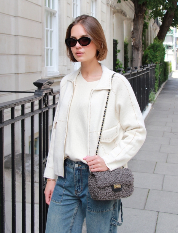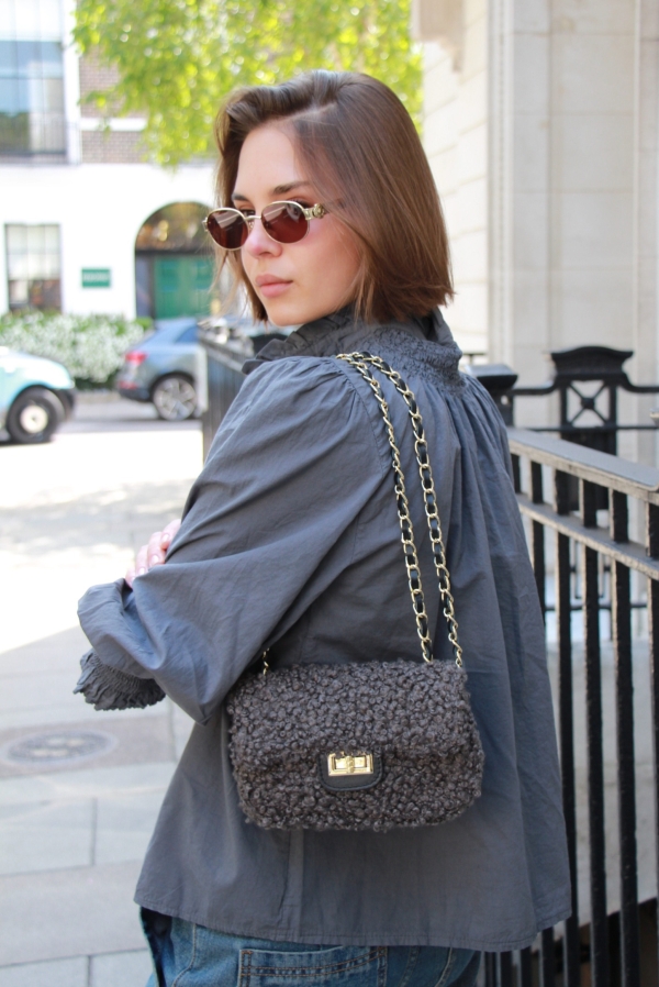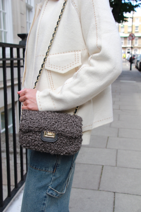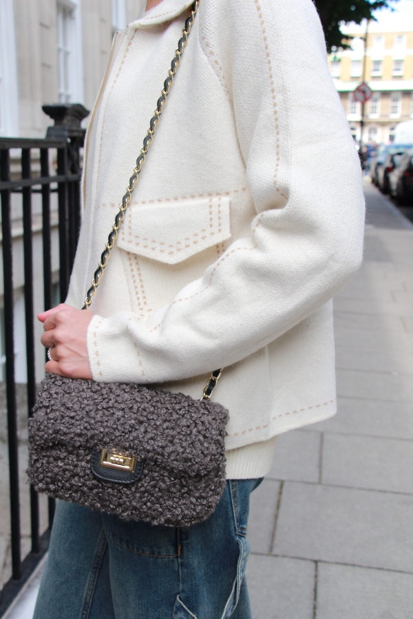 Candy boucle bag is made from textured-boucle , this style is compact enough to keep your everyday essentials organised. The Candy y bag is stylish addition to your wardrobe. It’s been made in Italy from boucle and decorated with the gold buckle and a long strap that can be doubled up for a shorter drop. There’s a zipped pocket inside, which will keep your apartment key and lipstick from floating around.