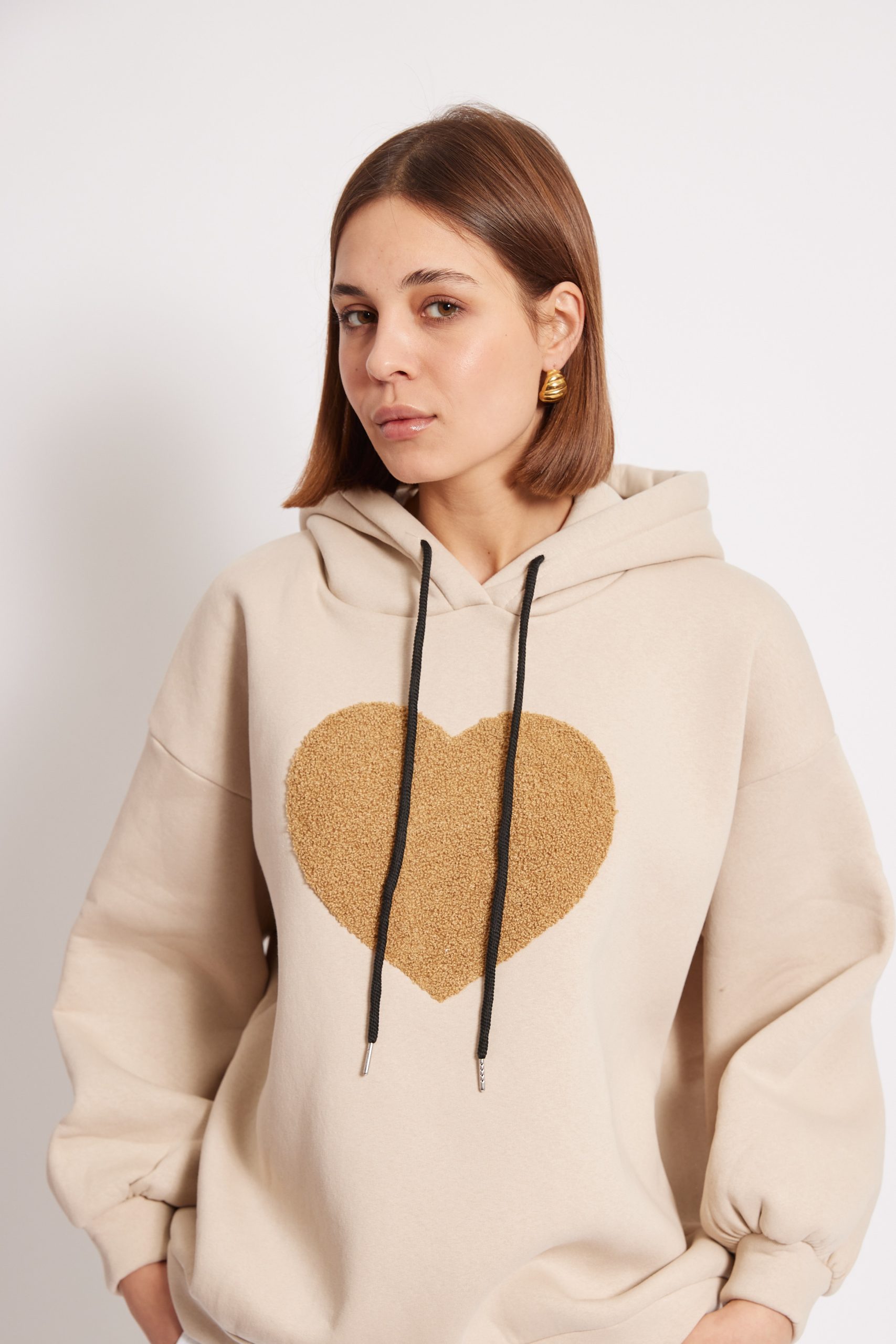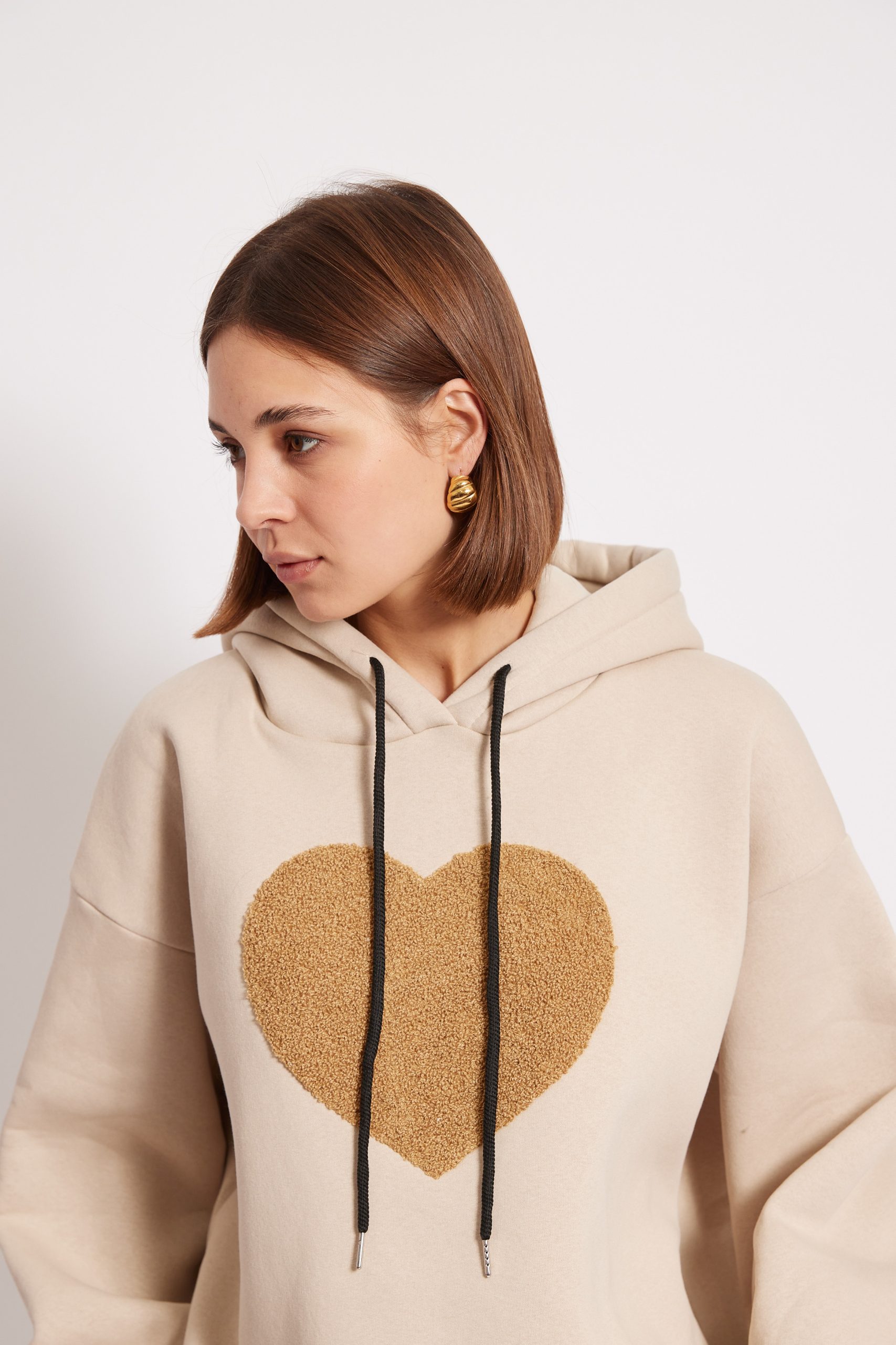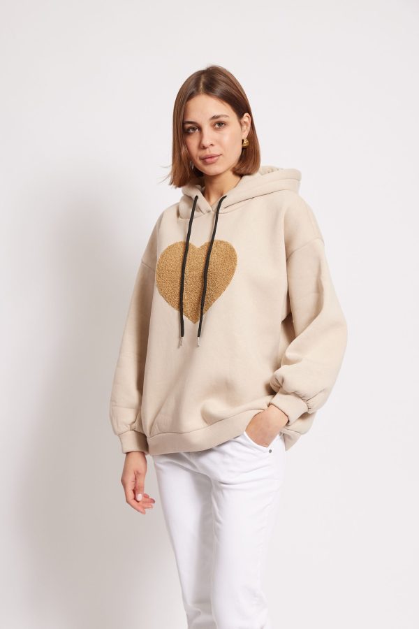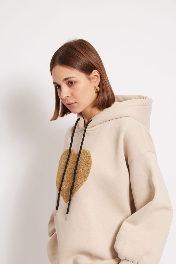 Candy hoodie sweatshirt is made from soft fleece-back cotton-blend jersey and appliquéd with a layered heart  across the front. It’s designed for an oversized fit emphasized by dropped shoulders seams.