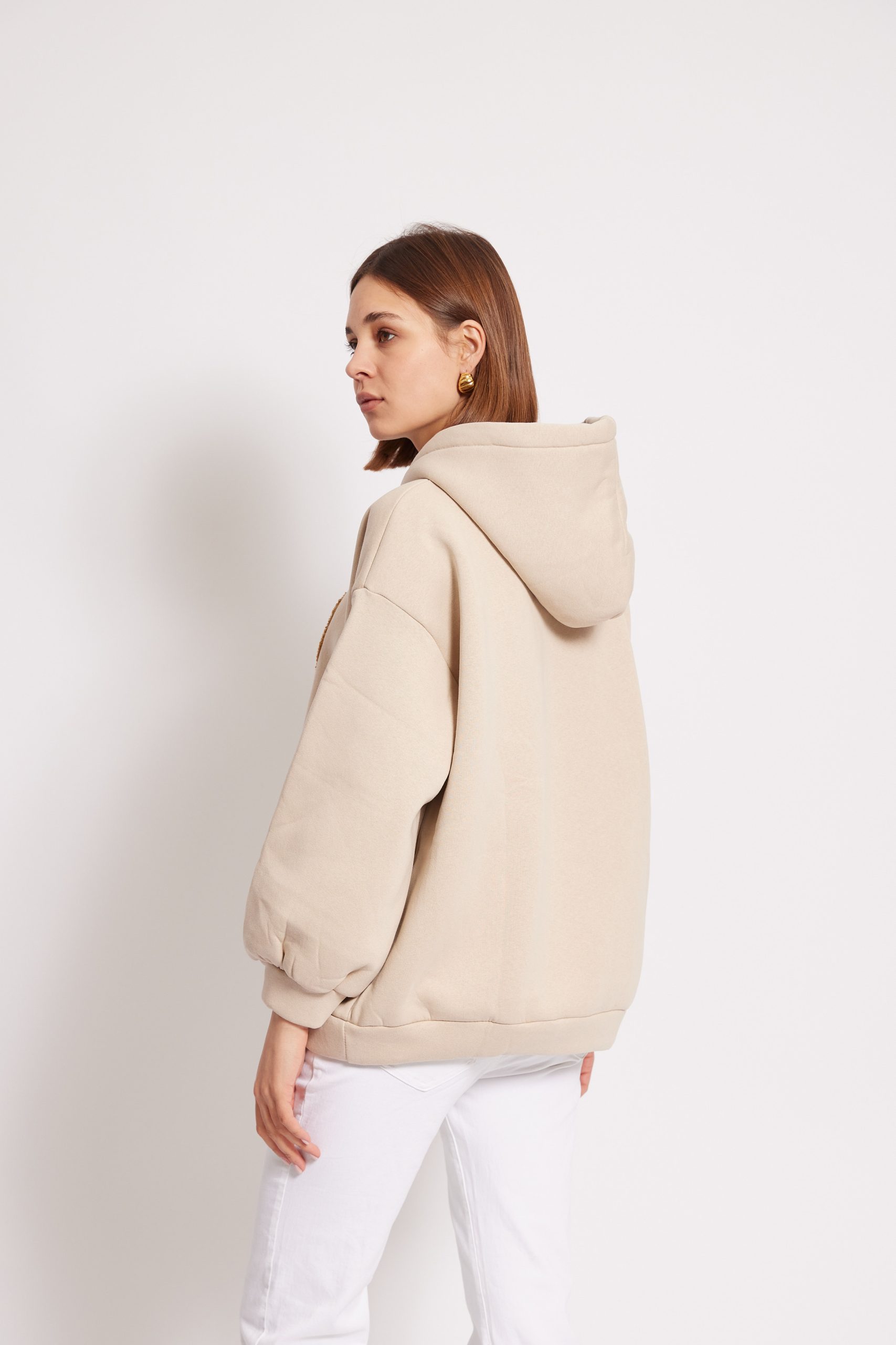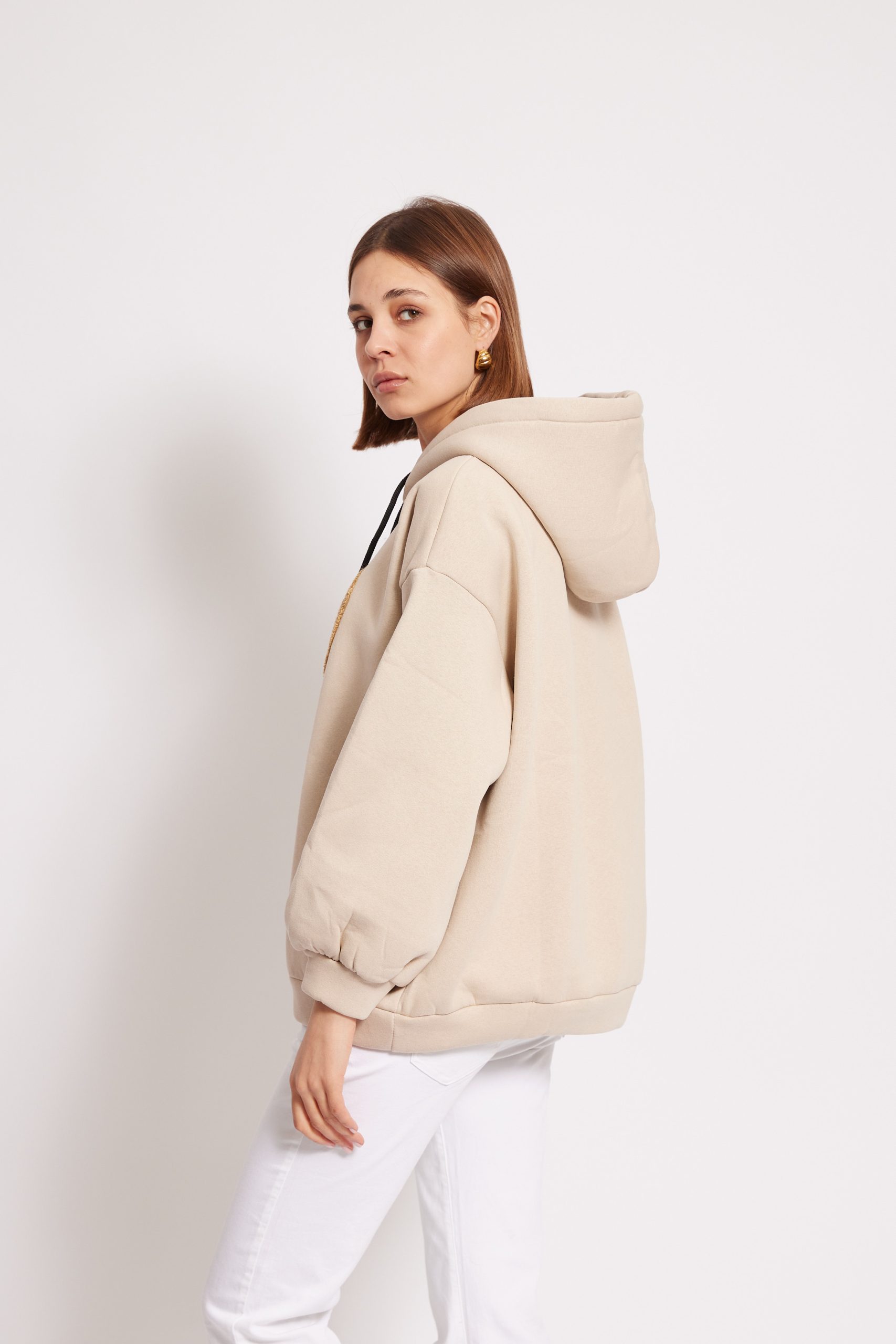 Candy- oversized appliquéd cotton-blend jersey hoodie in neutral and beige