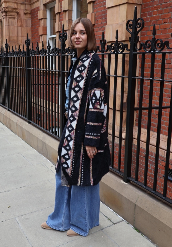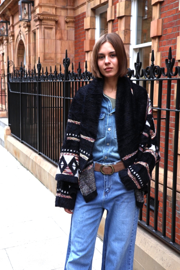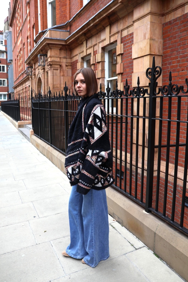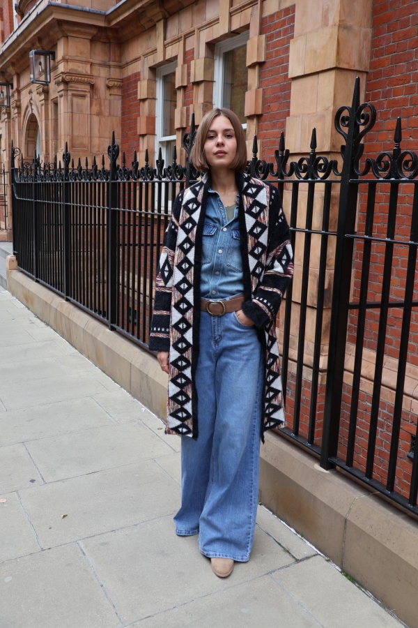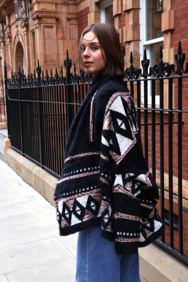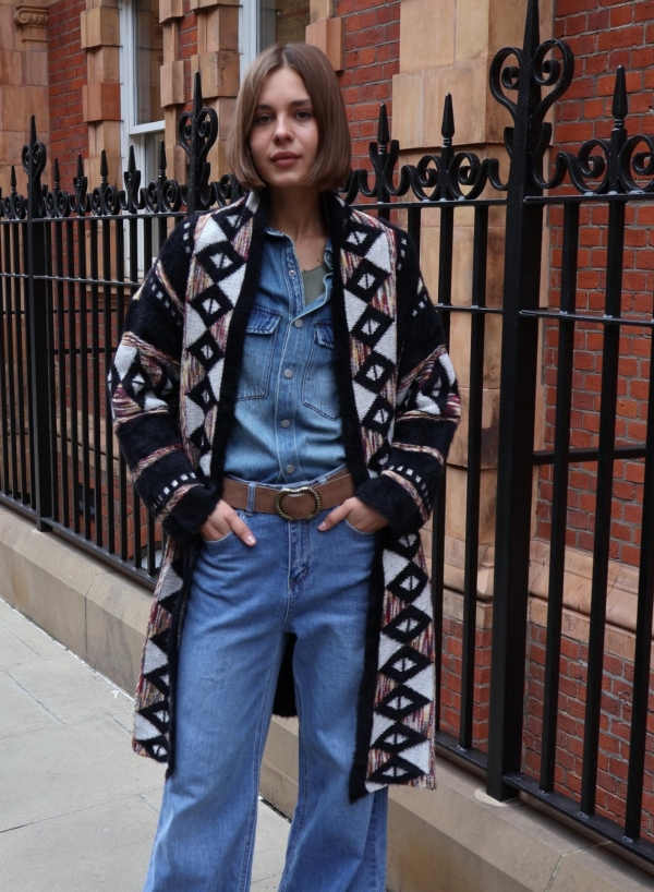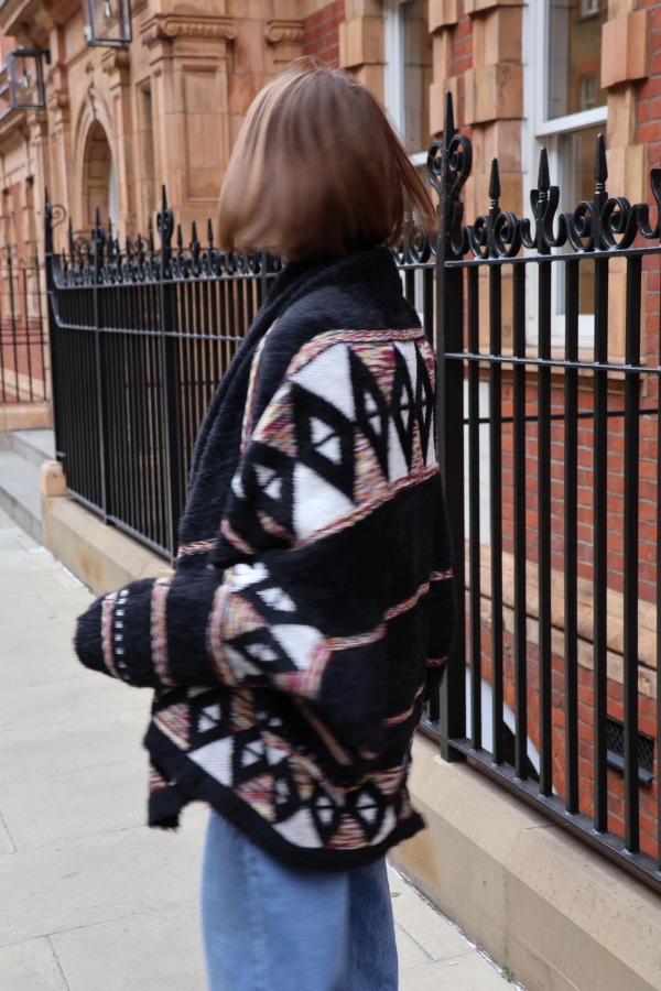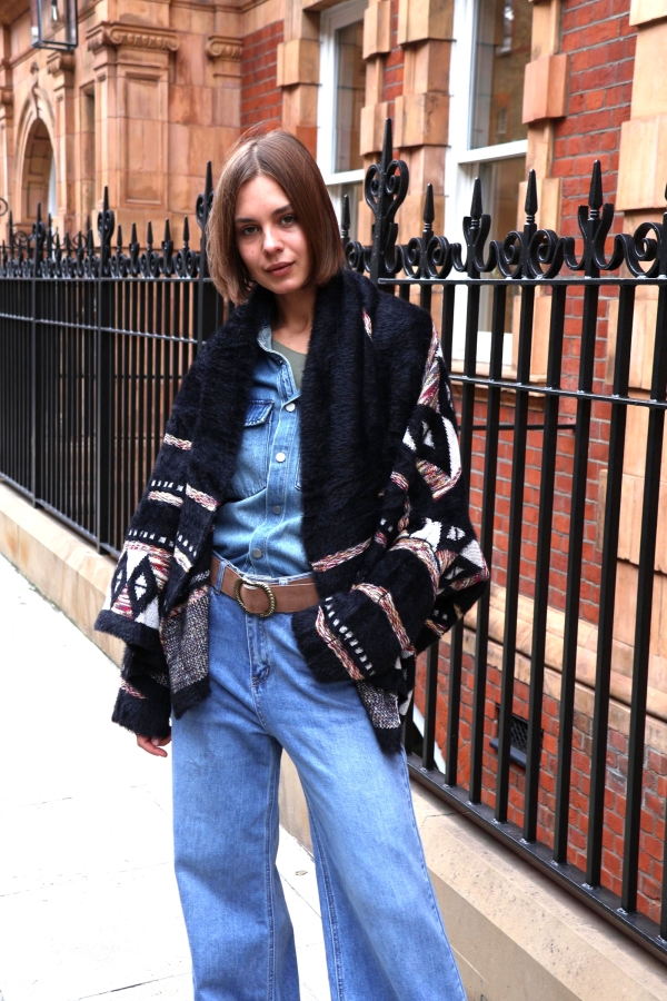 This jacquard cardigan redefines versatility — wear it as a cosy cardigan or as a chic bolero-style cover-up. Crafted from soft jacquard knit with intricate detailing, it’s the perfect statement layer for both everyday wear and special occasions.  No cold-weather wardrobe would be complete without a cosy Fair Isle cardigan. Made from sumptuous wool. Wear yours with jeans or a pleated skirt. Jacquard cardigan are one of those pieces you turn to every season – they truly are timeless. Our version is jacquard-knitted from wool that’s brushed for added softness. It will keep you warm on chilly days.