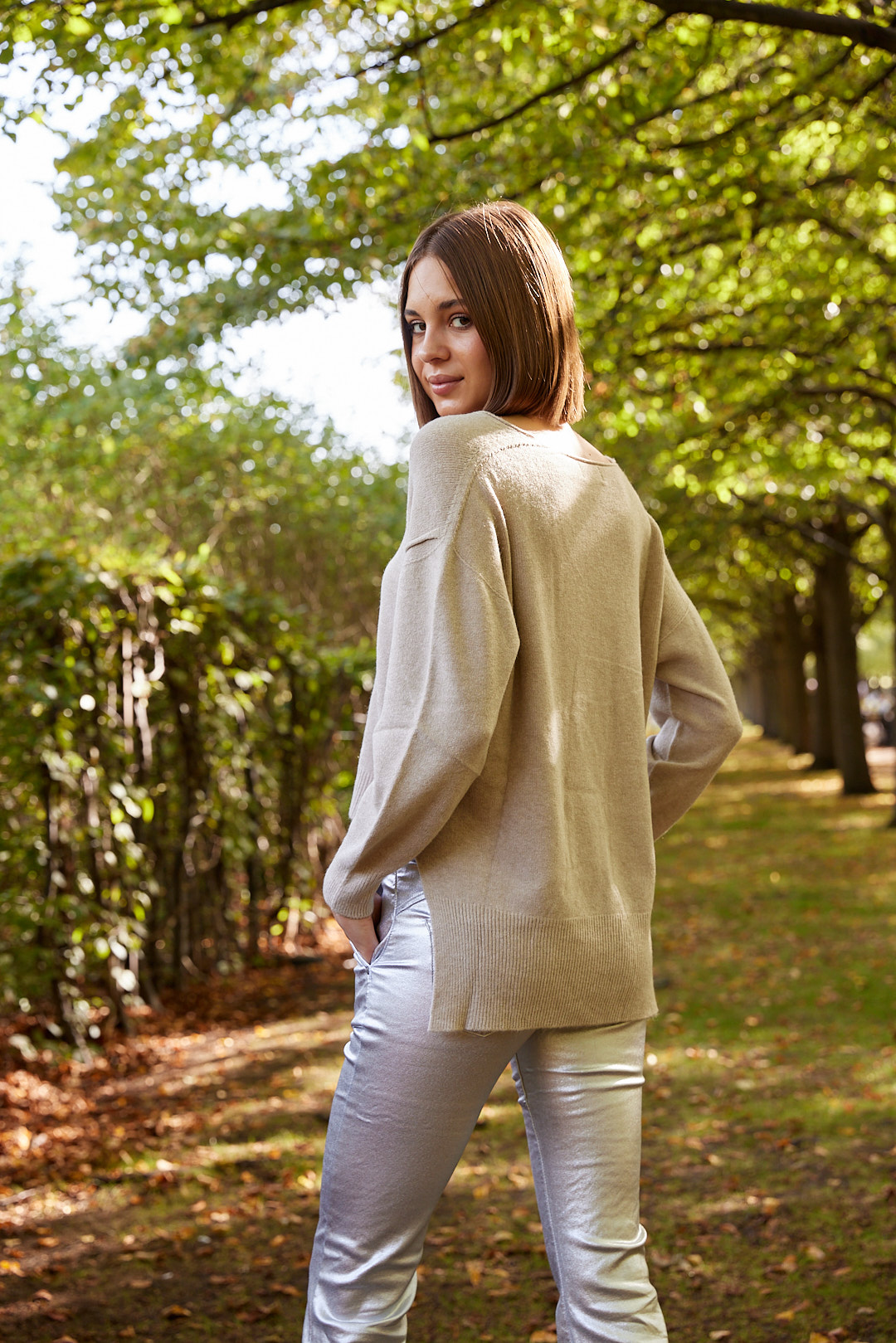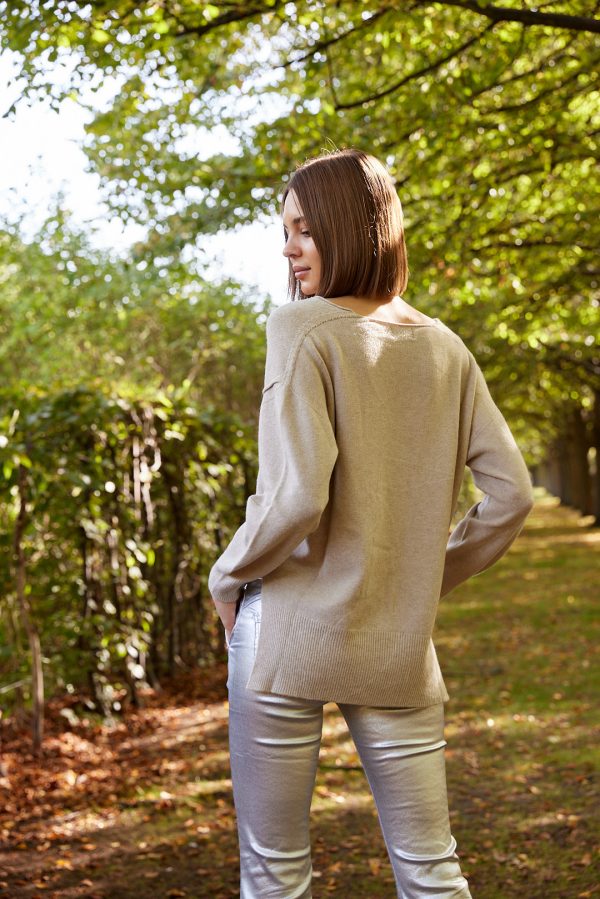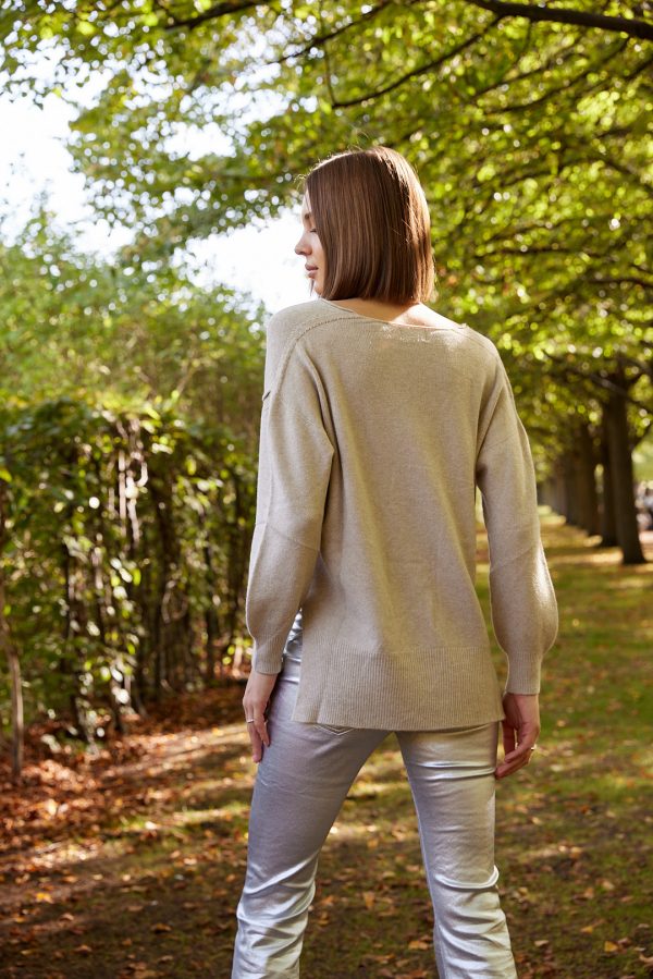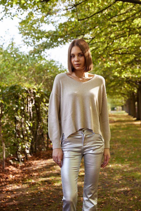 Celine sweater  is made from sumptuous viscose that has a substantial handle, so it’s equally warm, naturally breathable and soft. Its  hue is so colourful that you’ll be able to wear it whatever the season. It’s loosely defined by ribbed trims and has a flattering V-neckline. Designed in a relaxed fit enhanced by dropped shoulders . Switch between styling it with cropped jeans, slouchy tailoring and tulle skirts.