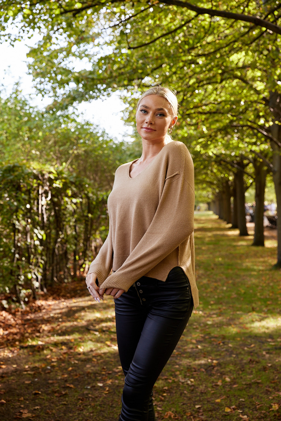 Celine sweater  is made from sumptuous viscose that has a substantial handle, so it’s equally warm, naturally breathable and soft. Its  hue is so colourful that you’ll be able to wear it whatever the season. It’s loosely defined by ribbed trims and has a flattering V-neckline. Designed in a relaxed fit enhanced by dropped shoulders . Switch between styling it with cropped jeans, slouchy tailoring and tulle skirts.