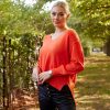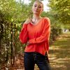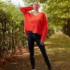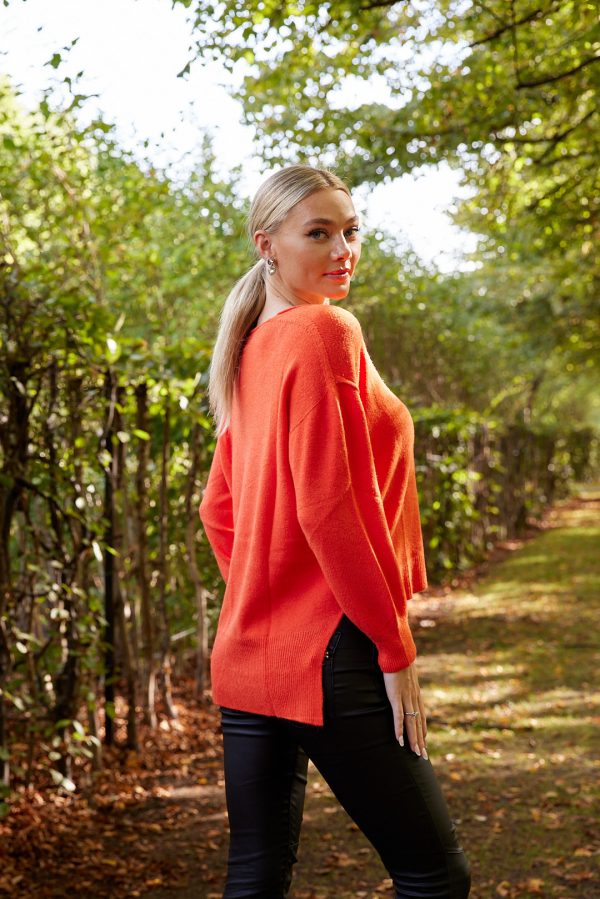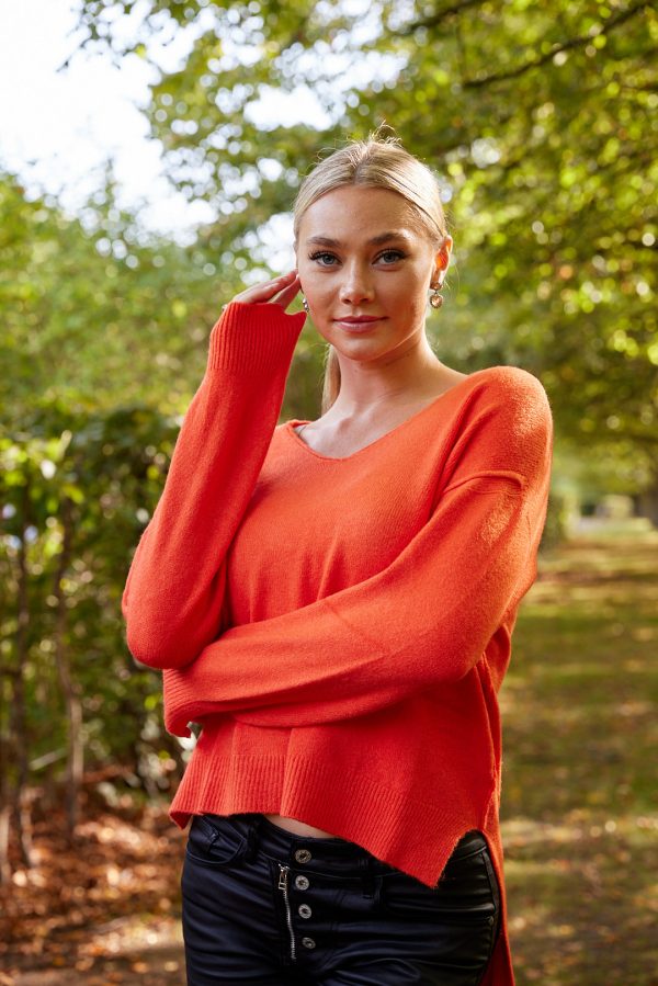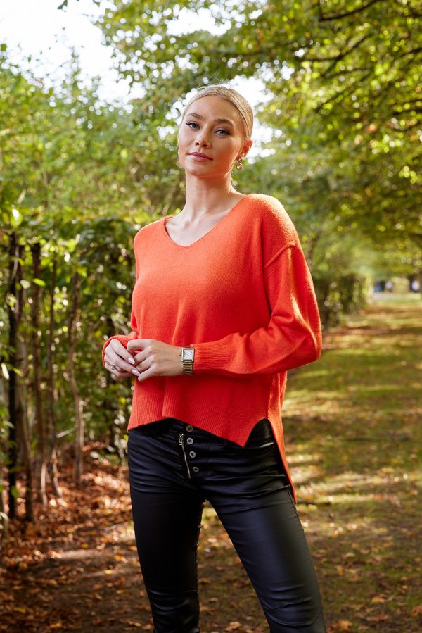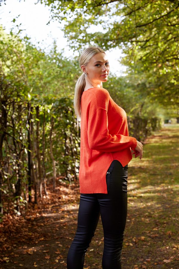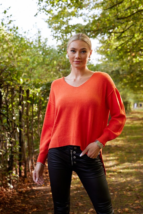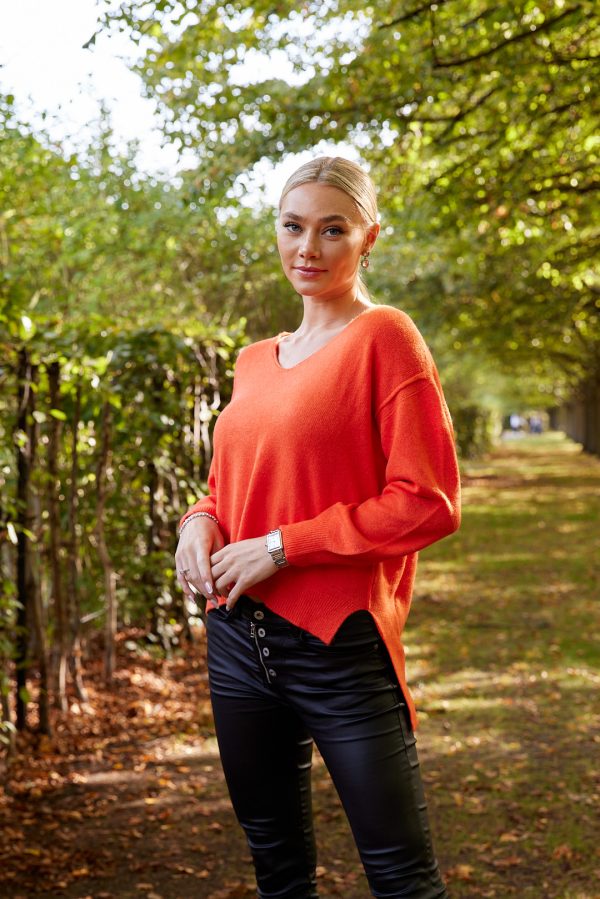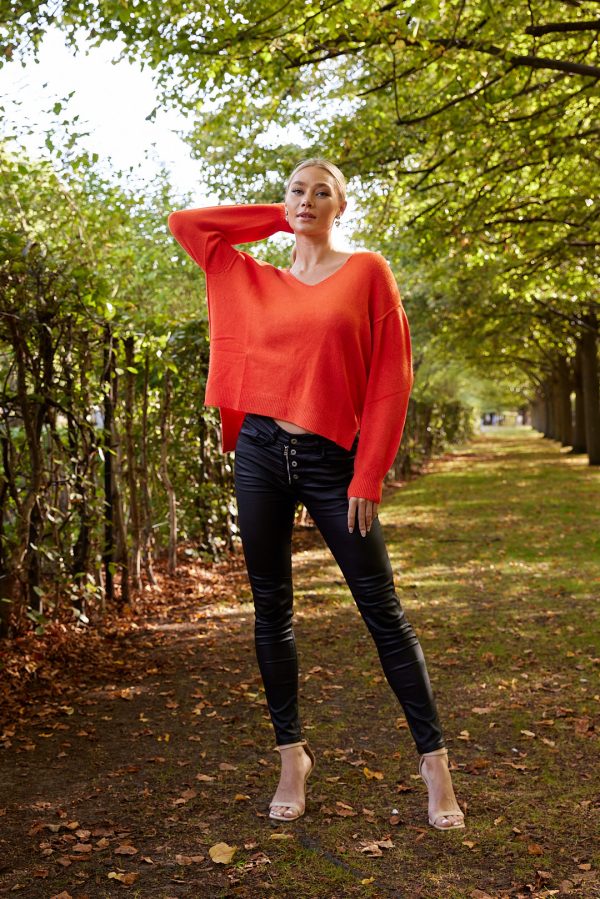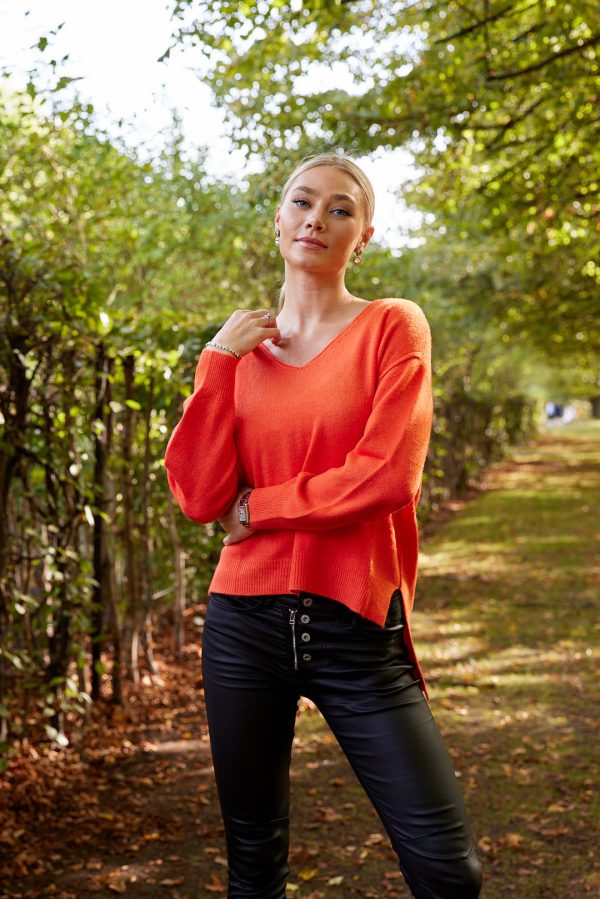 Celine sweater  is made from sumptuous viscose that has a substantial handle, so it’s equally warm, naturally breathable and soft. Its  hue is so colourful that you’ll be able to wear it whatever the season. It’s loosely defined by ribbed trims and has a flattering V-neckline. Designed in a relaxed fit enhanced by dropped shoulders . Switch between styling it with cropped jeans, slouchy tailoring and tulle skirts.