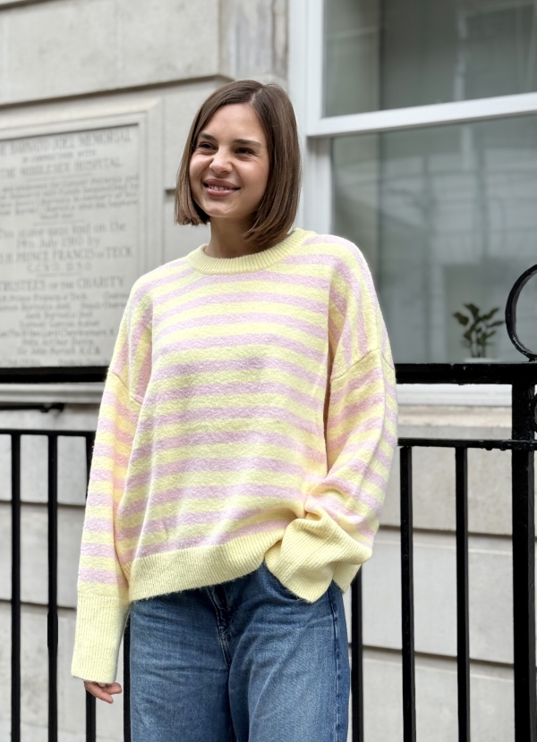 Charlie sweater makes day-to-day dressing simple and chic. Team yours with any wash of denim and minimalist sneakers. It’s spun from soft acrylic wool blend and has a relaxed silhouette defined by ribbed trims. The striped palette goes with just about anything.