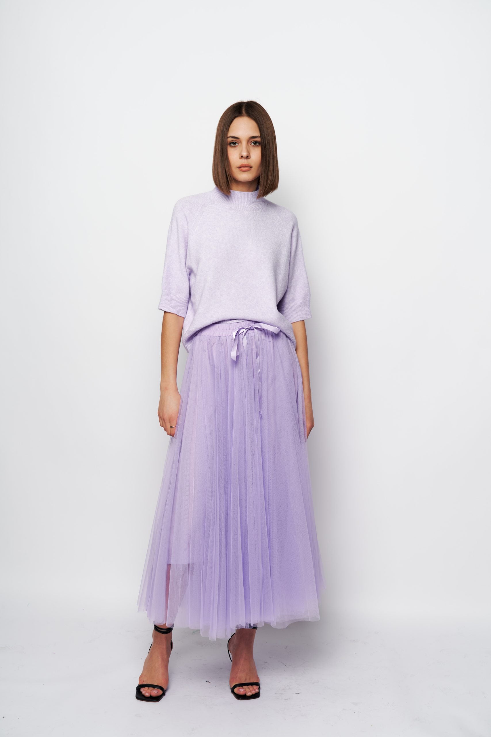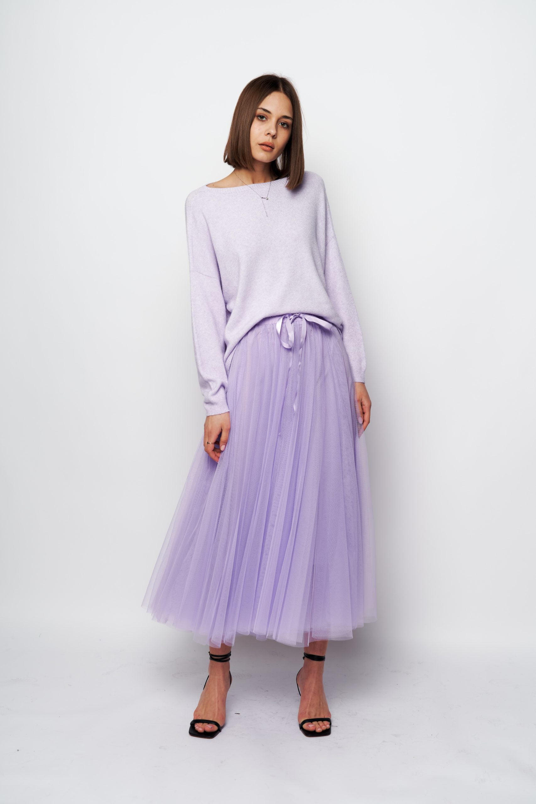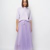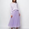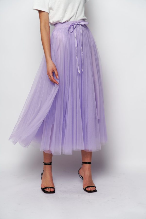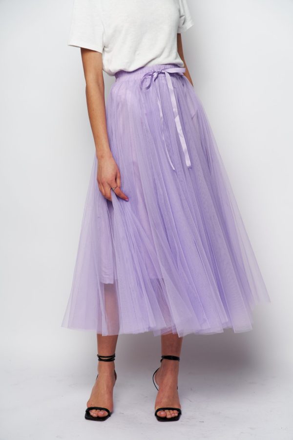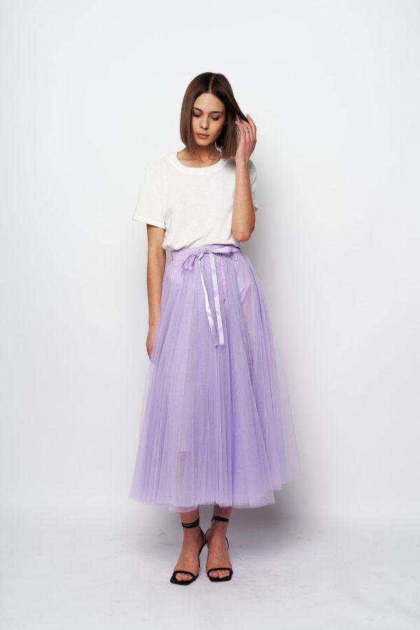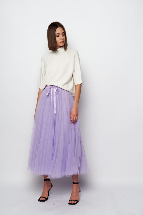 It’s crafted from layers of whisper-weight tulle . Style it with a sweater or blazer to heighten the poetic impression.