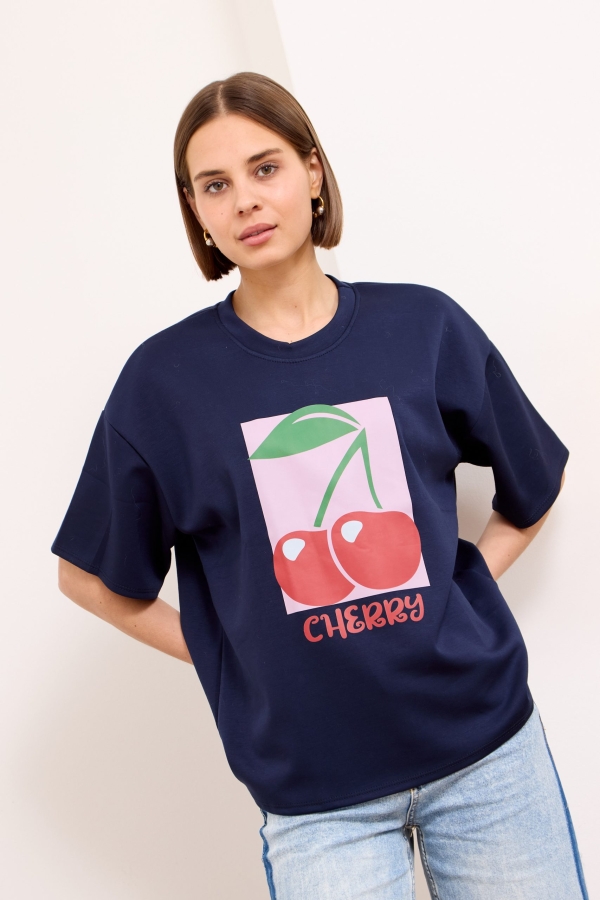 Cut  in a relaxed shape, this his T-shirt features a playful print, making it a particularly sweet choice for tropical getaways. It’s made from polyester -jersey for a slightly loose fit and has a classic crewneck. Wear yours with jeans or tuck it into a floaty midi skirt.