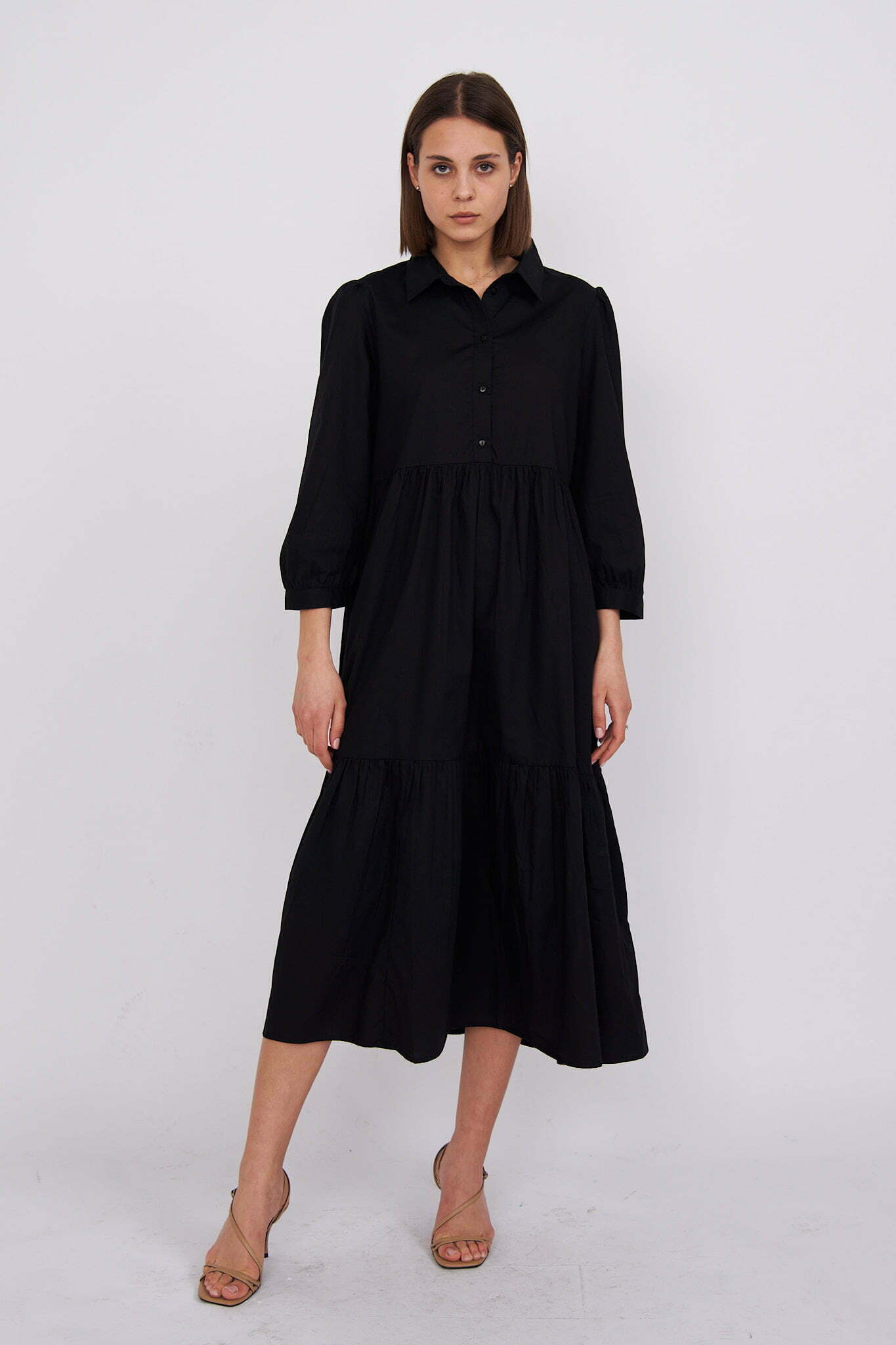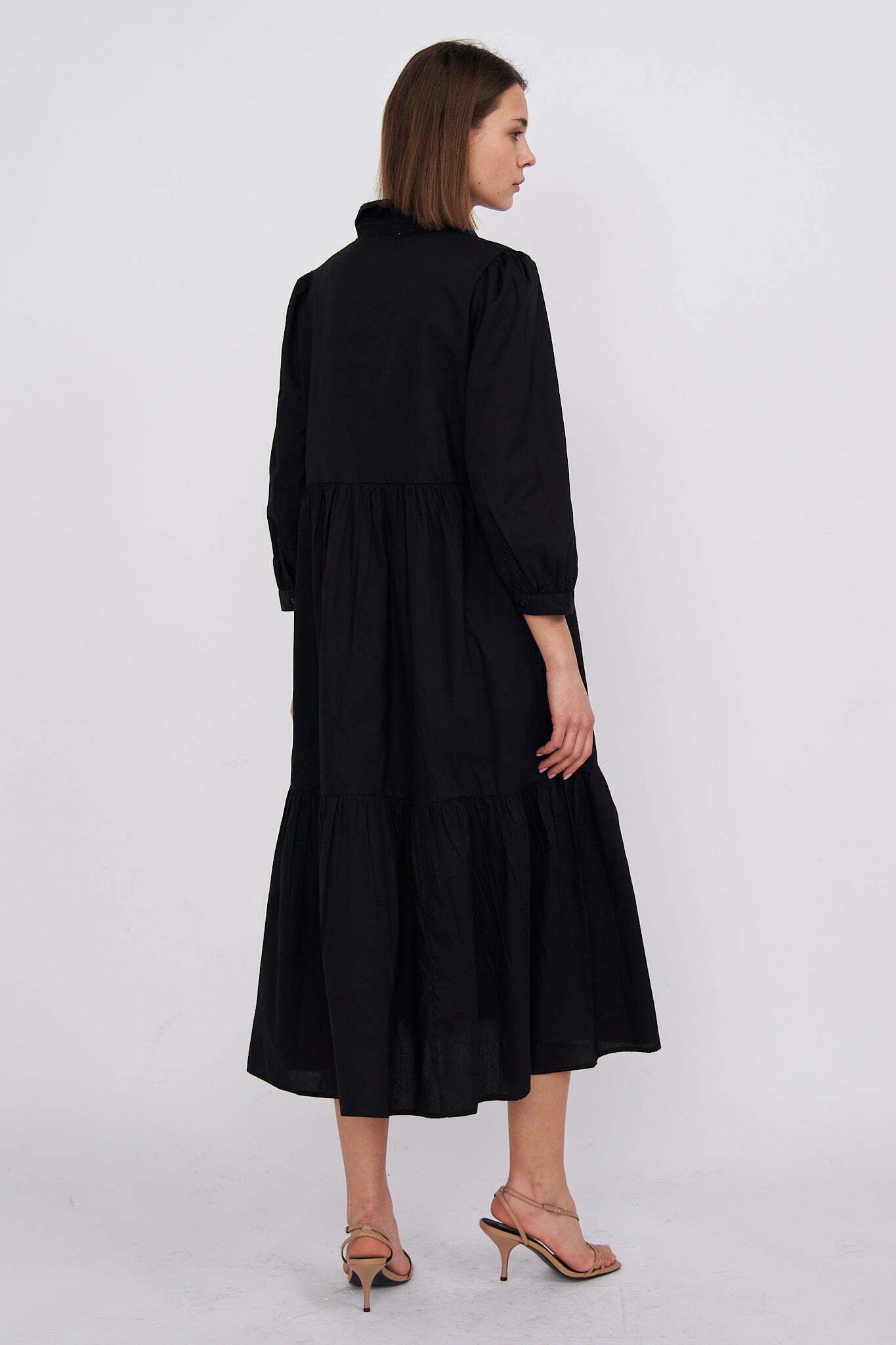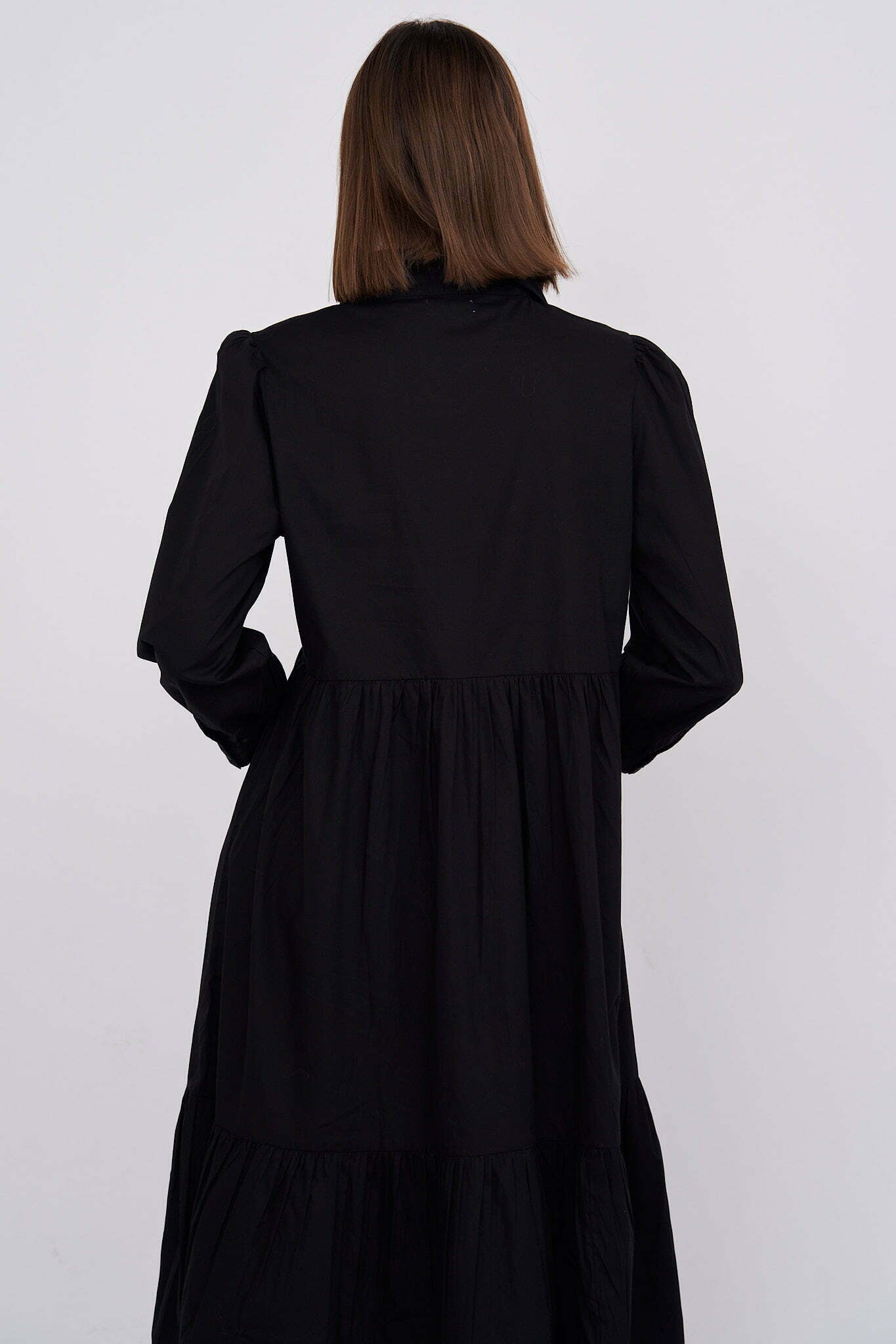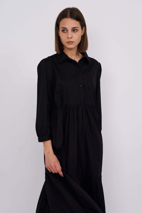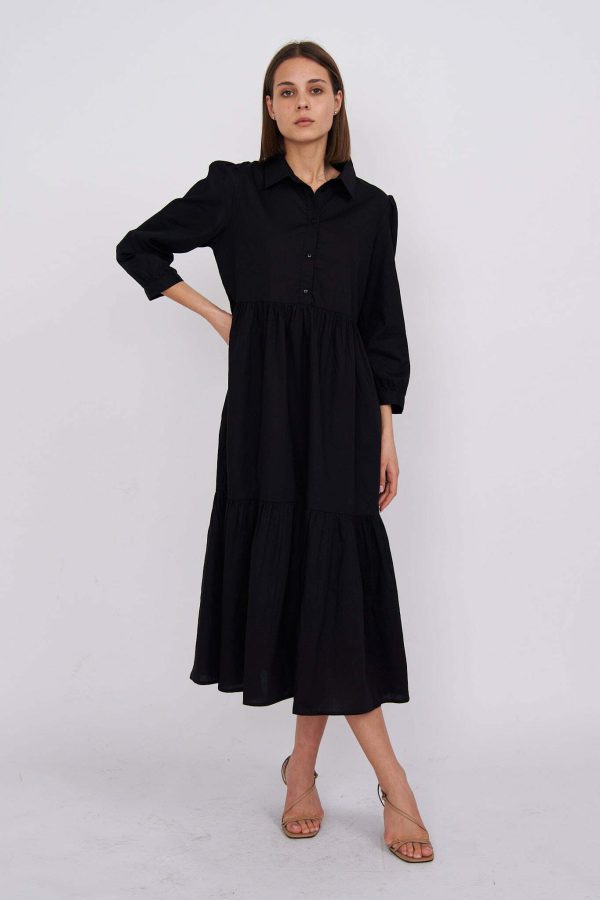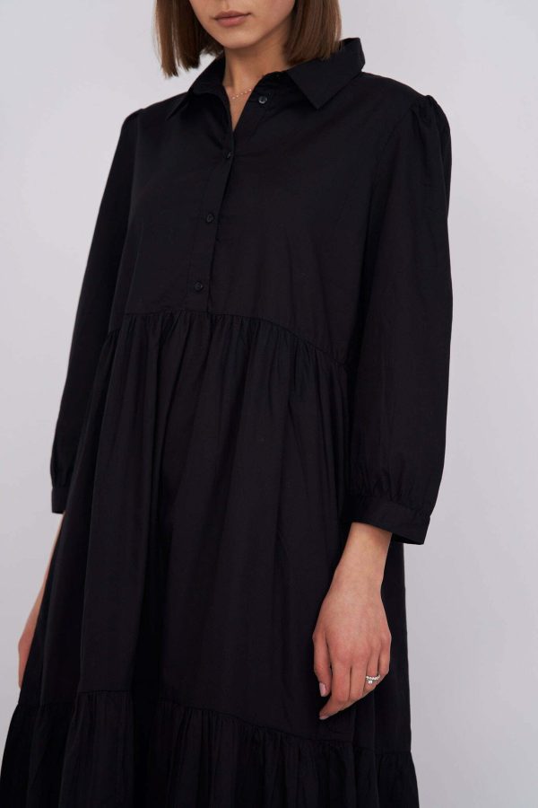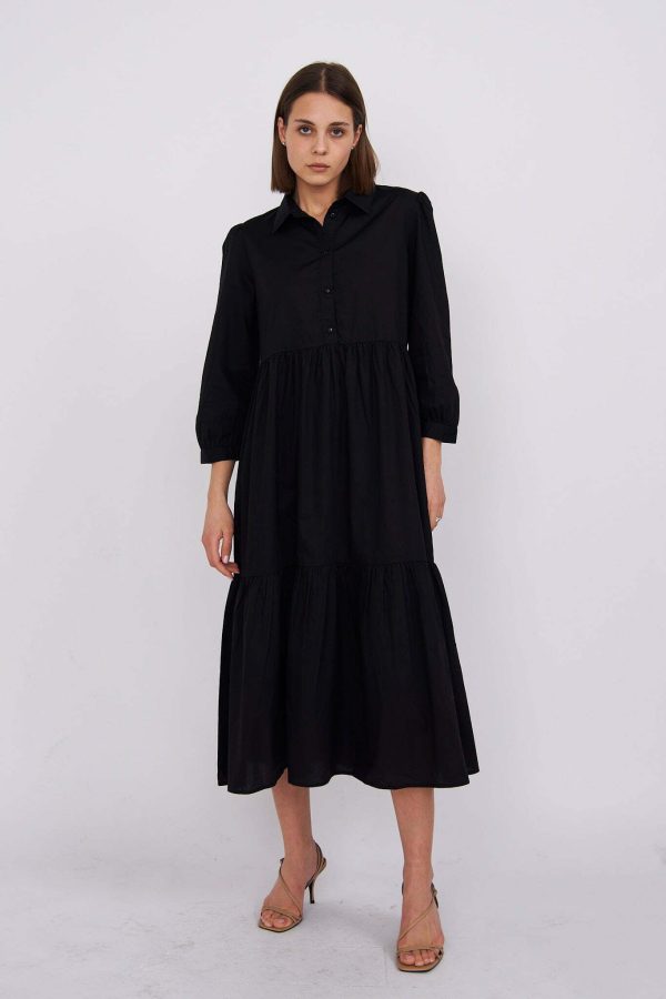 Chiara – tiered cotton midi shirt dress in black