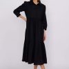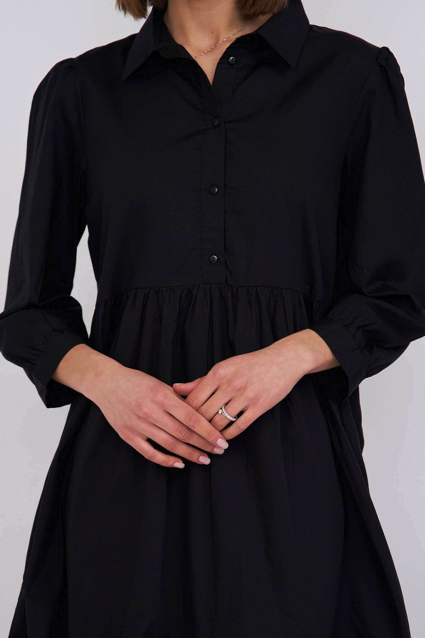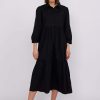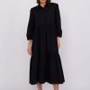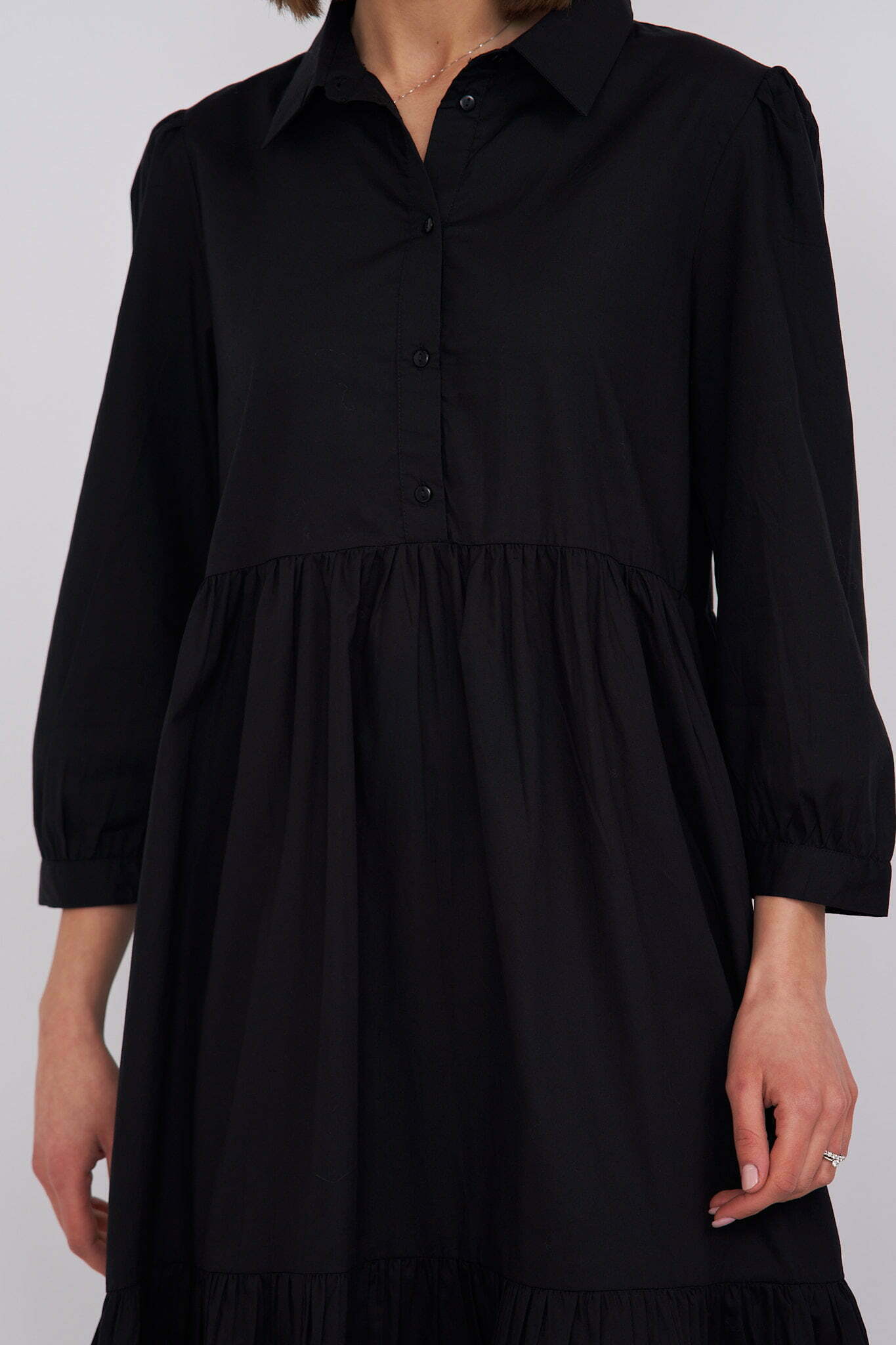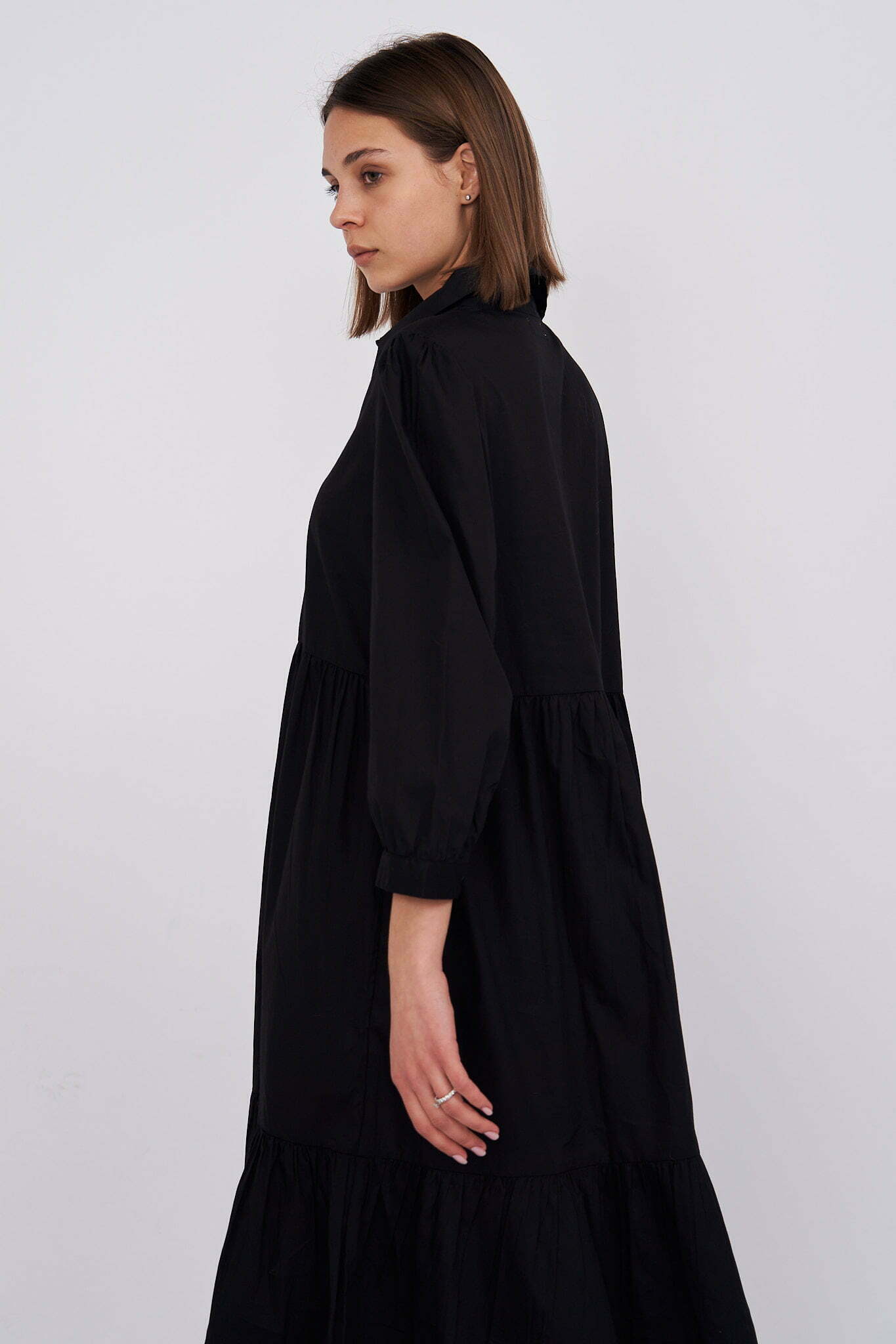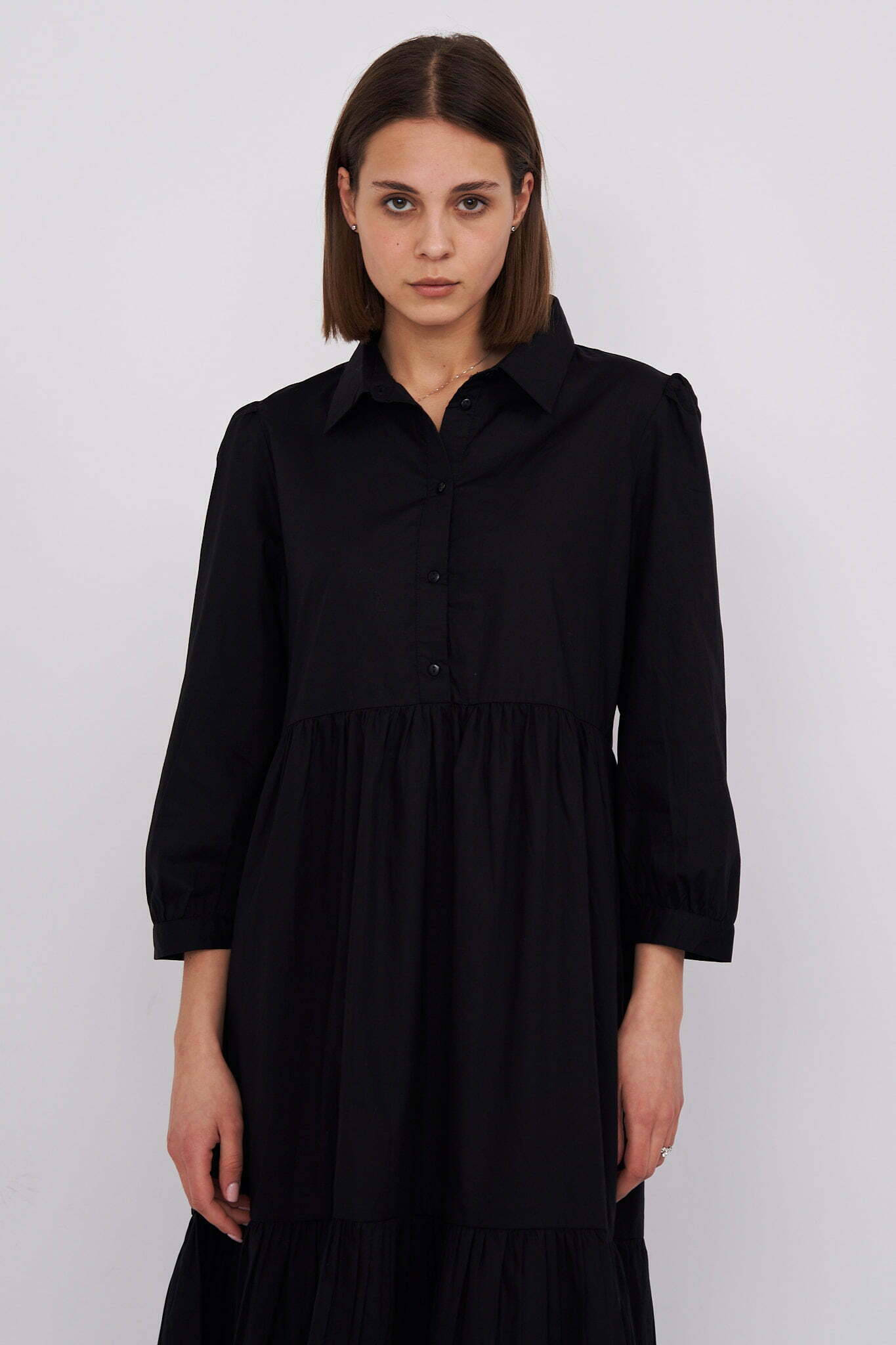Chiara – tiered cotton midi shirt dress in black