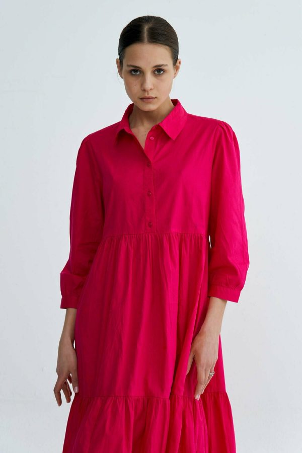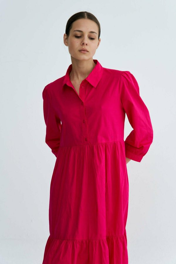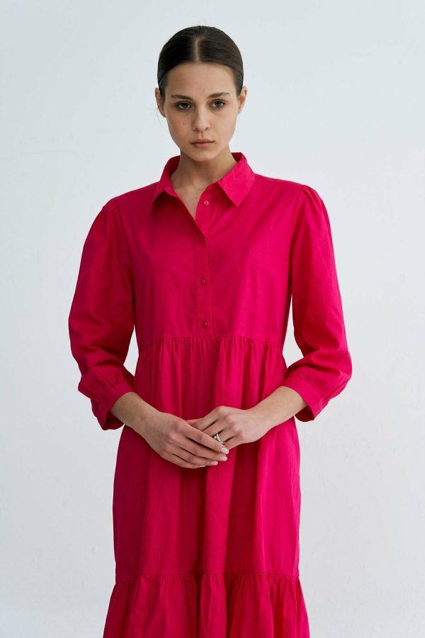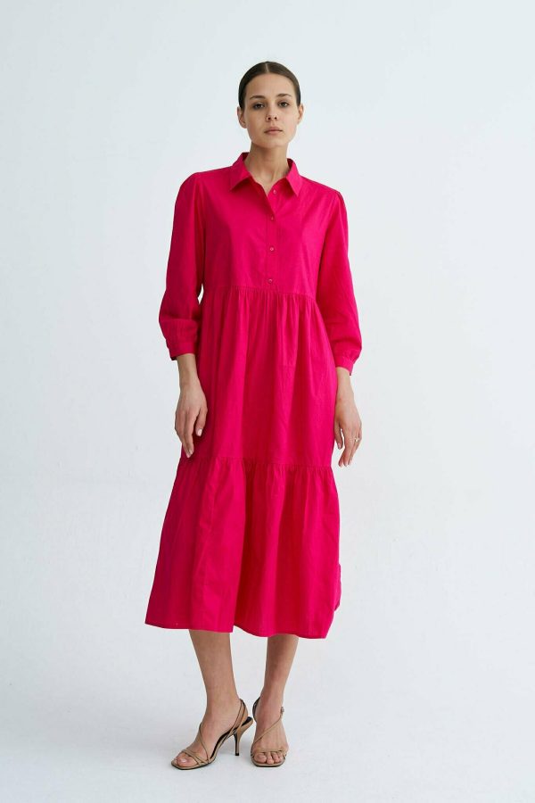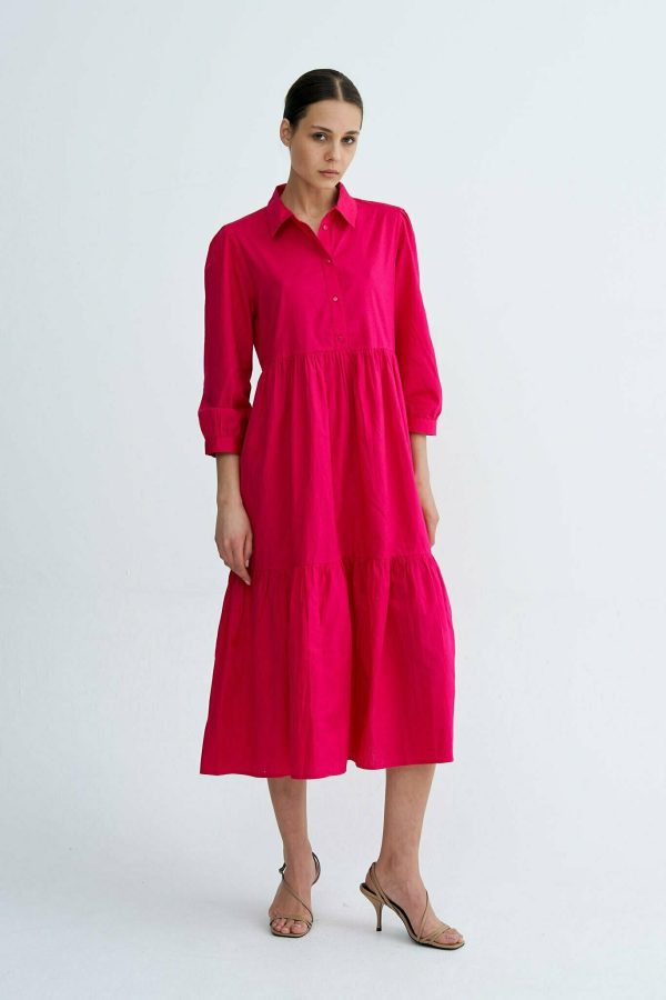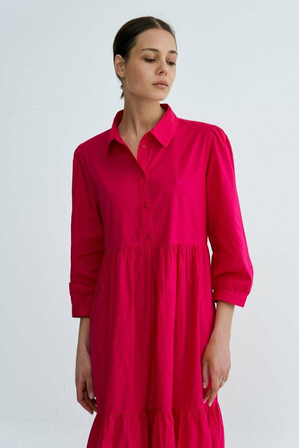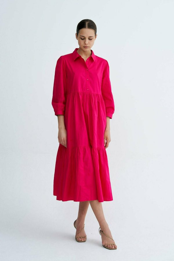 What we love most about shirt dresses is their versatility. This Chiara style is cut in a tiered silhouette from lightweight cotton  with artfully gathered pleats. The shirt-inspired collar and long sleeves mean it’s a year-round staple. Leave the first few buttons undone for a more relaxed take. The tiered hemline will move beautifully as you make your way across the room. Wear it with strappy sandals on spring walks.