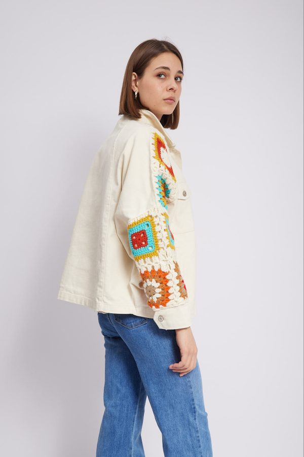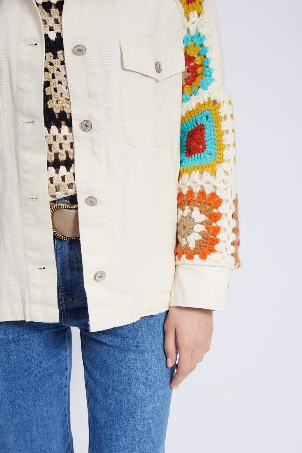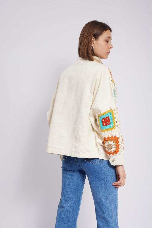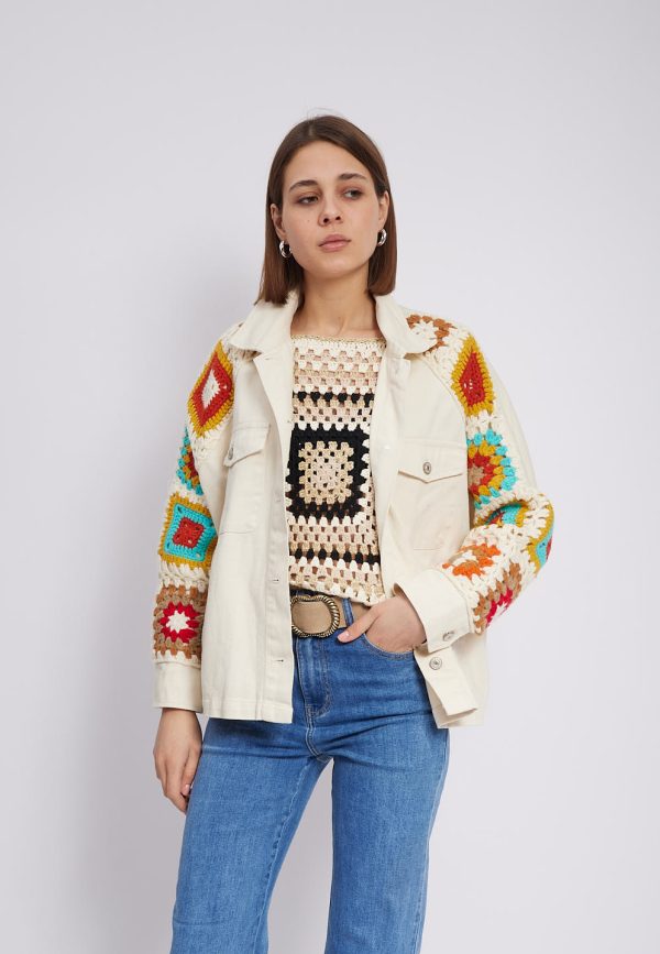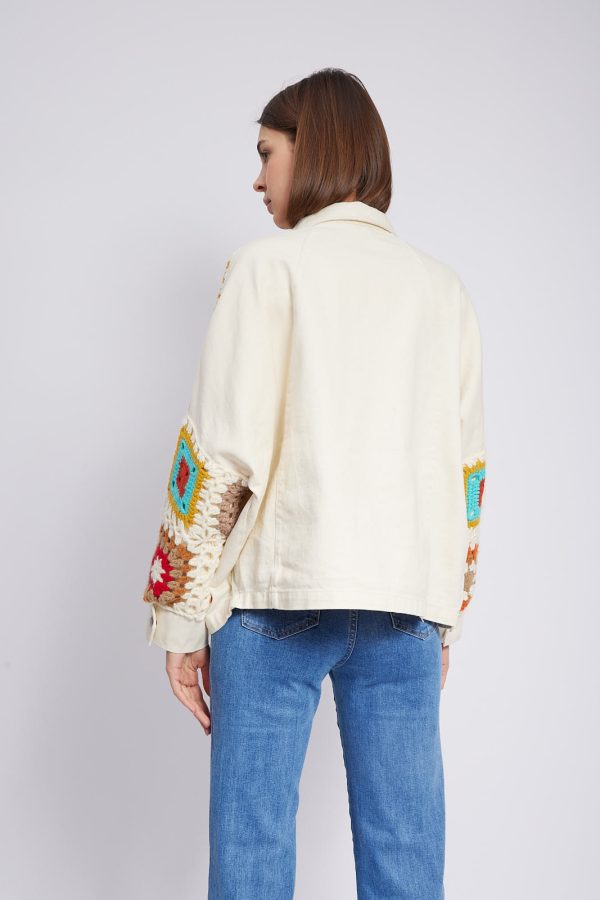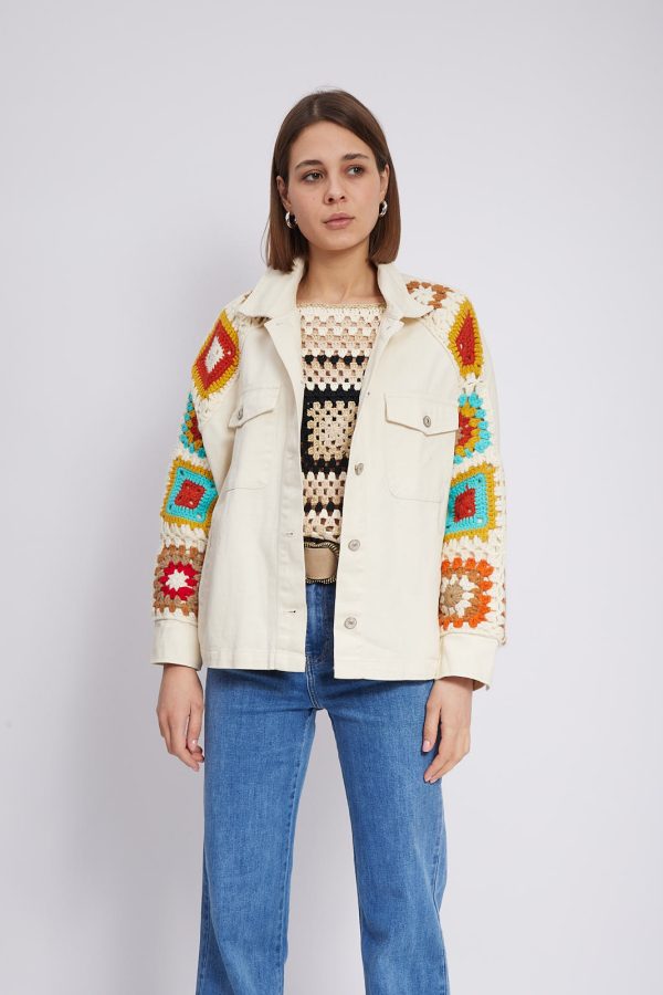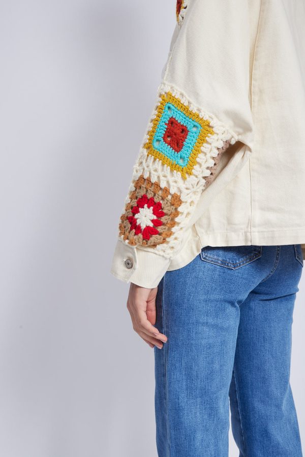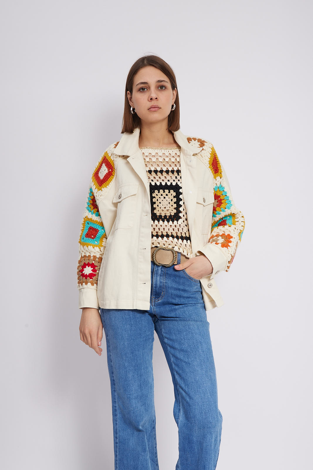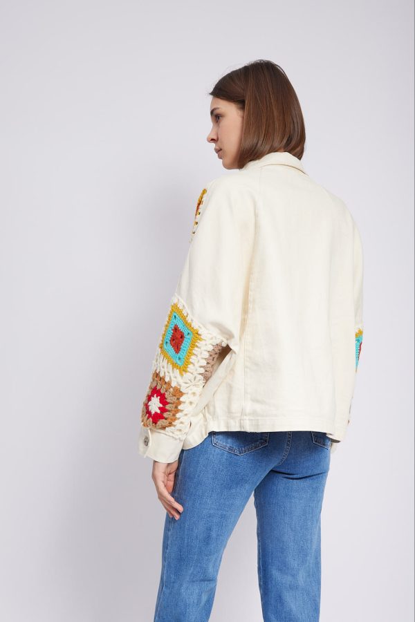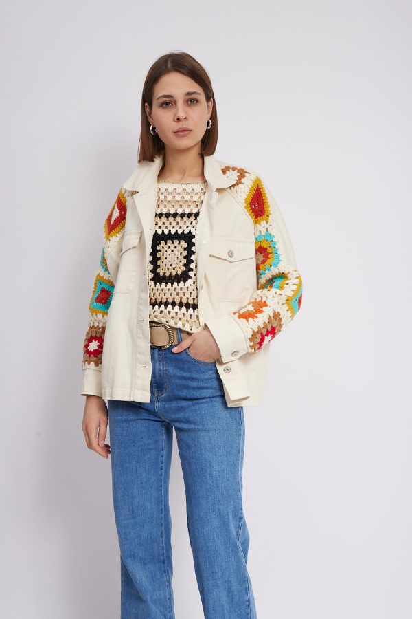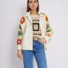 Dany  jacket is cool outwear style that we just can’t get enough of . Dany  jacket is crochet-knit from cotton with bright florals along the sleeves . You can wear a few layers underneath, thanks to its boxy cut. You’ll reach for it often during the transitional months.