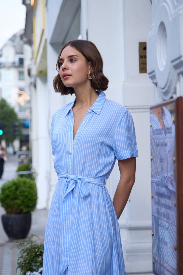 This ‘Demi ‘ shirt dress is made from soft viscose linen blend and has buttons through the front, which can be adjusted to alter the neckline and split hem. Using high-quality fabrics and timeless colour palettes, our shirt dress Demi designs the perfect everyday staples for your wardrobe. It feel softer than other more tailored shirt styles and therefore a piece you could style for evening just as much as the office. It’s a timeless piece you’ll have in your closet for seasons to come. It’s cut from viscose that drapes effortlessly. It has a self-tie belt to cinch in the slightly loose shape and falls to a floaty hem. Leave the first few buttons undone for a more relaxed take. Wear yours with strappy sandals or sneakers.