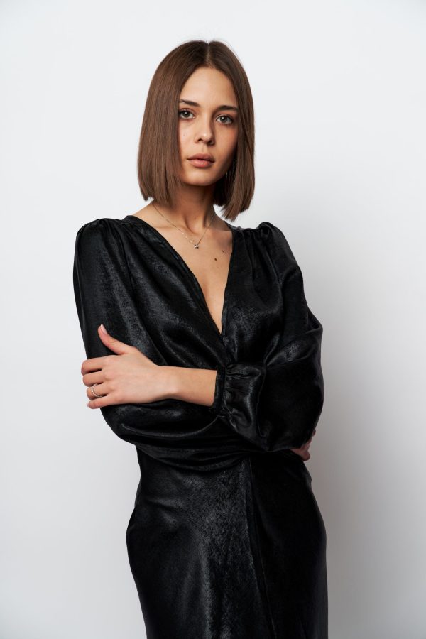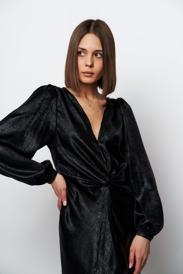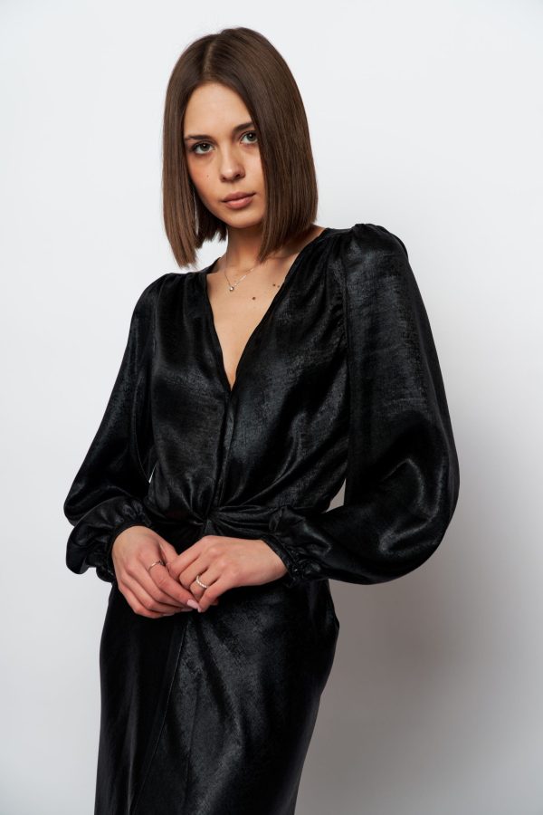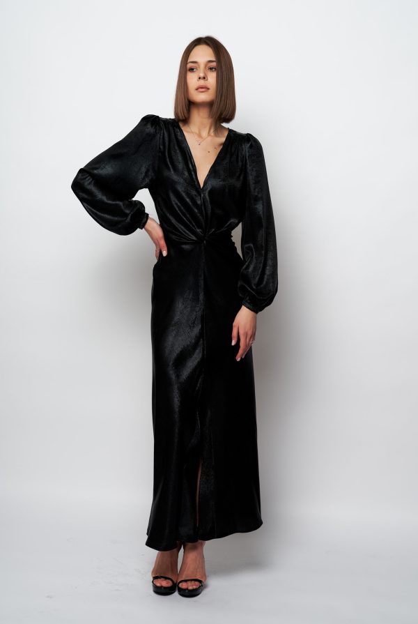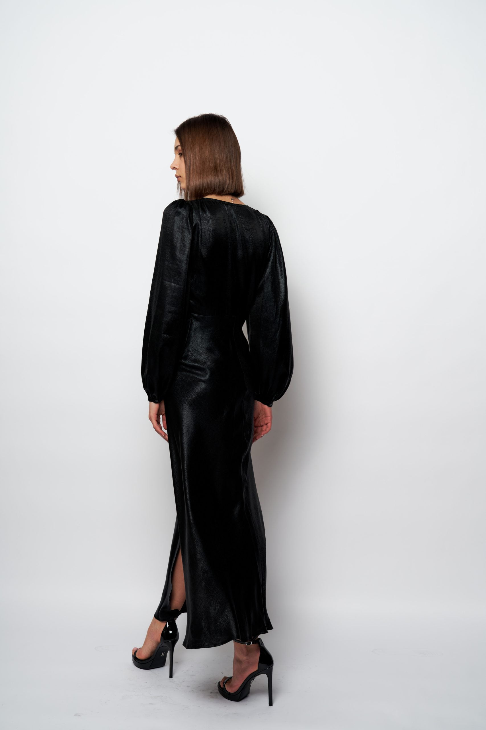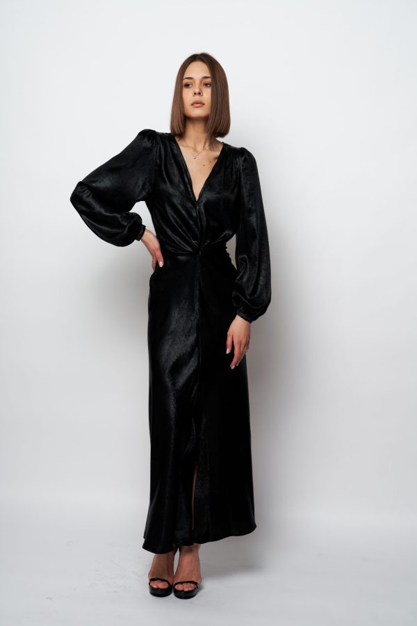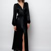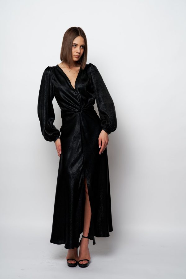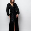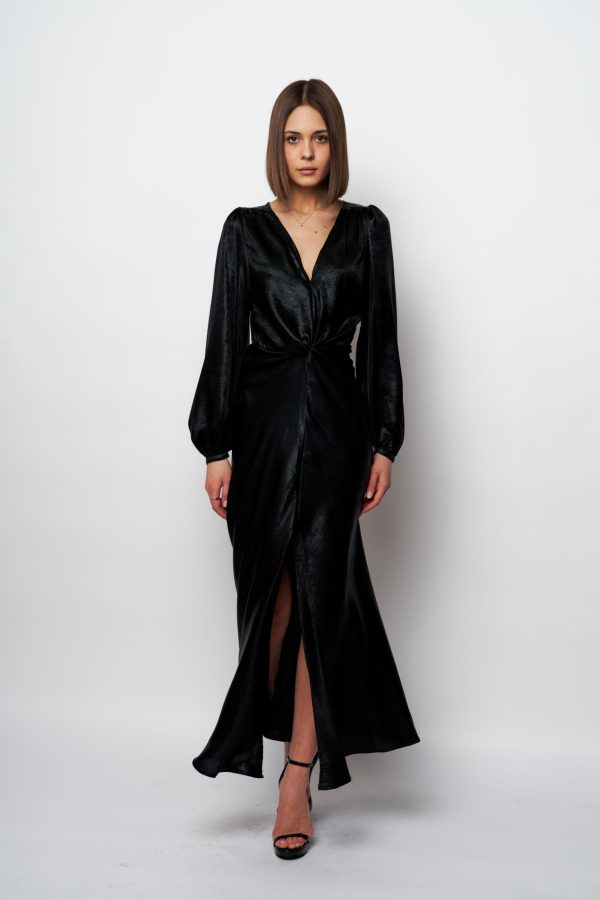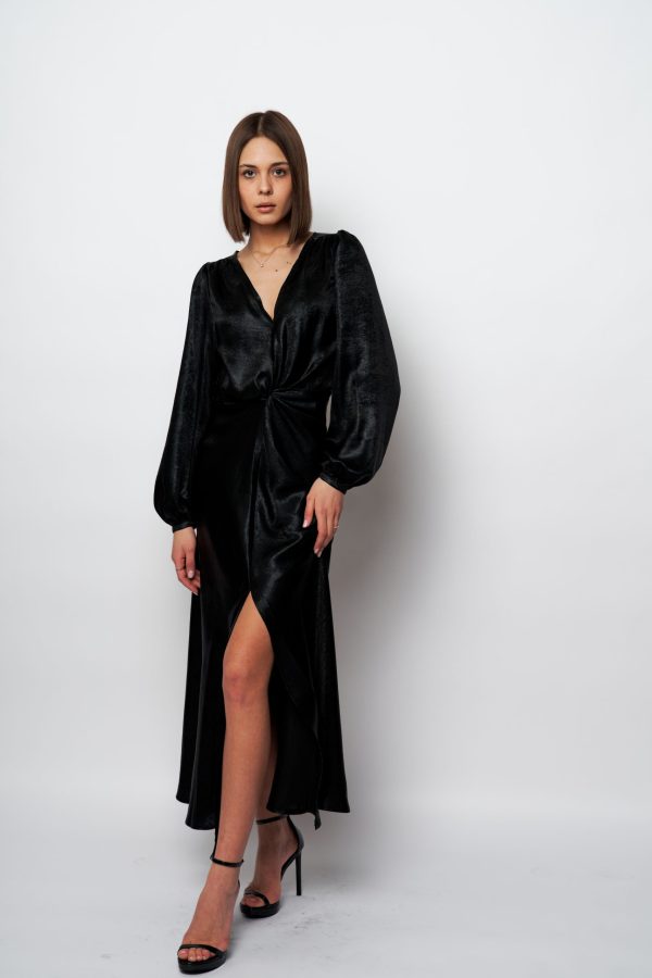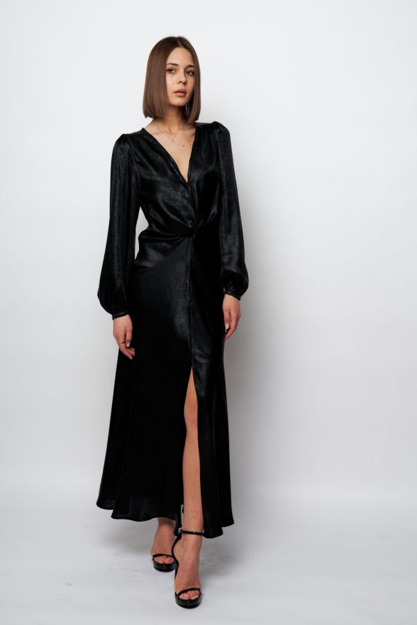 This dress is made from lustrous  satin and has elongated slit  along the front that create beautiful movement fluidly over your frame. Elegant twists and through the bodice make Desiree dress so striking. It’s cut from slinky stretch-satin jersey that skims your figure before falling to a maxi length. Wear it to parties with delicate jewelry and dancing shoes.